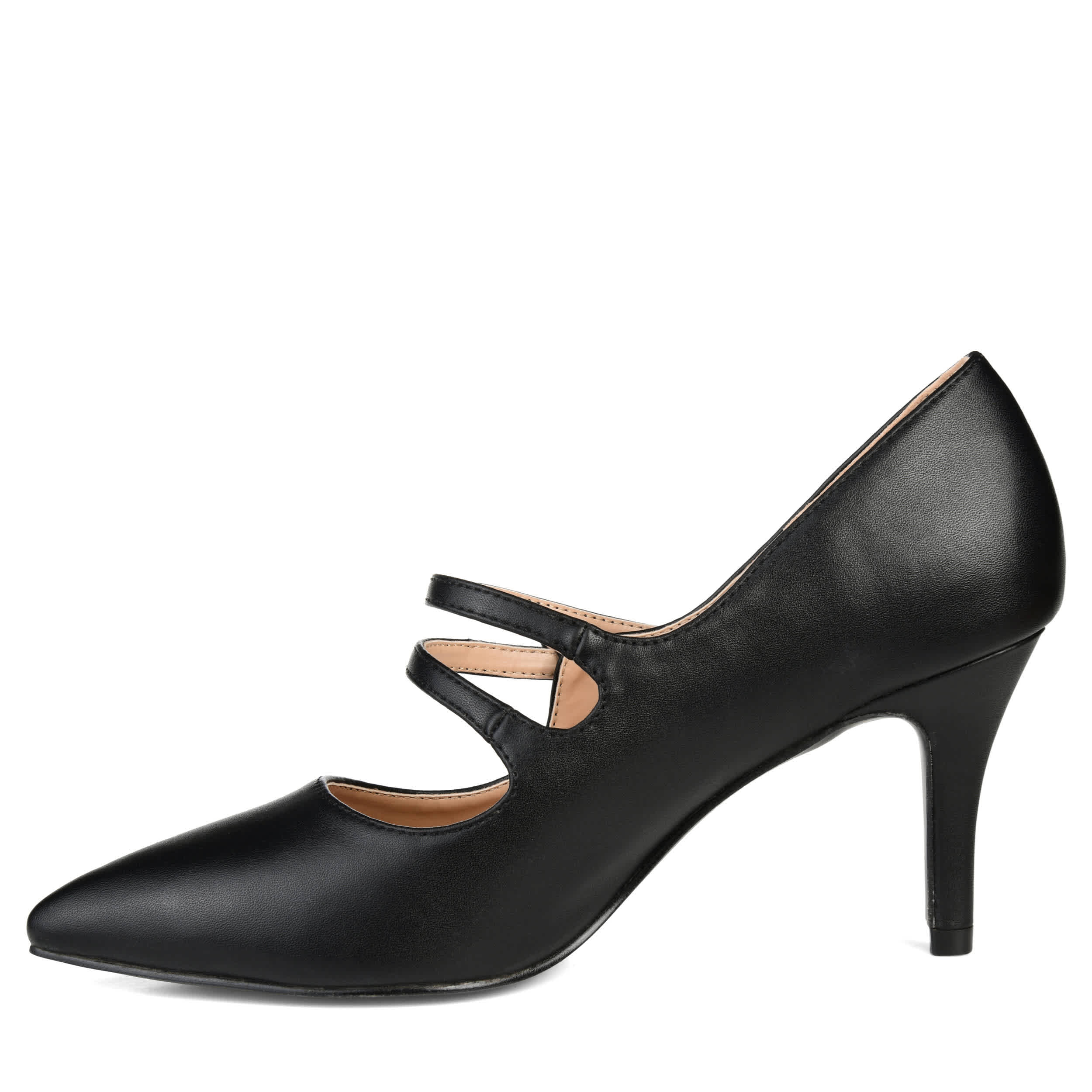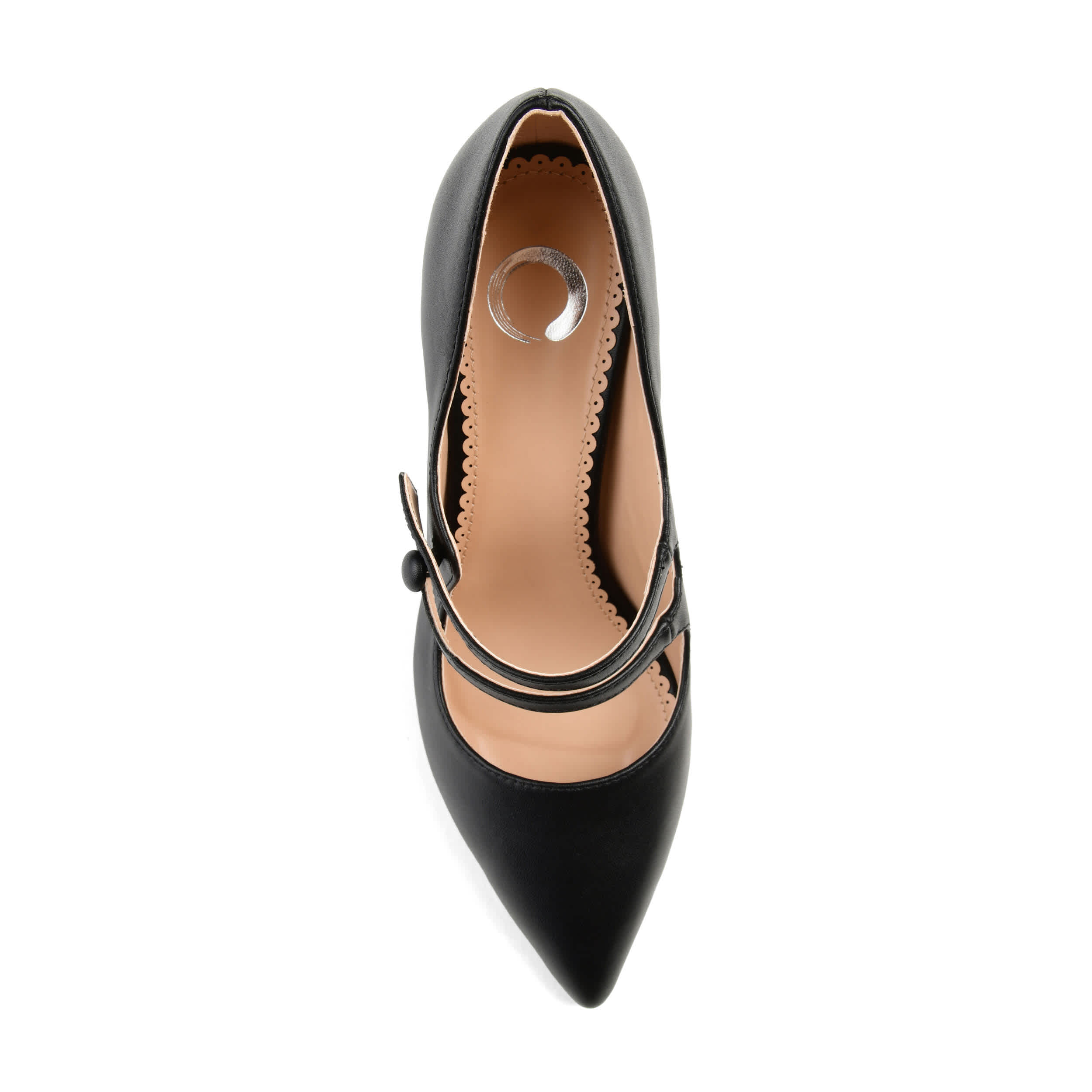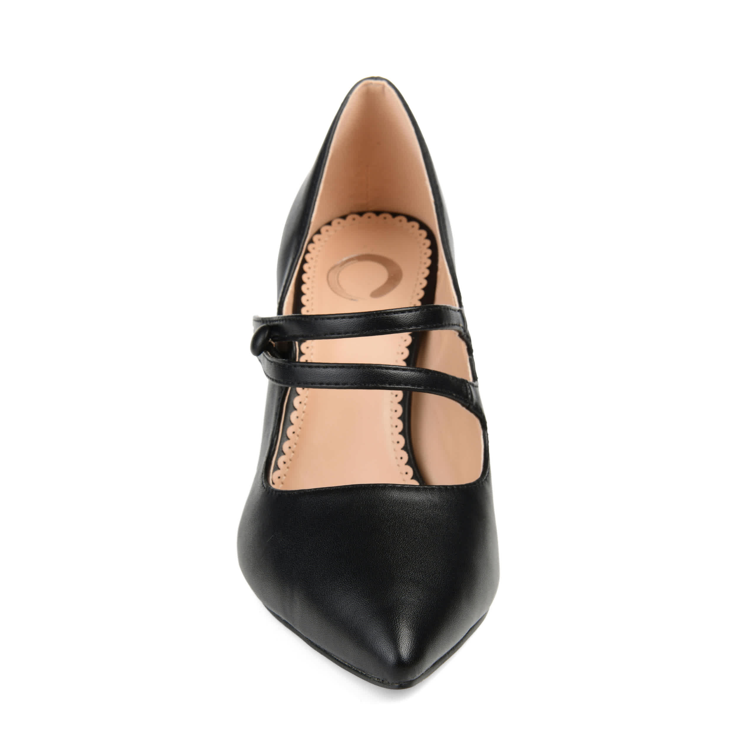 Vintage flair combine with contemporary styling in the Sidney women's pump from the Journee Collection. With a vegan leather upper and elegant pointed toe, this button strap Mary Jane is an update you'll want to add to your wardrobe. The padded footbed cushions every step as you head out on that 3½" pump heel.
