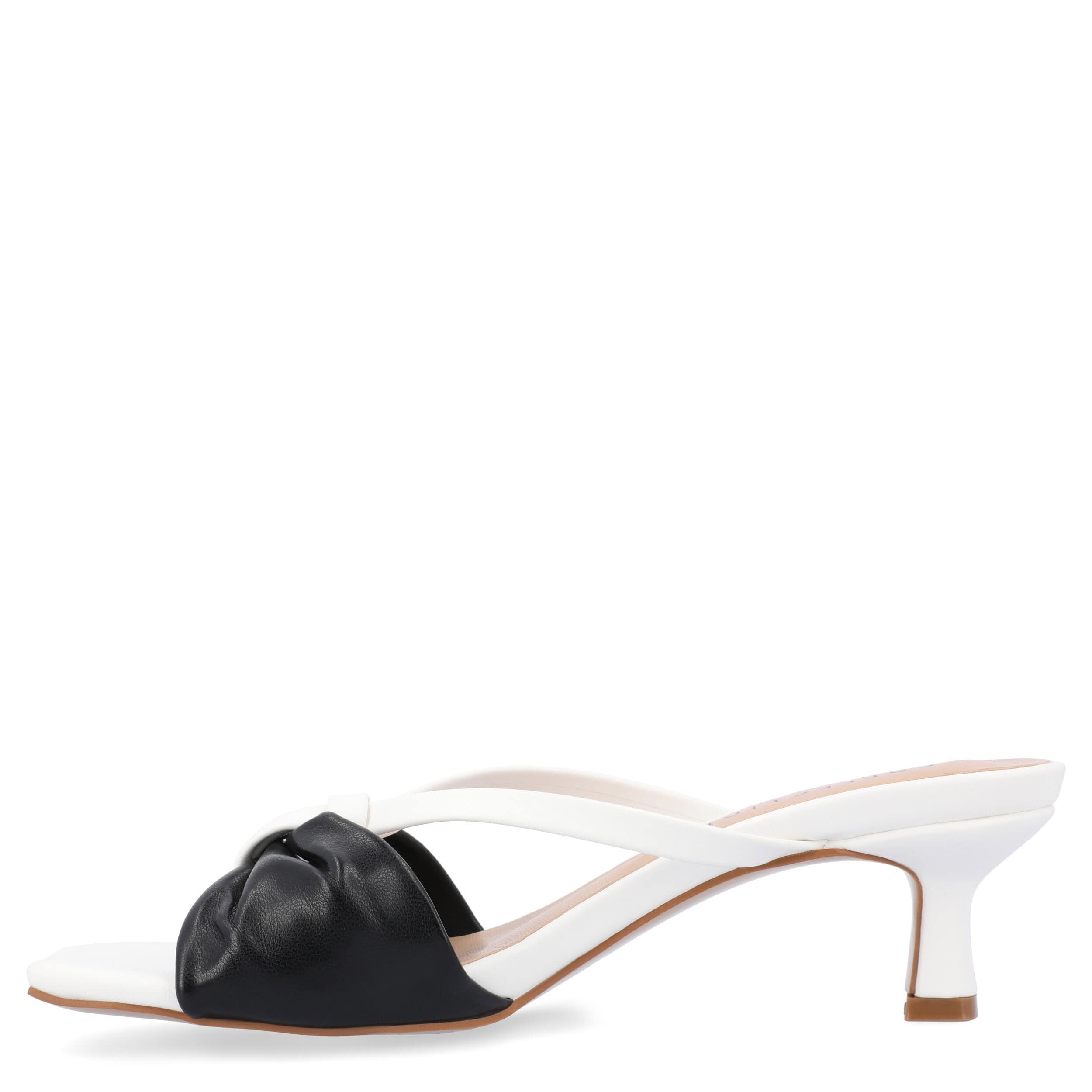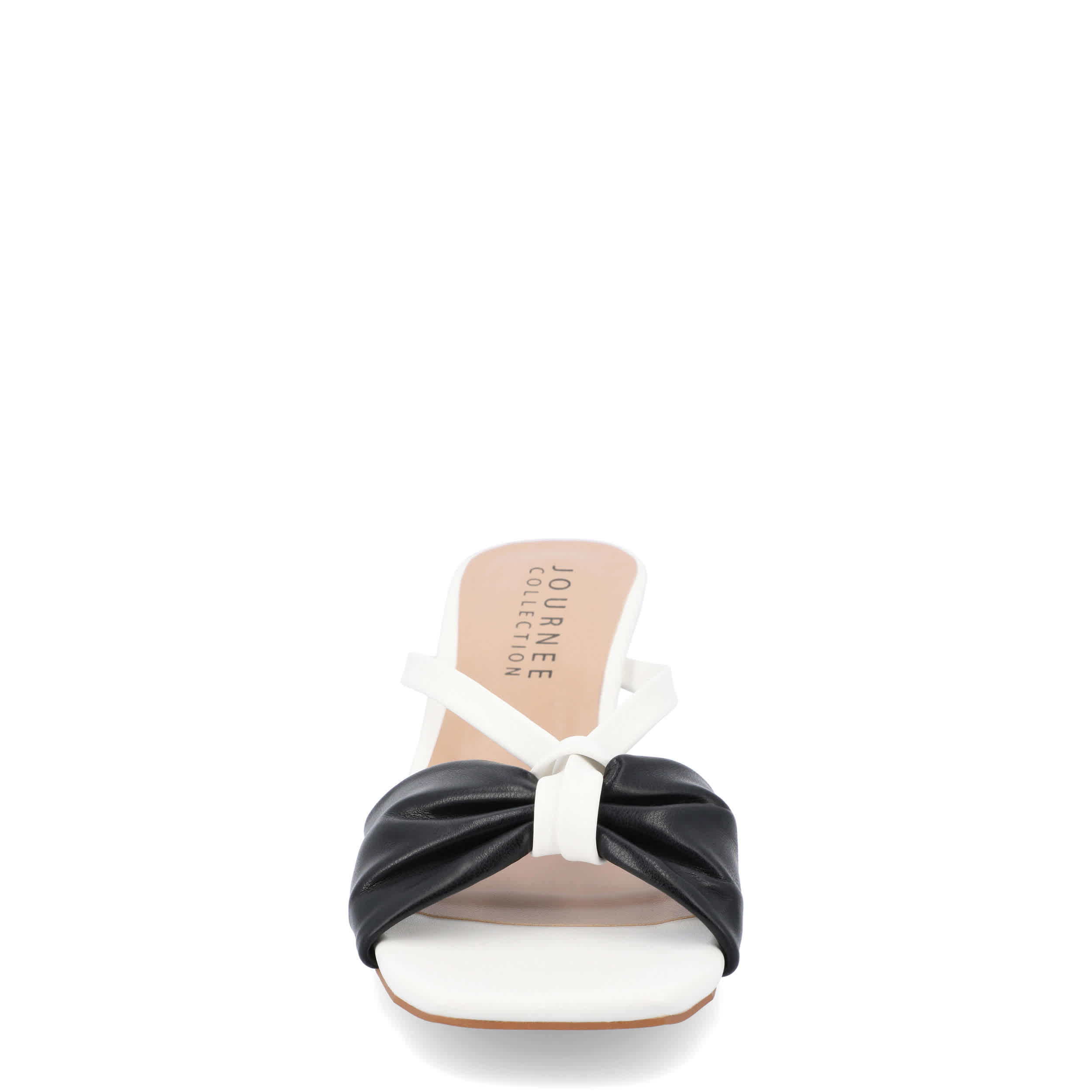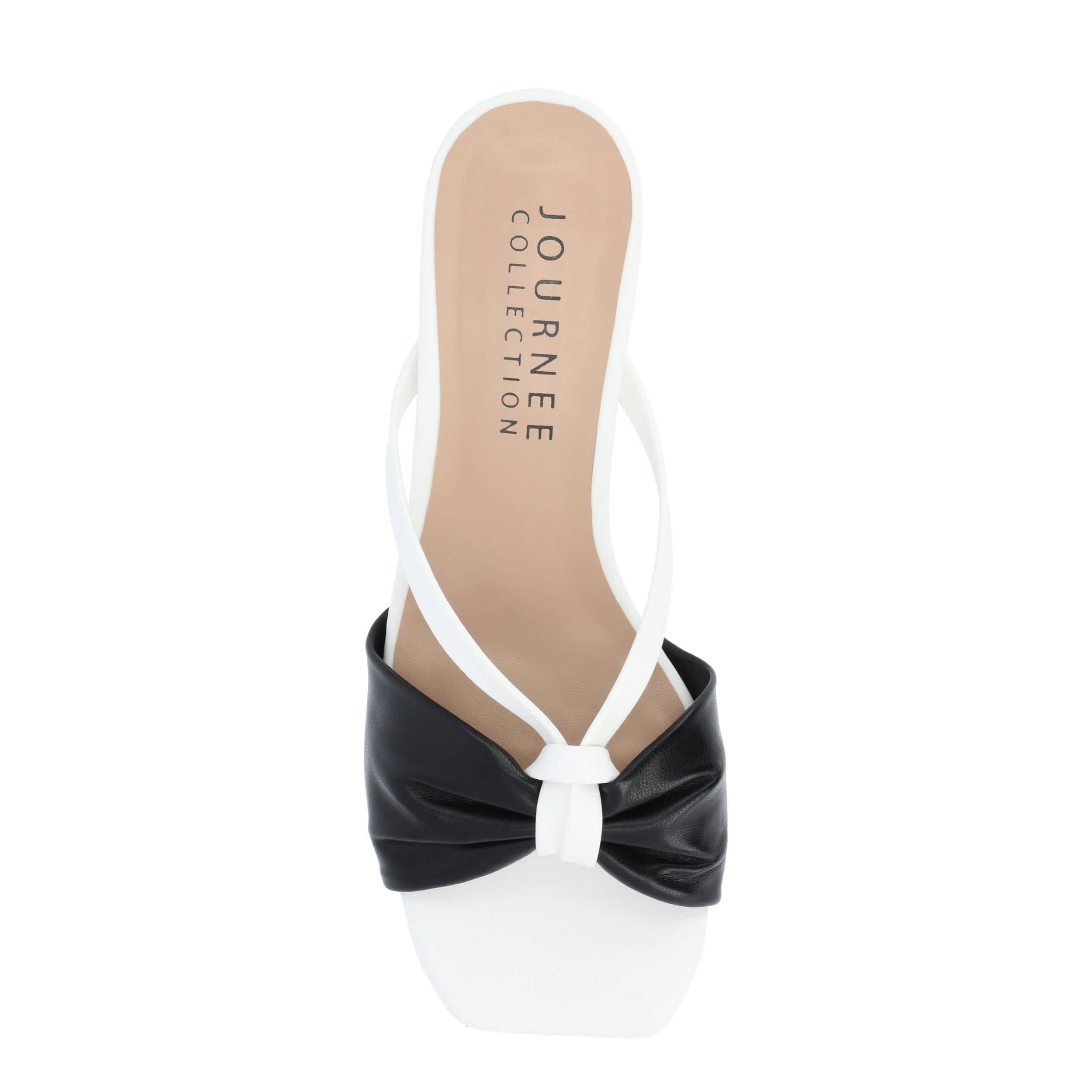 Channel your femininity in the Starling women's sandal from Journee Collection. With a faux leather upper featuring a two-tone design and beautiful bow detail, this darling sandal perfectly complements all your favorite desk-to-dinner ensembles. The padded footbed comforts your foot, while the 2" heel adds a dainty lift.