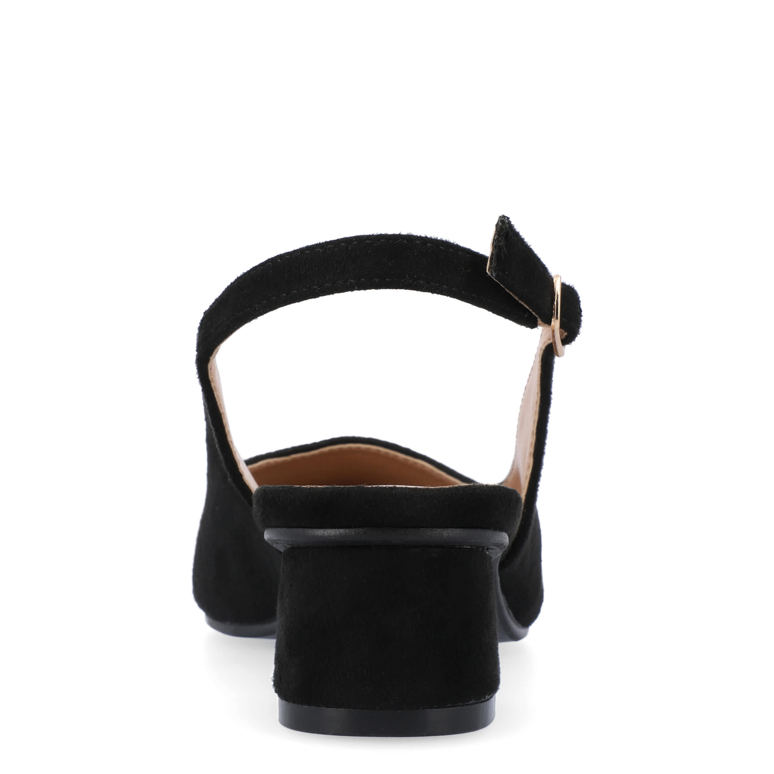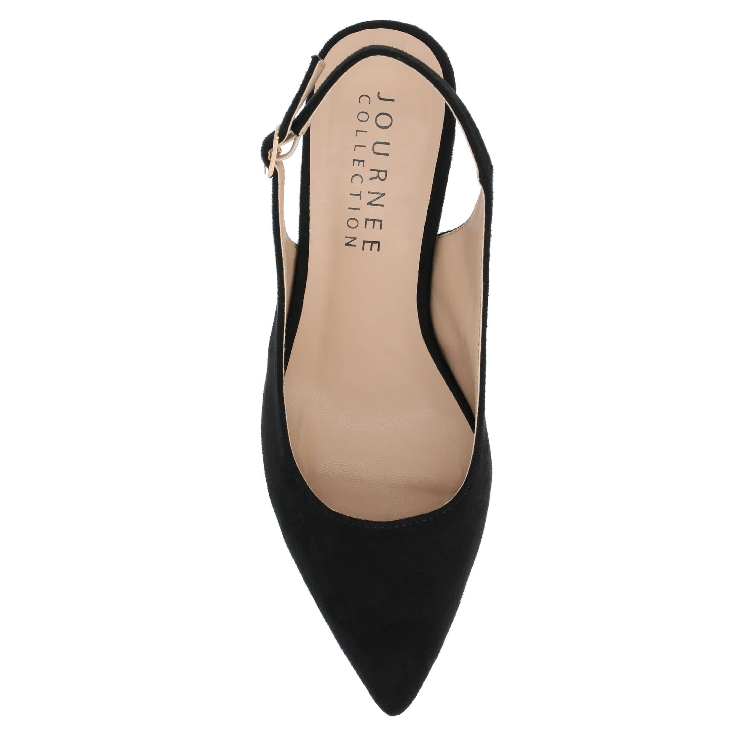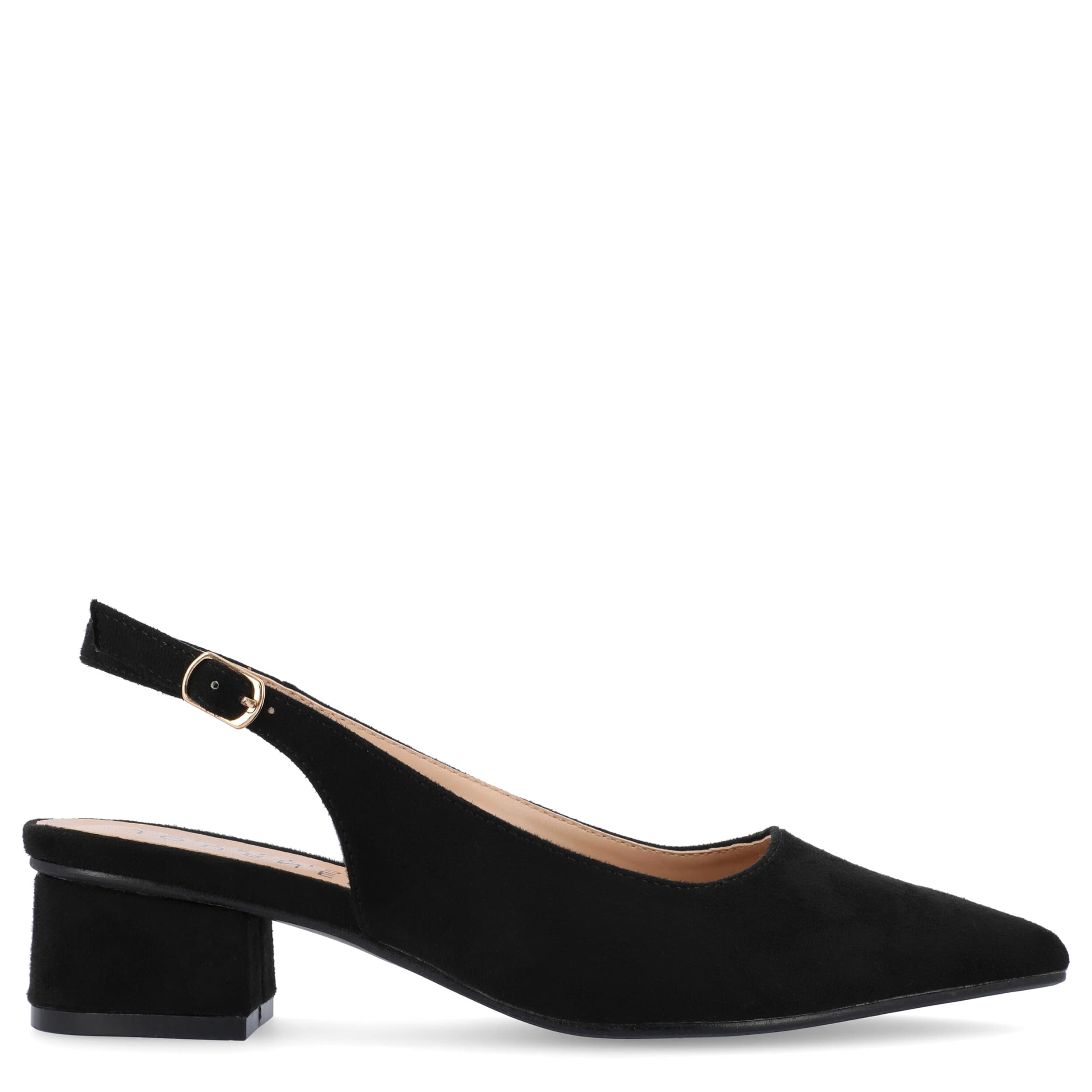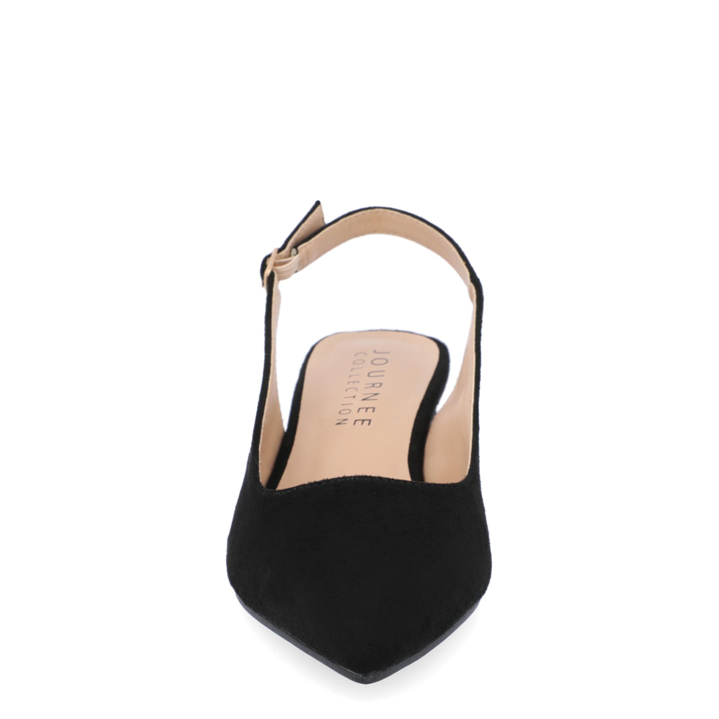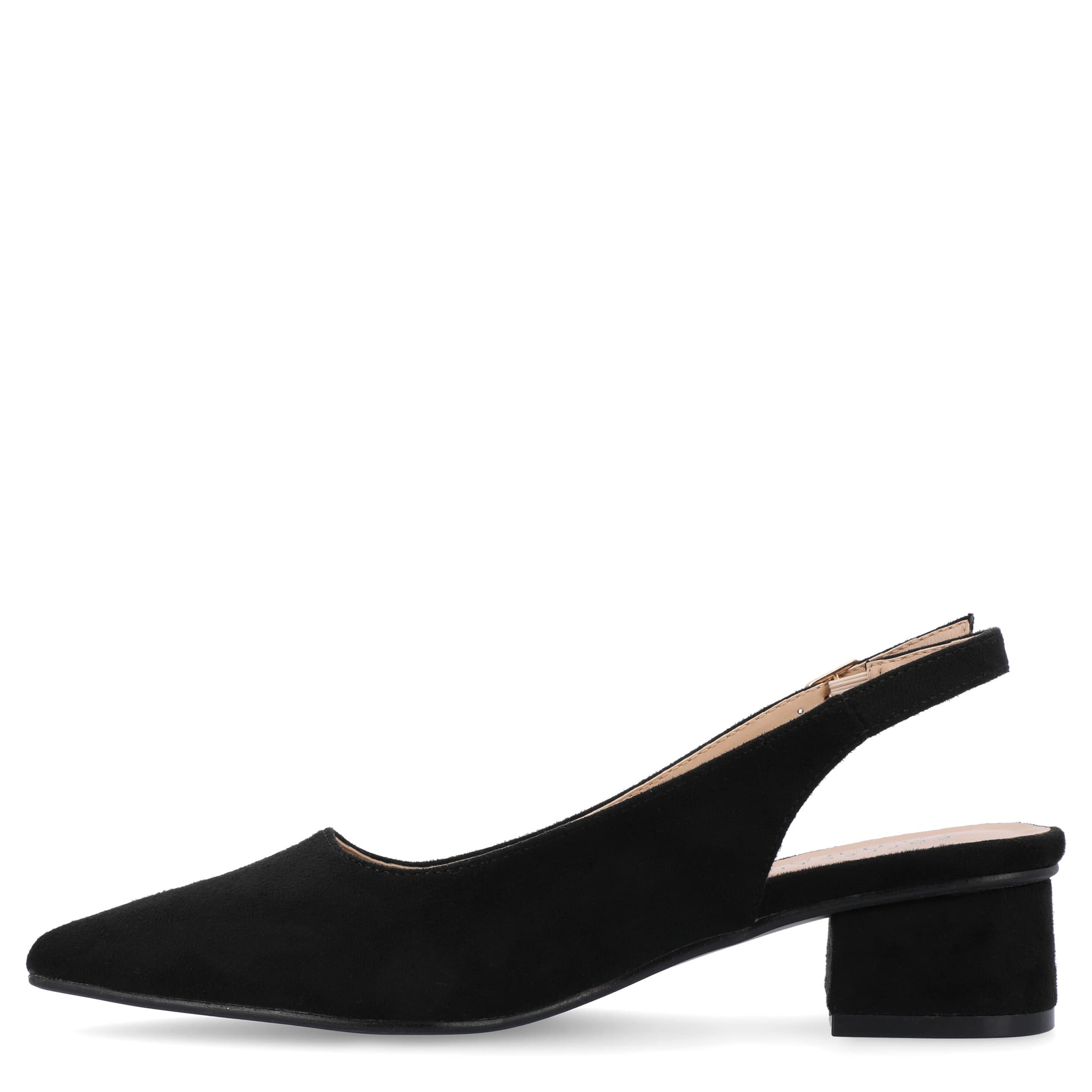 Make room for comfort in the stylish Sylvia pump from Journee Collection. Featuring a faux suede upper and pointed toe for classic style, this vegan slingback is trendy, but simple in design. The insole soothes your foot, while the modern heel offers a stable lift.