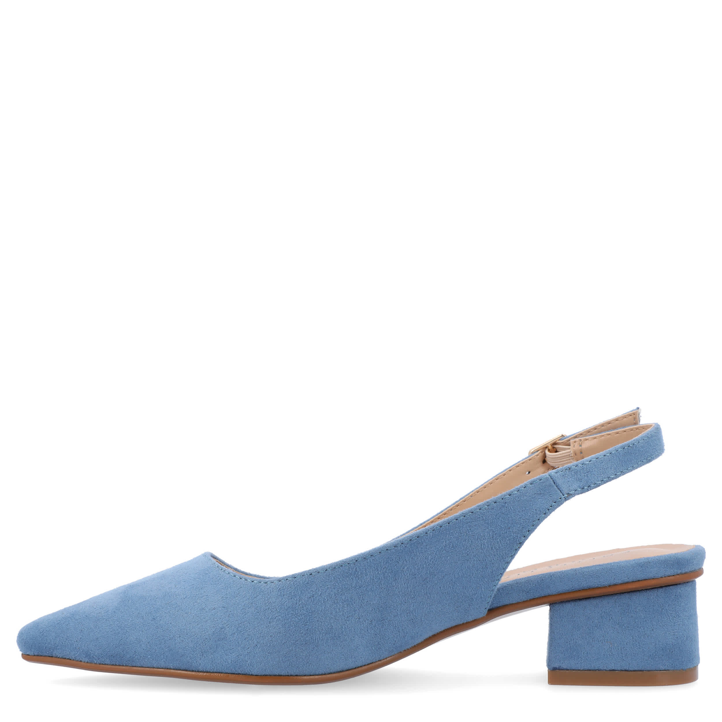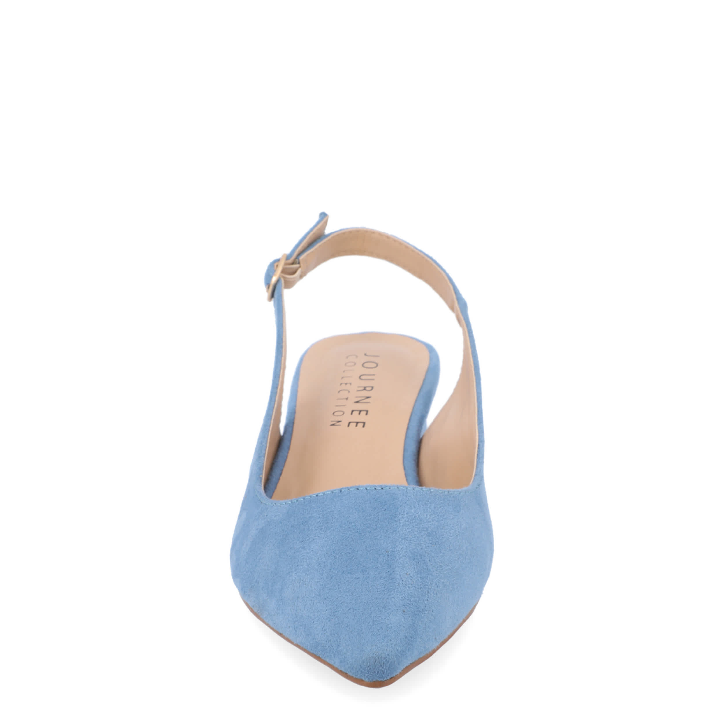 Make room for comfort in the stylish Sylvia pump from Journee Collection. Featuring a faux suede upper and pointed toe for classic style, this vegan slingback is trendy, but simple in design. The insole soothes your foot, while the modern heel offers a stable lift.
