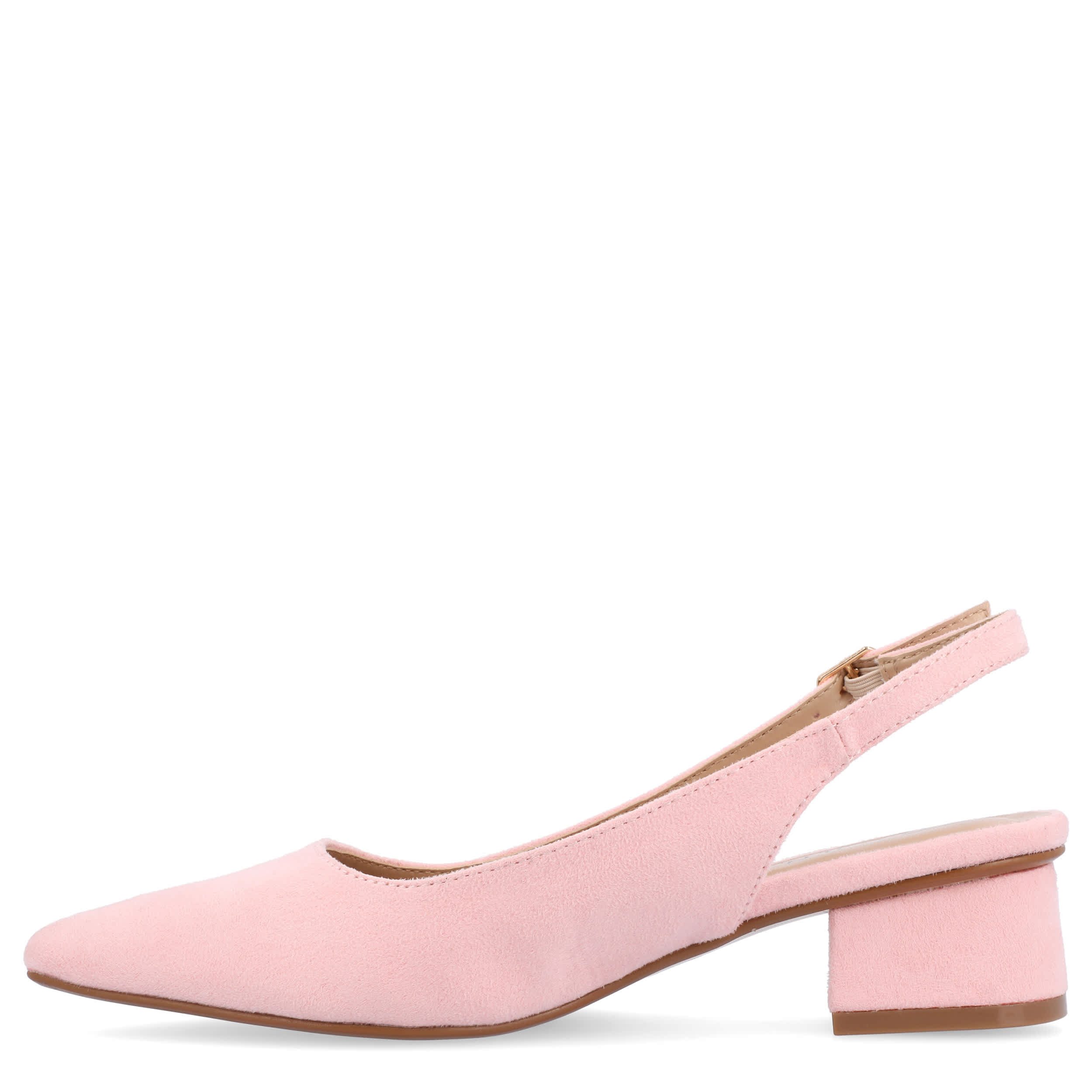 Make room for comfort in the stylish Sylvia pump from Journee Collection. Featuring a faux suede upper and pointed toe for classic style, this vegan slingback is trendy, but simple in design. The insole soothes your foot, while the modern heel offers a stable lift.