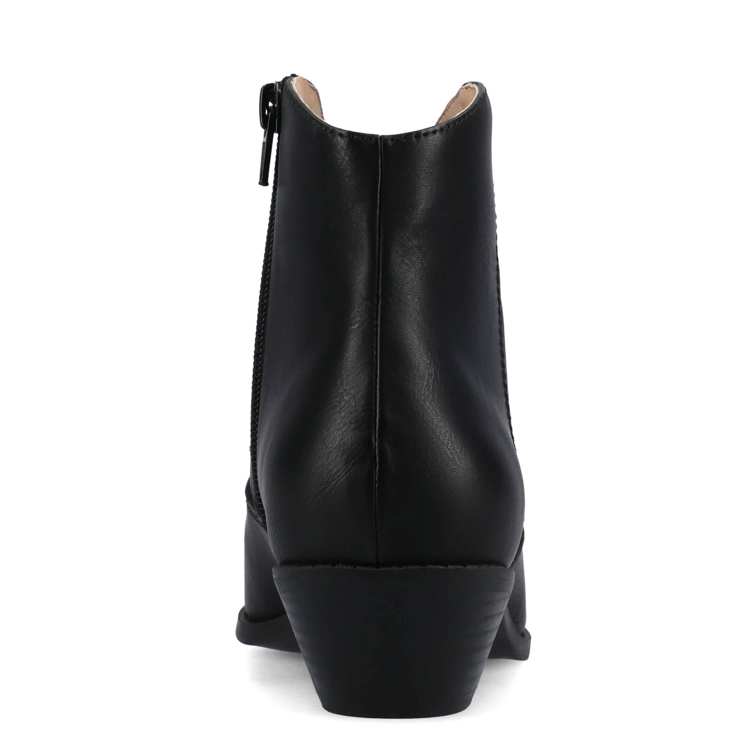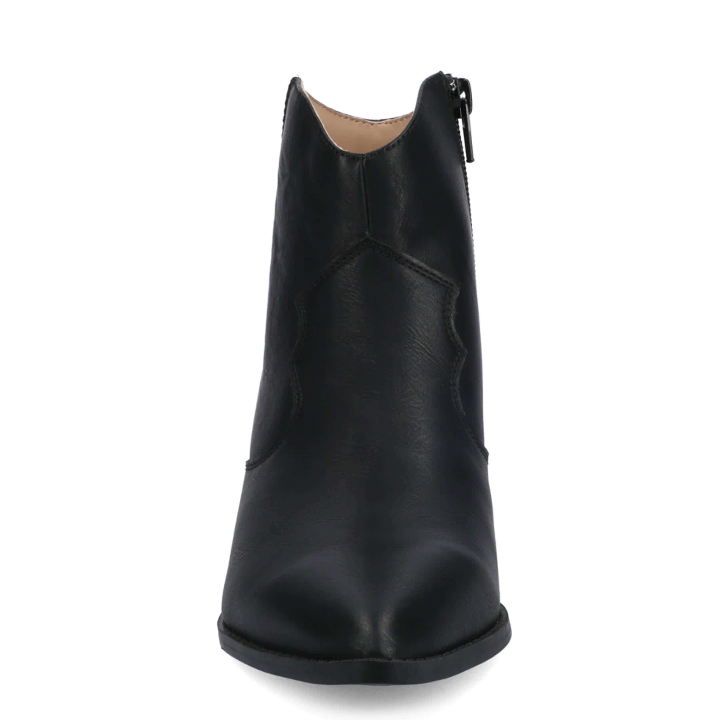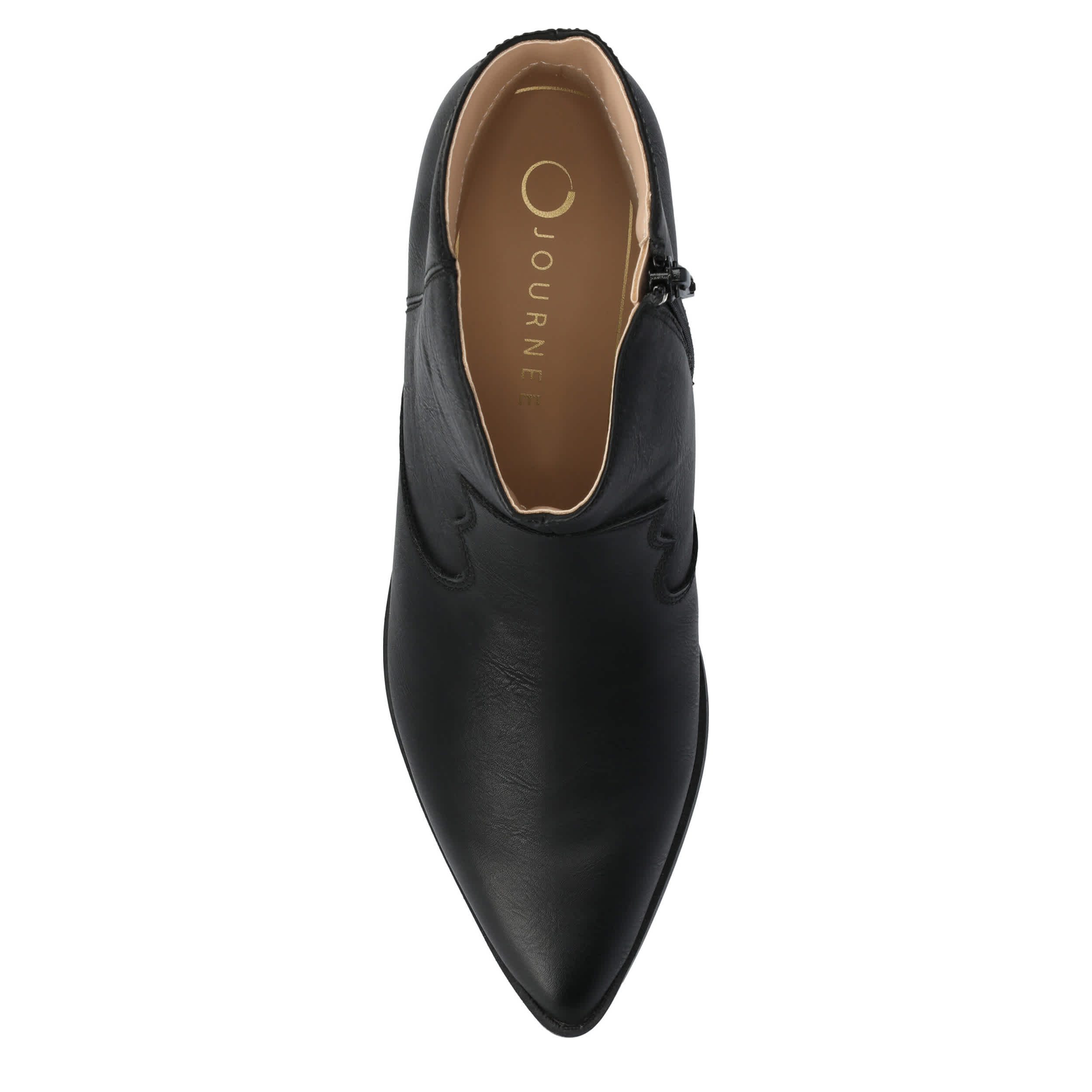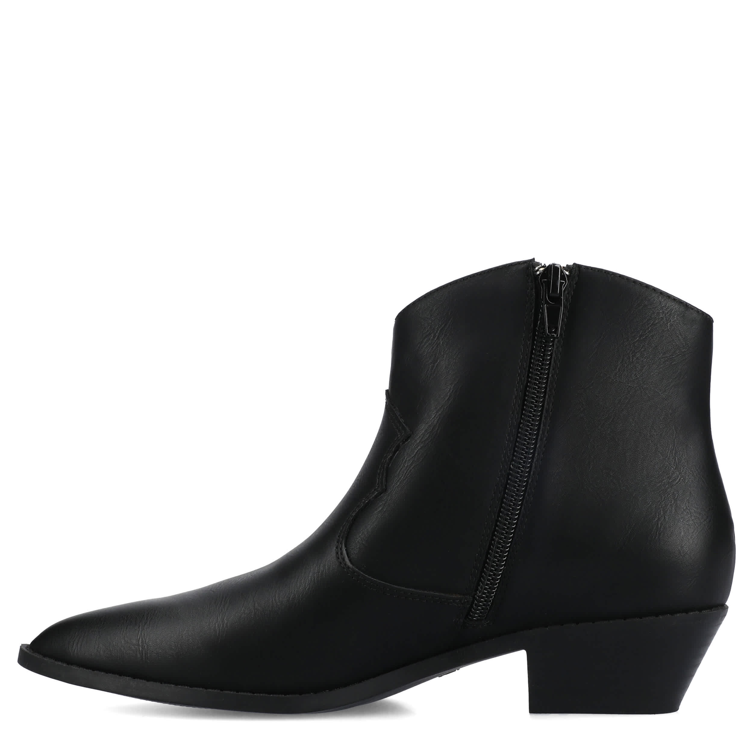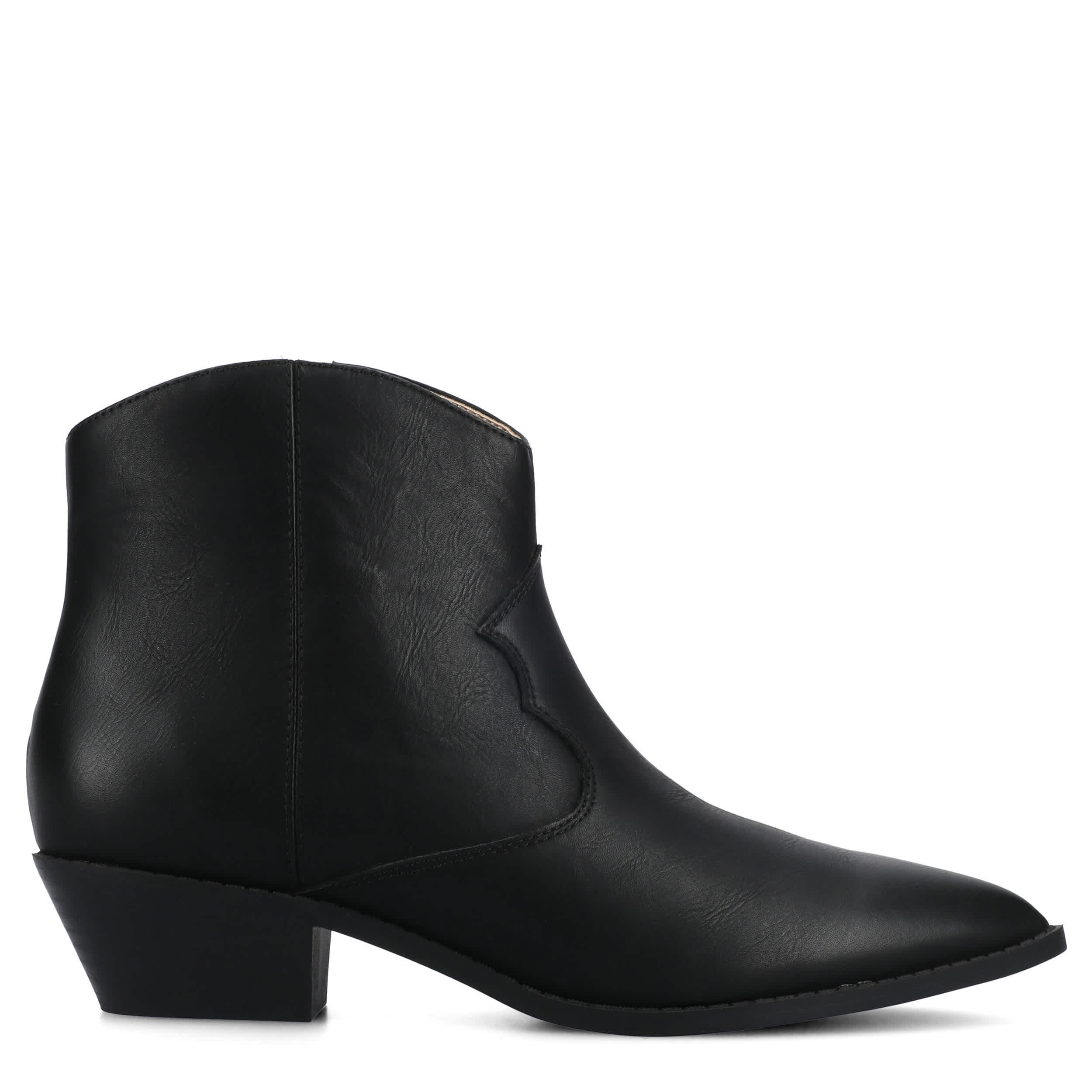 Wrangle up some good fun in the Taliah women's Western boot from Journee Collection. Featuring a vegan leather upper with unique stitching accents, this ankle boot is chic and pointed for extra flair. The Journee Comfort System insole cushions, while the Cuban heel provides just enough lift.