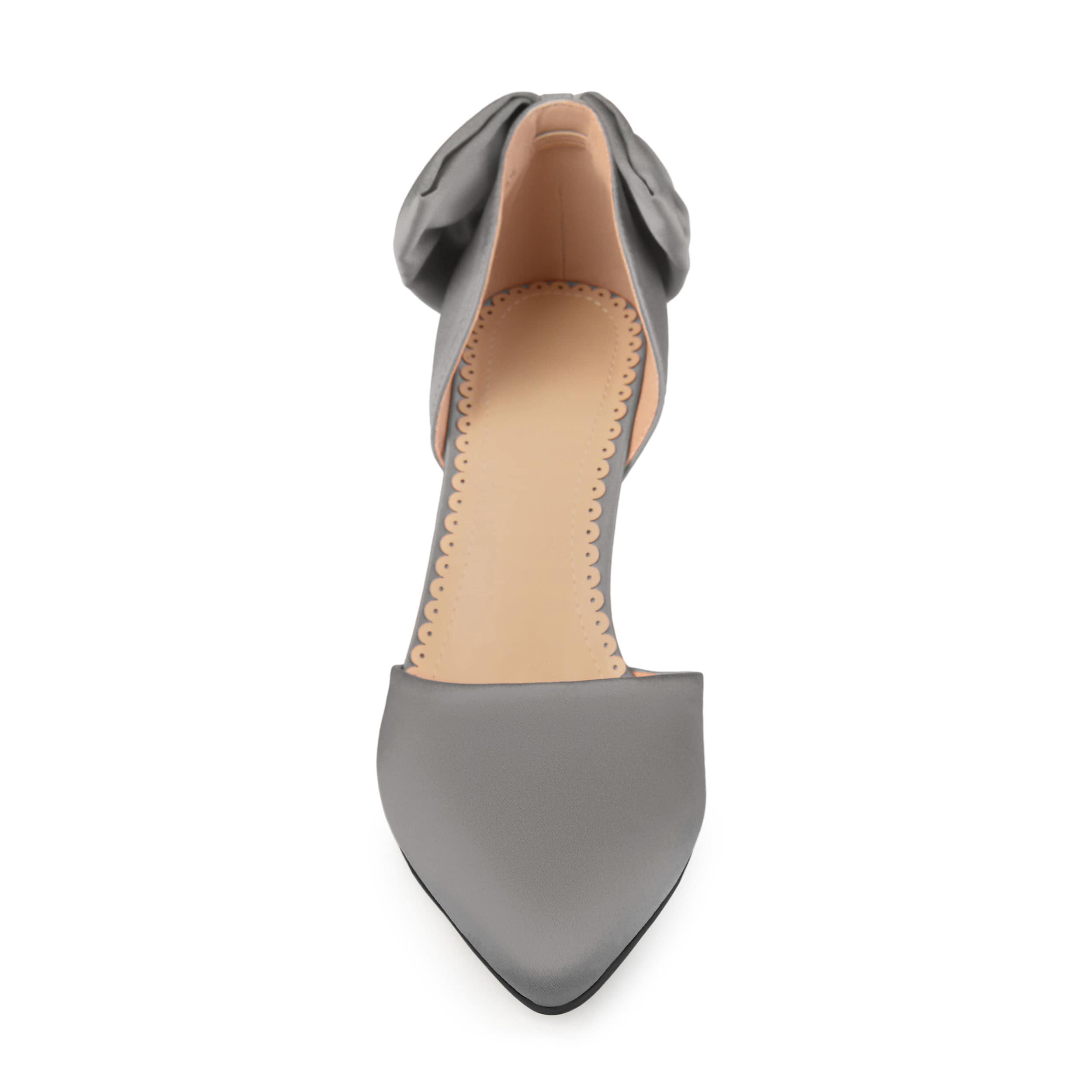 She'll look stylish and sophisticated wearing the Tanzi women's pump from Journee Collection. With a faux suede upper featuring a delightfully oversized bow accent at the cuff, this stunning pump is perfect for any dressy occasion. A padded footbed soothes your feet, keeping you comfortable for hours while standing, walking, or dancing on the 3" stiletto heel.