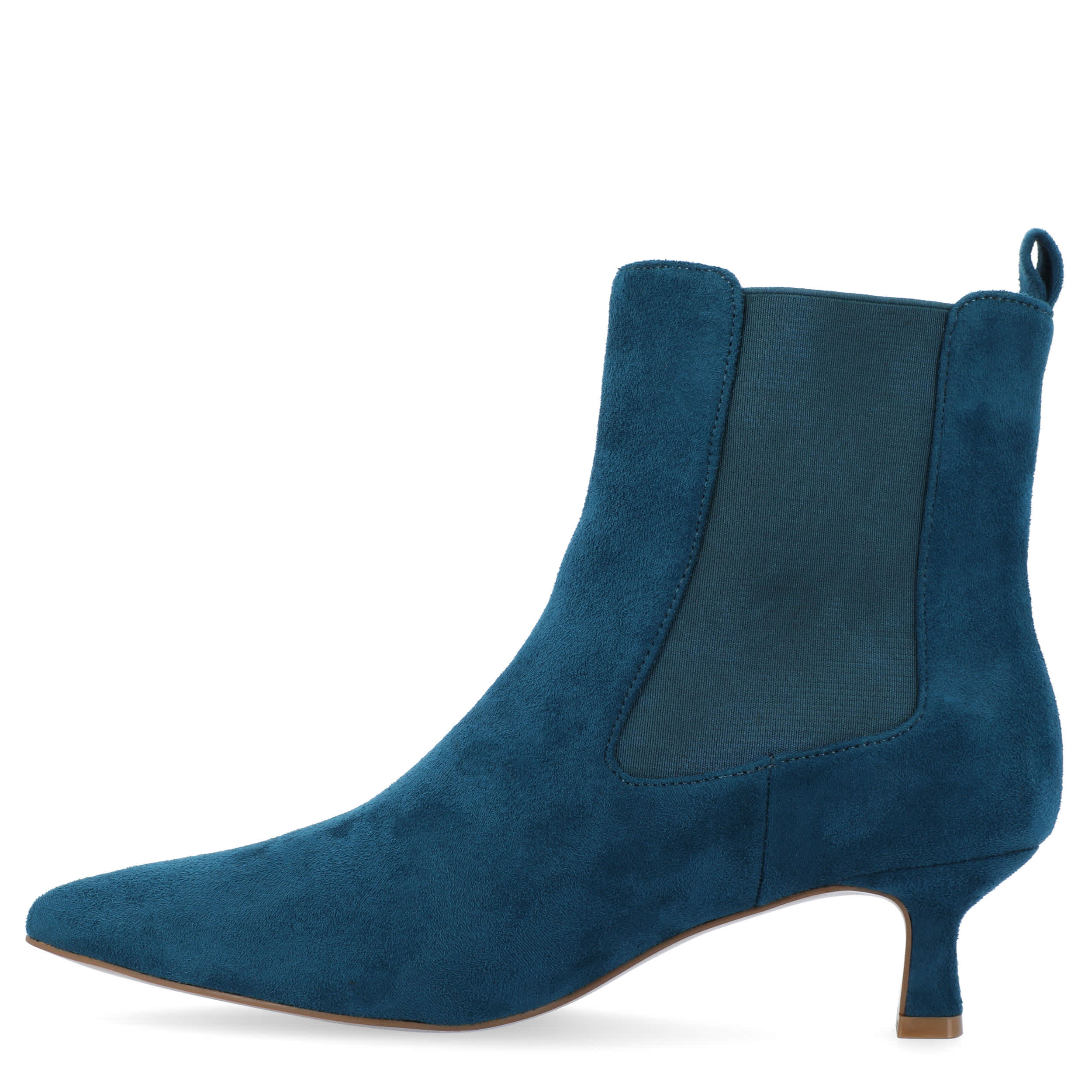 This season, the Tenlee women's pull-on dress boot from Journee Collection is a must-have. With a vegan leather upper featuring stretch gore details for an easy fit, this Chelsea-inspired pointy-toe boot perfectly accentuates your favorite ensembles. The Tru Comfort Foamâ„¢ footbed cushions and supports your feet, while the dainty kitten heel provides a slight lift.