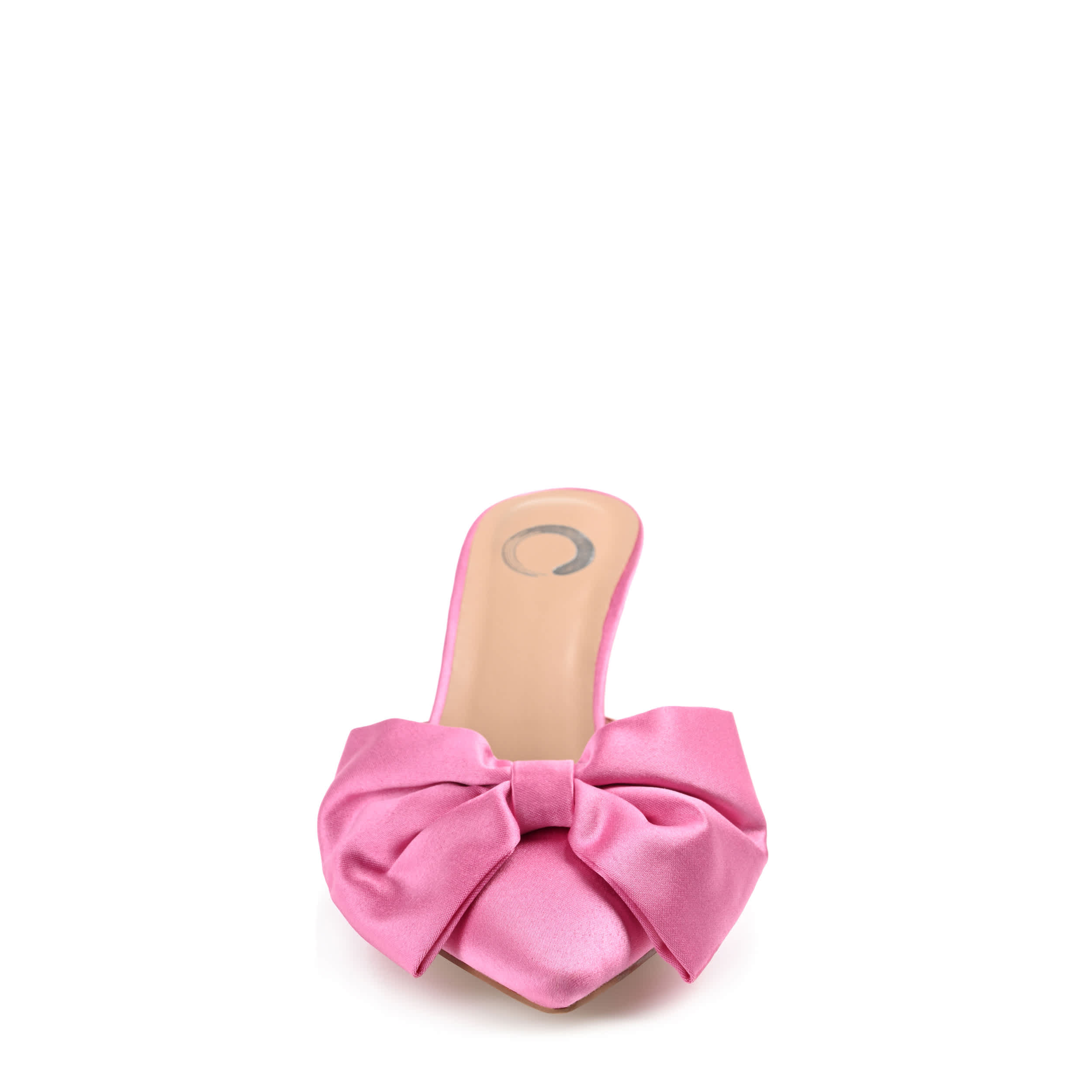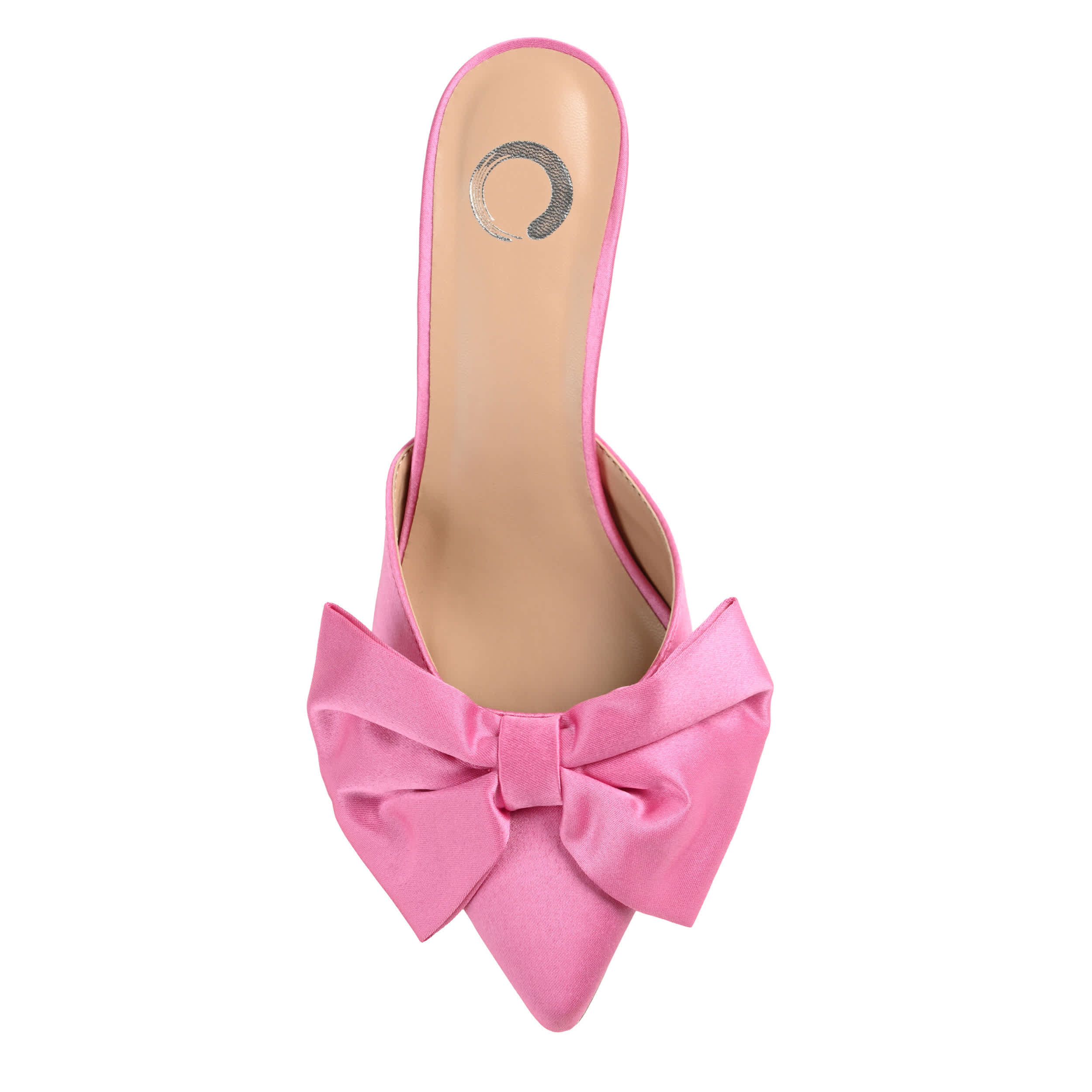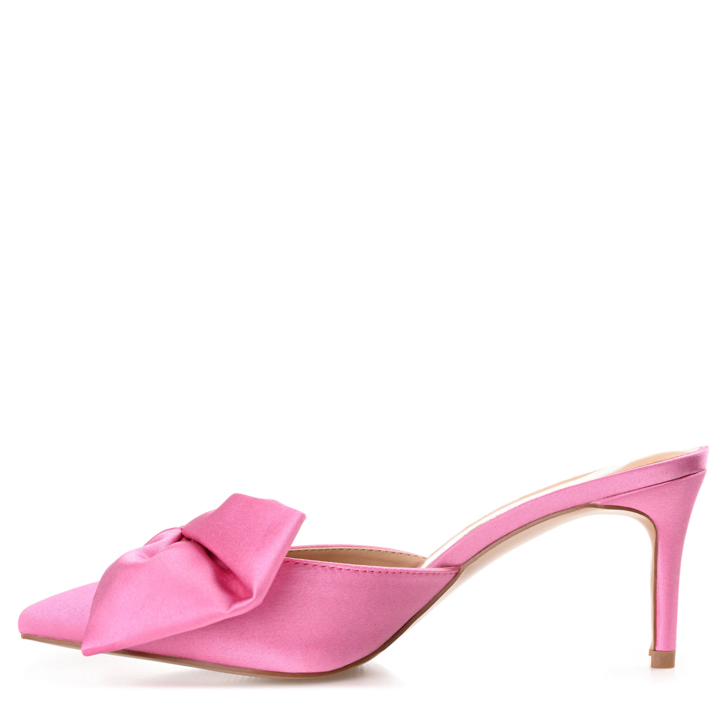 Create a fabulous look with the Tiarra women's pump from Journee Collection. With a soft fabric upper featuring an oversized bow accent on the vamp for a touch of feminine flair, this elegant pump, with its sleek pointed toe, is the perfect accessory to complement your favorite evening wear. A padded footbed cushions your feet, while the 3" stiletto heel creates a flattering lift.