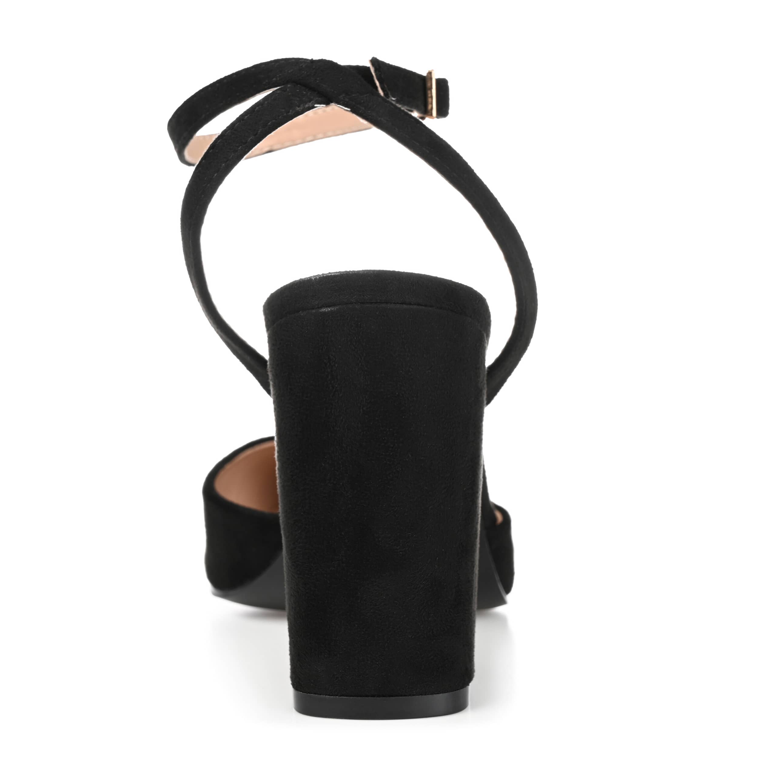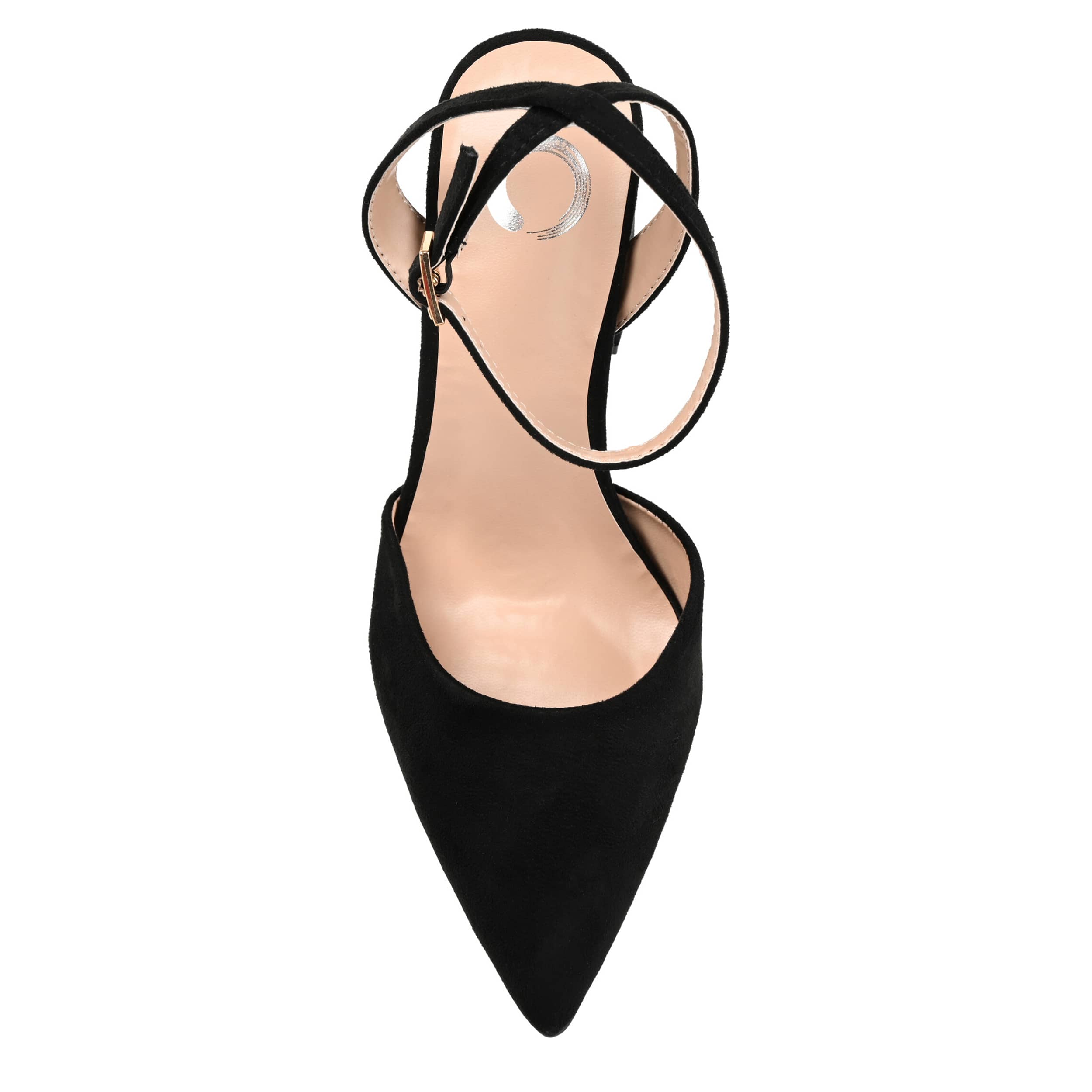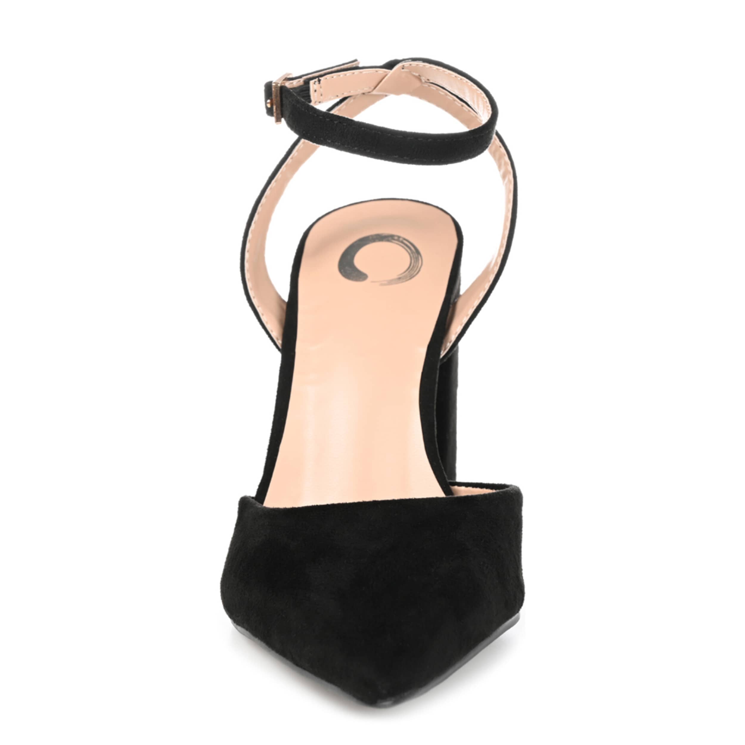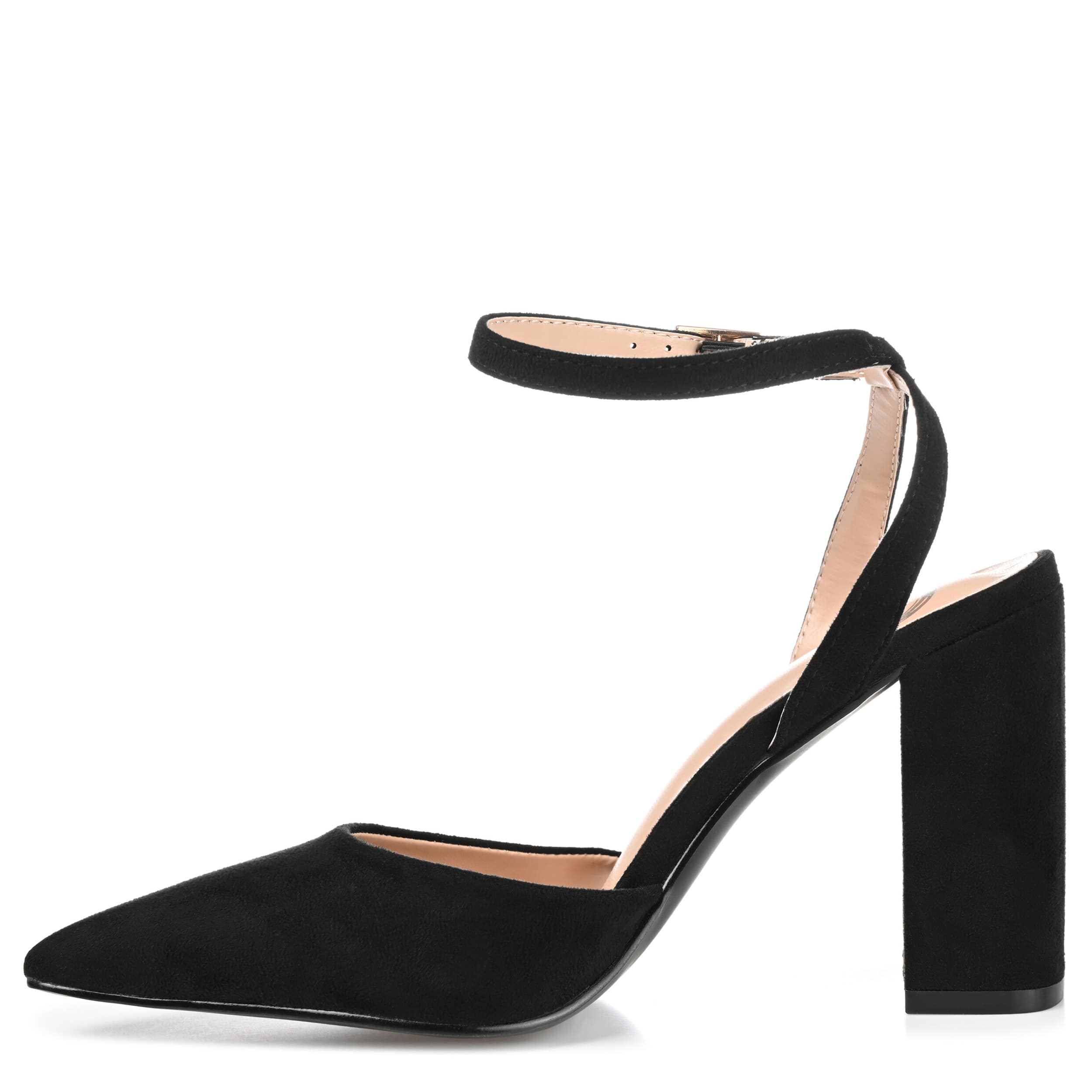You'll be chic and on trend in the Journee Collection Tyyra pump. Featuring a faux suede upper with an ankle buckle strap for a secure fit, this pointy-toe shoe brings extra feminine flair to your work or weekend outfits. The padded insole comforts your steps, while the block heel gives a high, elegant lift.