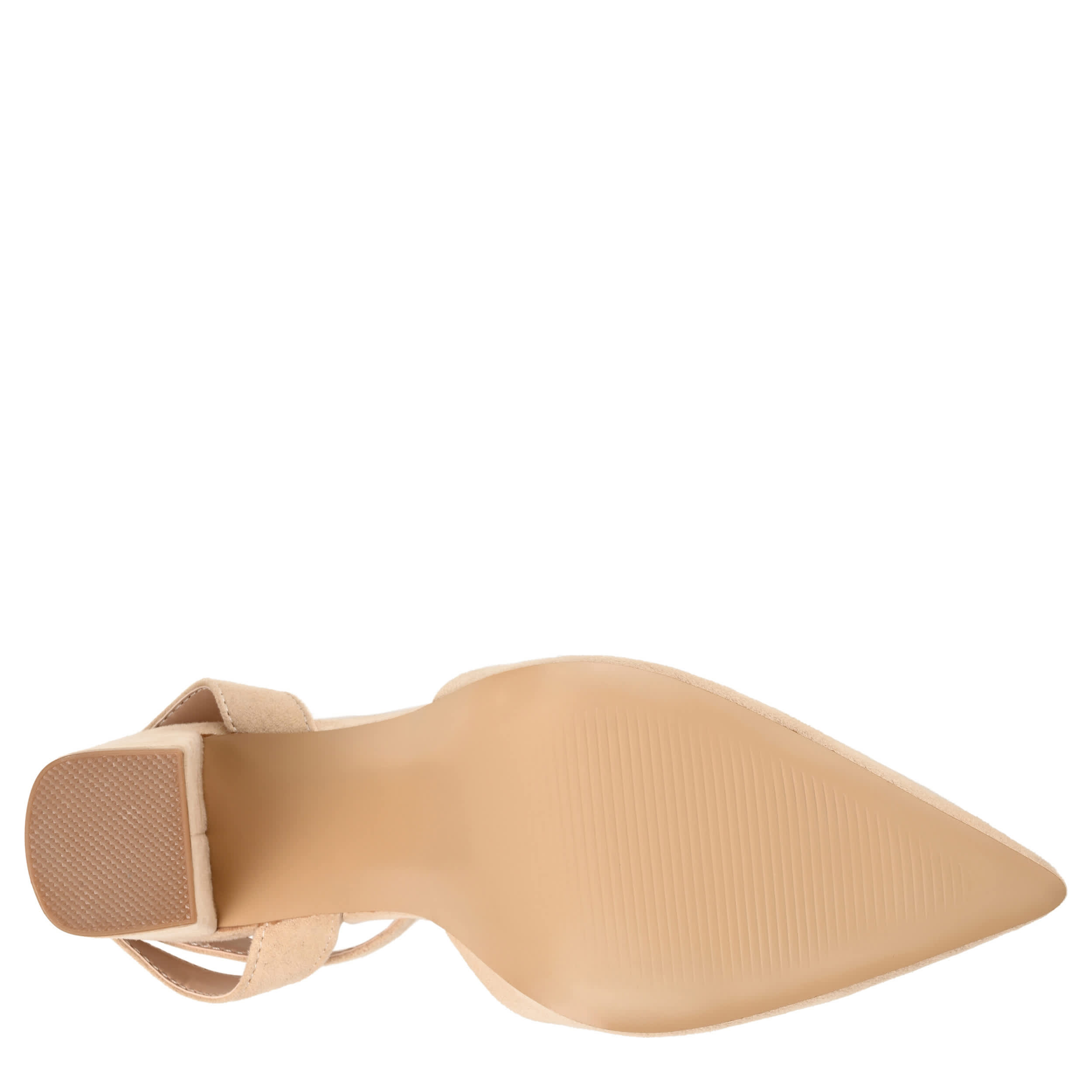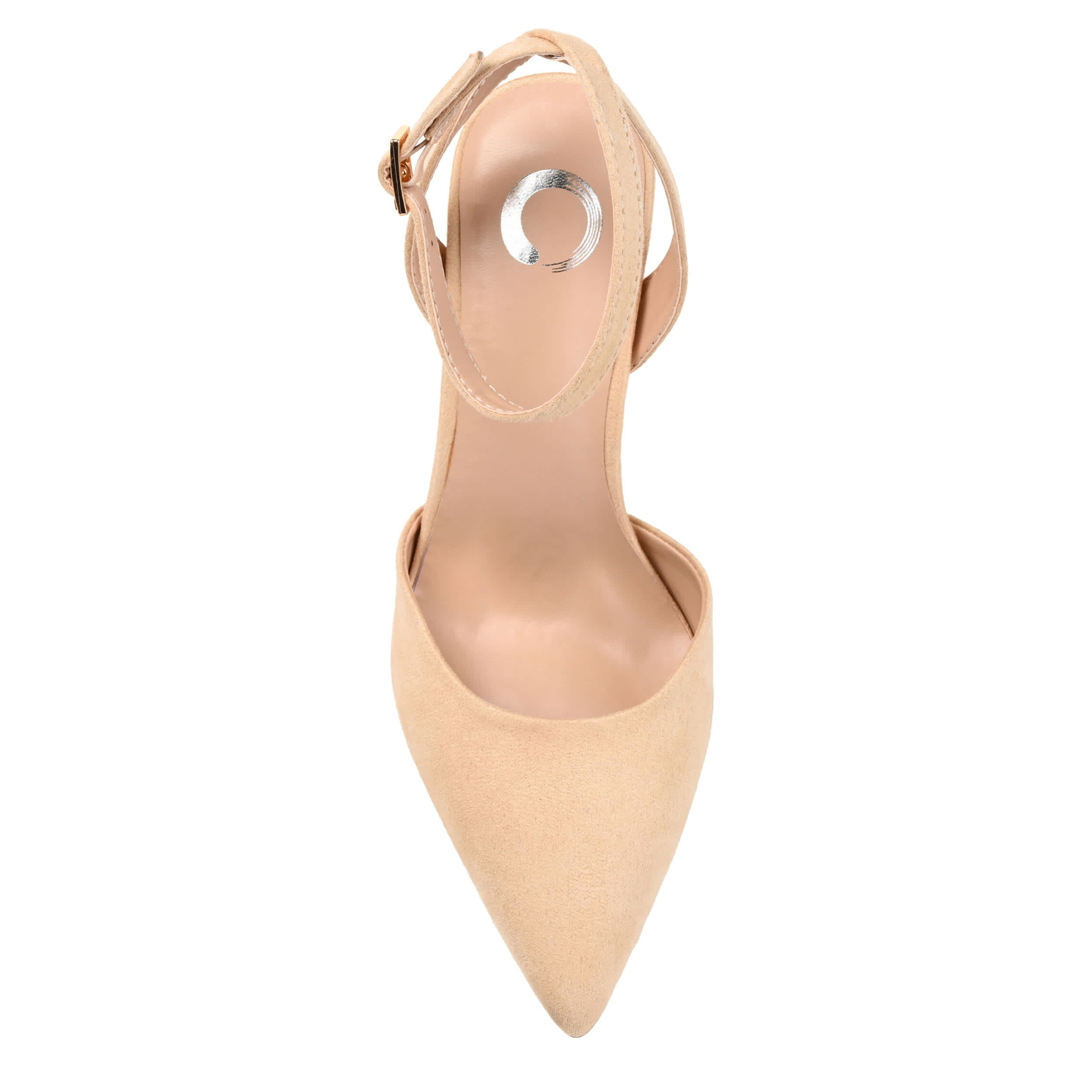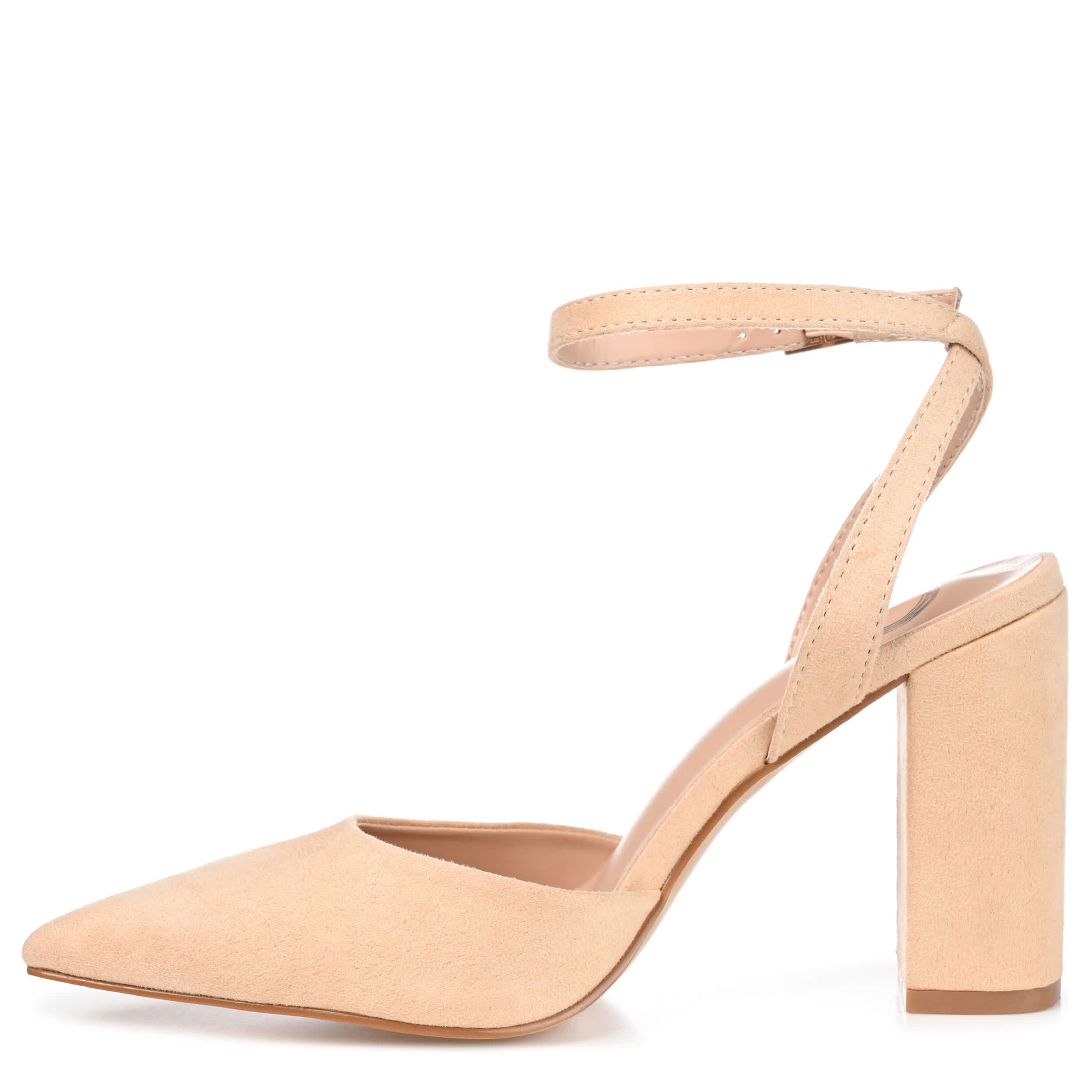 You'll be chic and on trend in the Journee Collection Tyyra pump. Featuring a faux suede upper with an ankle buckle strap for a secure fit, this pointy-toe shoe brings extra feminine flair to your work or weekend outfits. The padded insole comforts your steps, while the block heel gives a high, elegant lift.