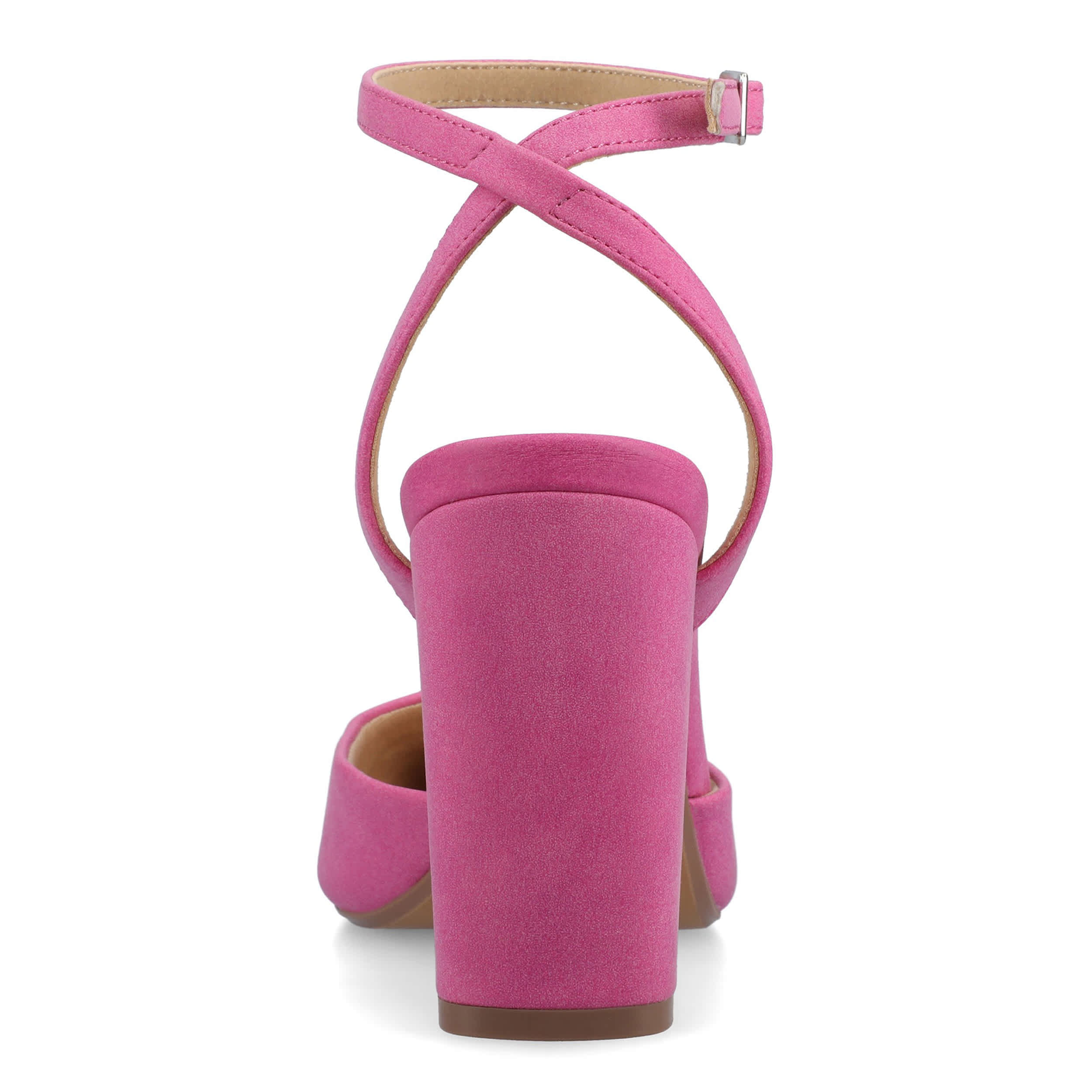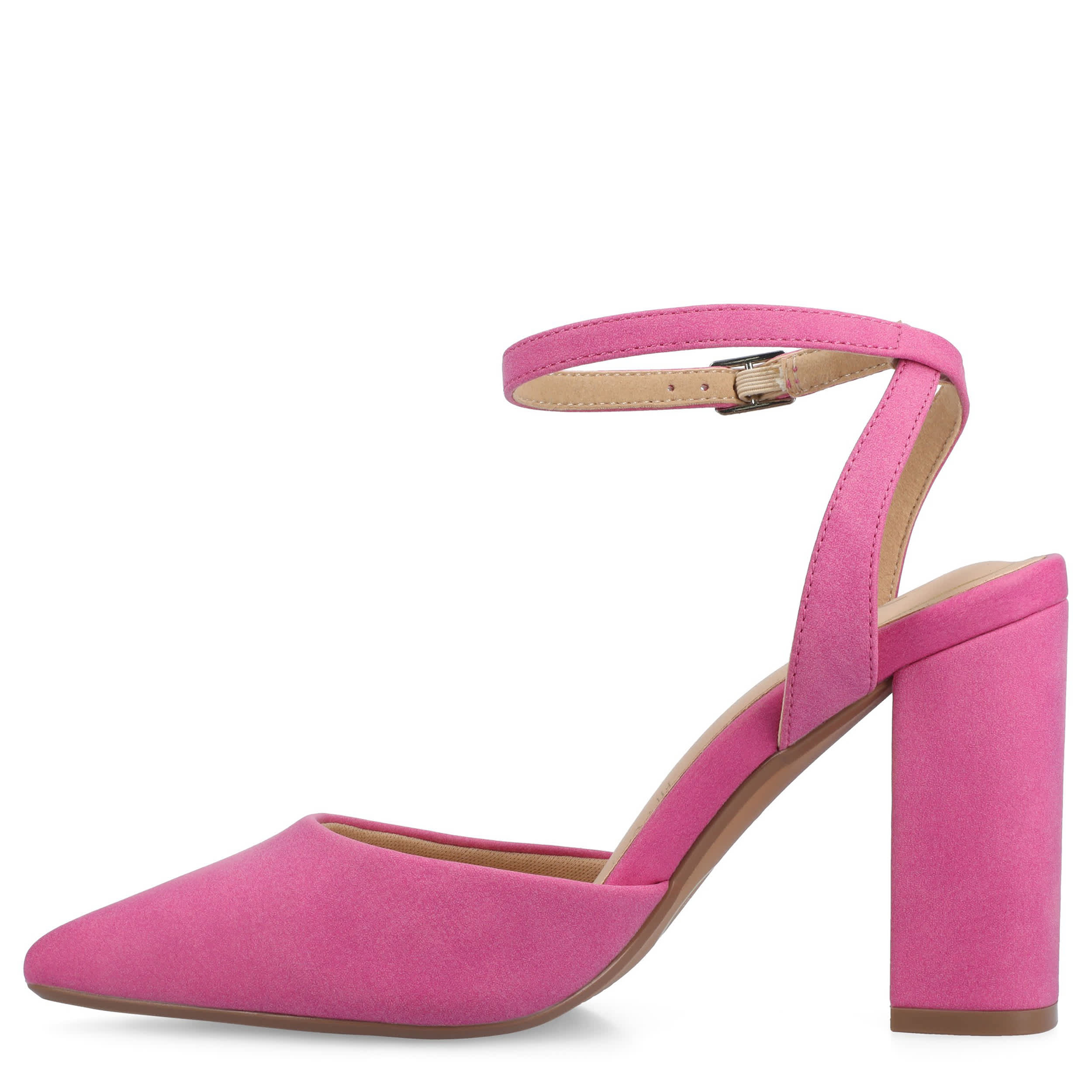 You'll be chic and on trend in the Journee Collection Tyyra pump. Featuring a faux suede upper with an ankle buckle strap for a secure fit, this pointy-toe shoe brings extra feminine flair to your work or weekend outfits. The padded insole comforts your steps, while the block heel gives a high, elegant lift.