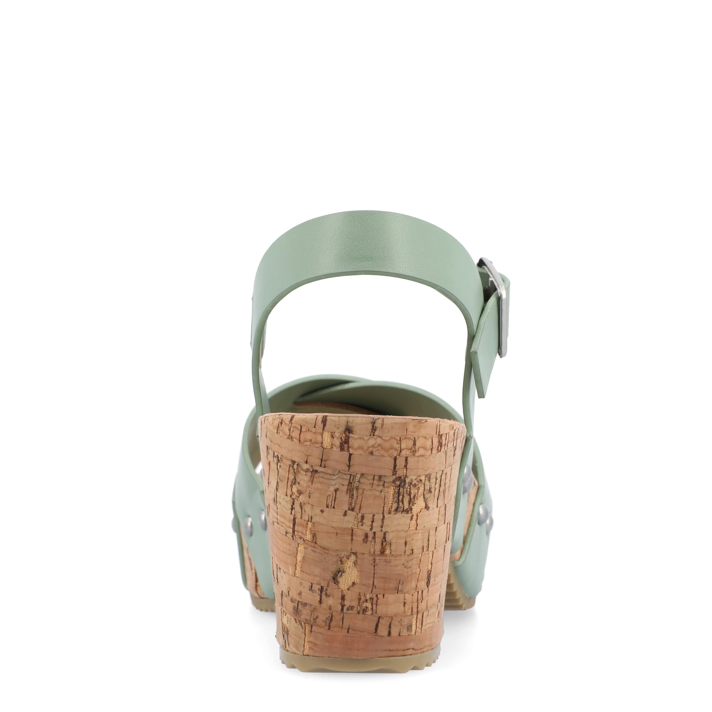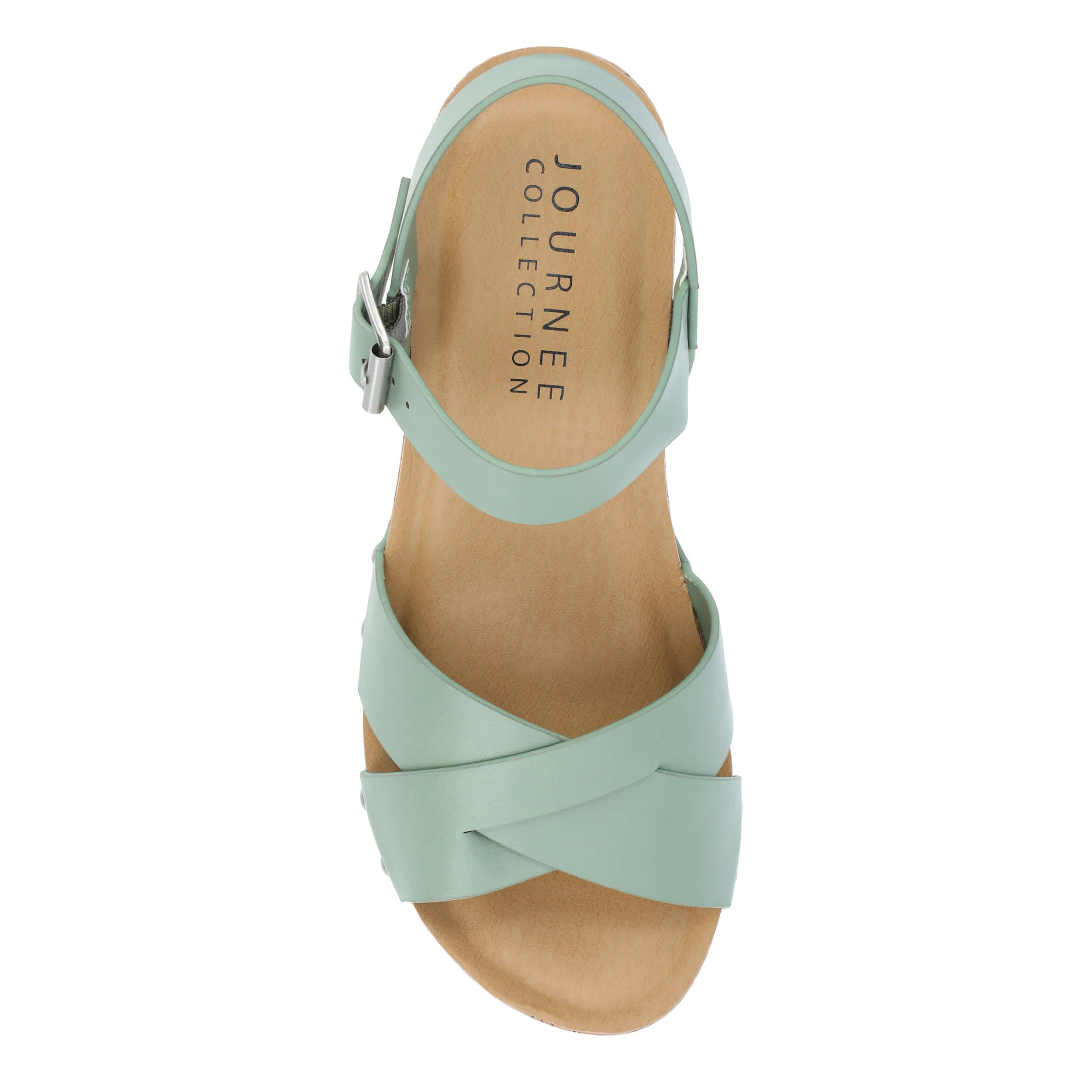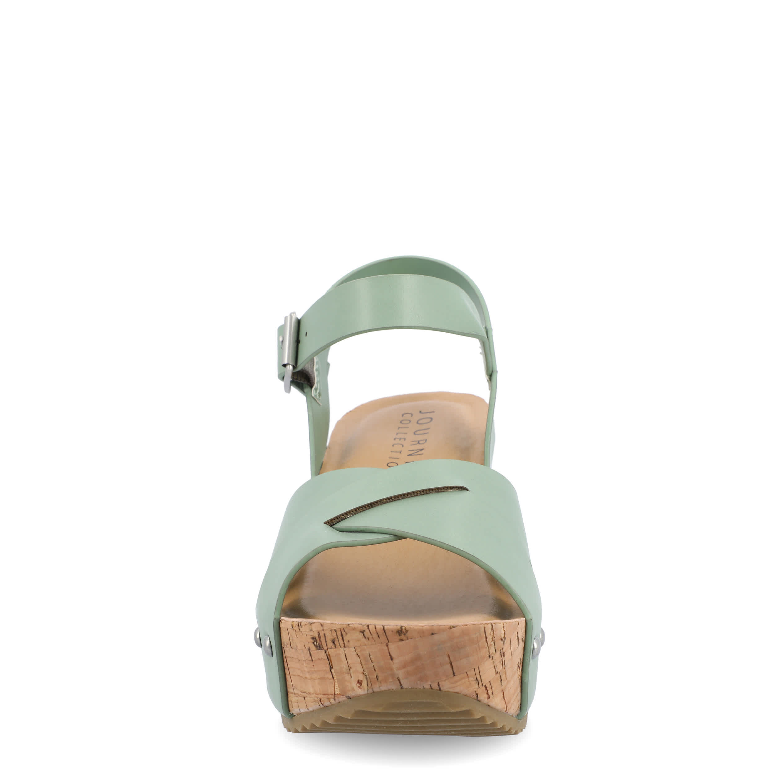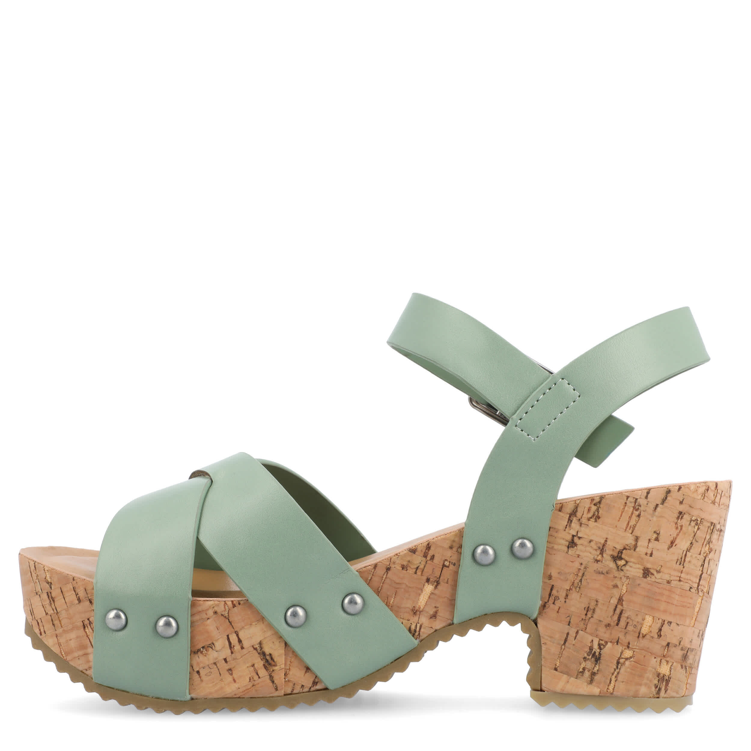 Give your feet a stylish foundation with the Journee Collection Valentina women's platform sandal. With a faux leather upper and studded accents, these ankle strap sandals make a great fit with skirts or pants. The lightly padded footbed soothes your foot while you let the cork platform and 3" block heel raise your style profile.