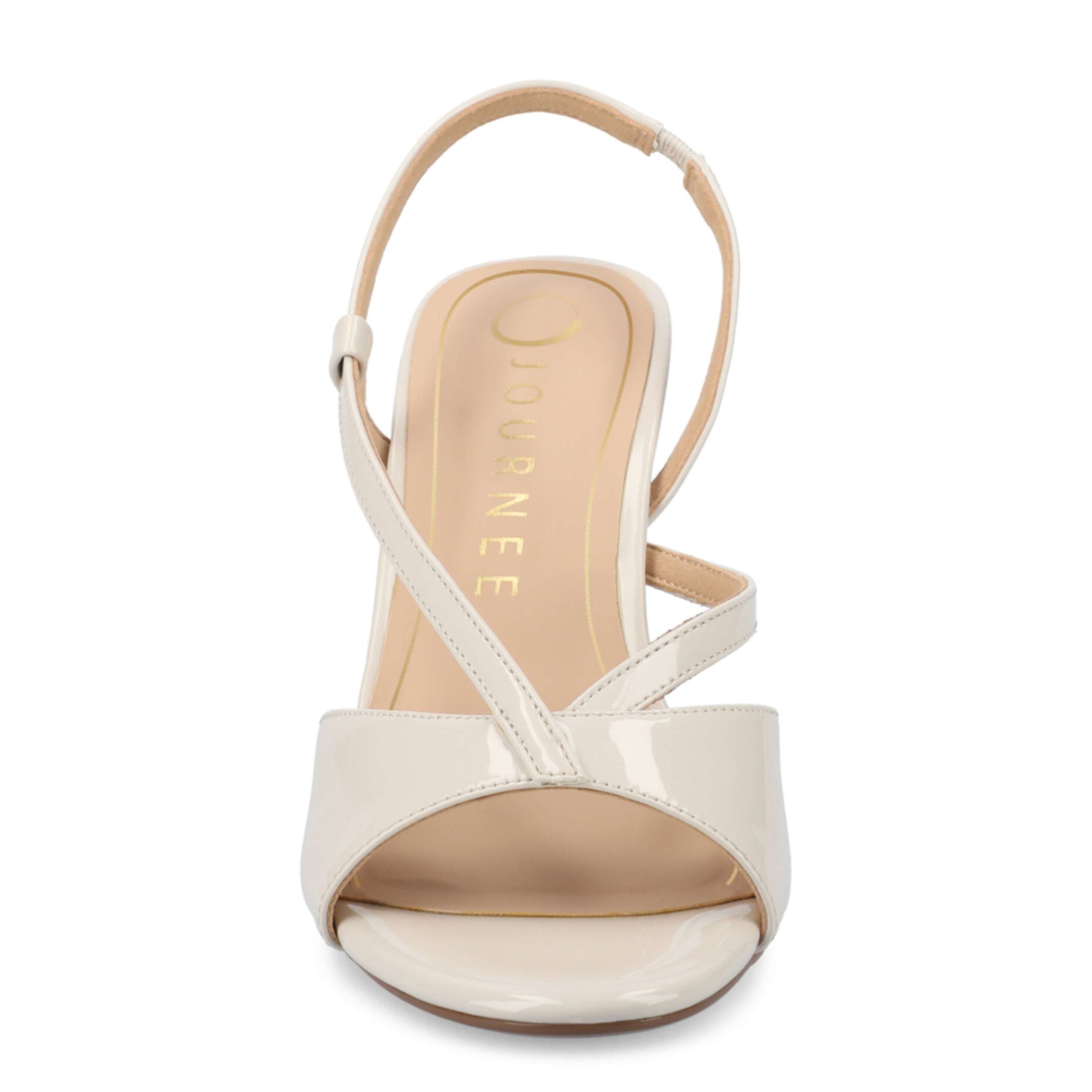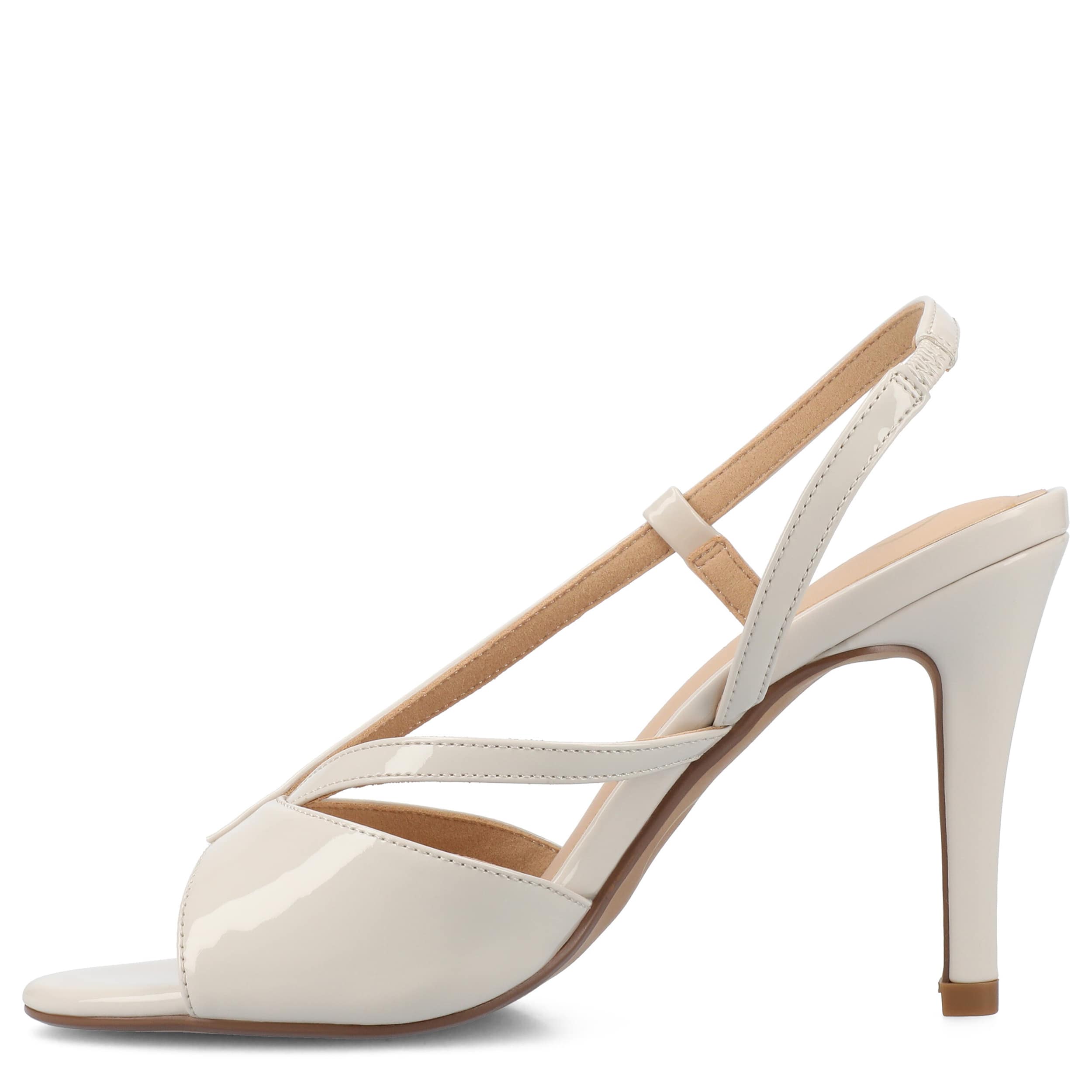 Make your style more flattering with the Varra sandal from Journee Collection. Featuring a glossy patent leather upper with crossover straps, this peep toe shoe has a sleek silhouette that has an elegant effect. The insole soothes, while the high heel lifts your look.