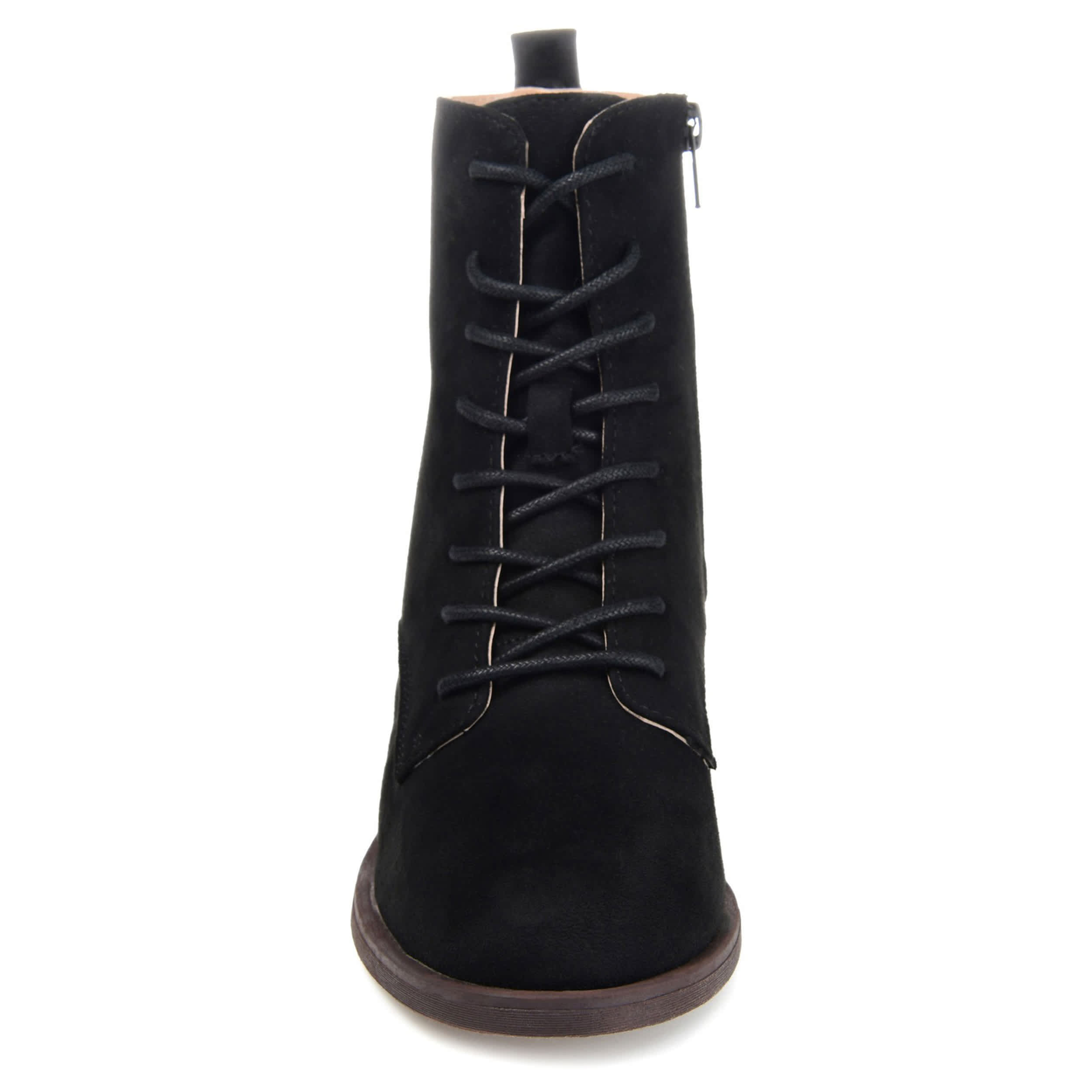 Fall is calling for more stylish boots, like the Vienna Wide Width Lace Up boot from Journee Collection. With a vegan leather upper featuring a traditional lace-up front, this chic, almond-toed boot pairs nicely with long skirts or jeans. A foam footbed cushions your foot, while the low heel adds just enough lift.