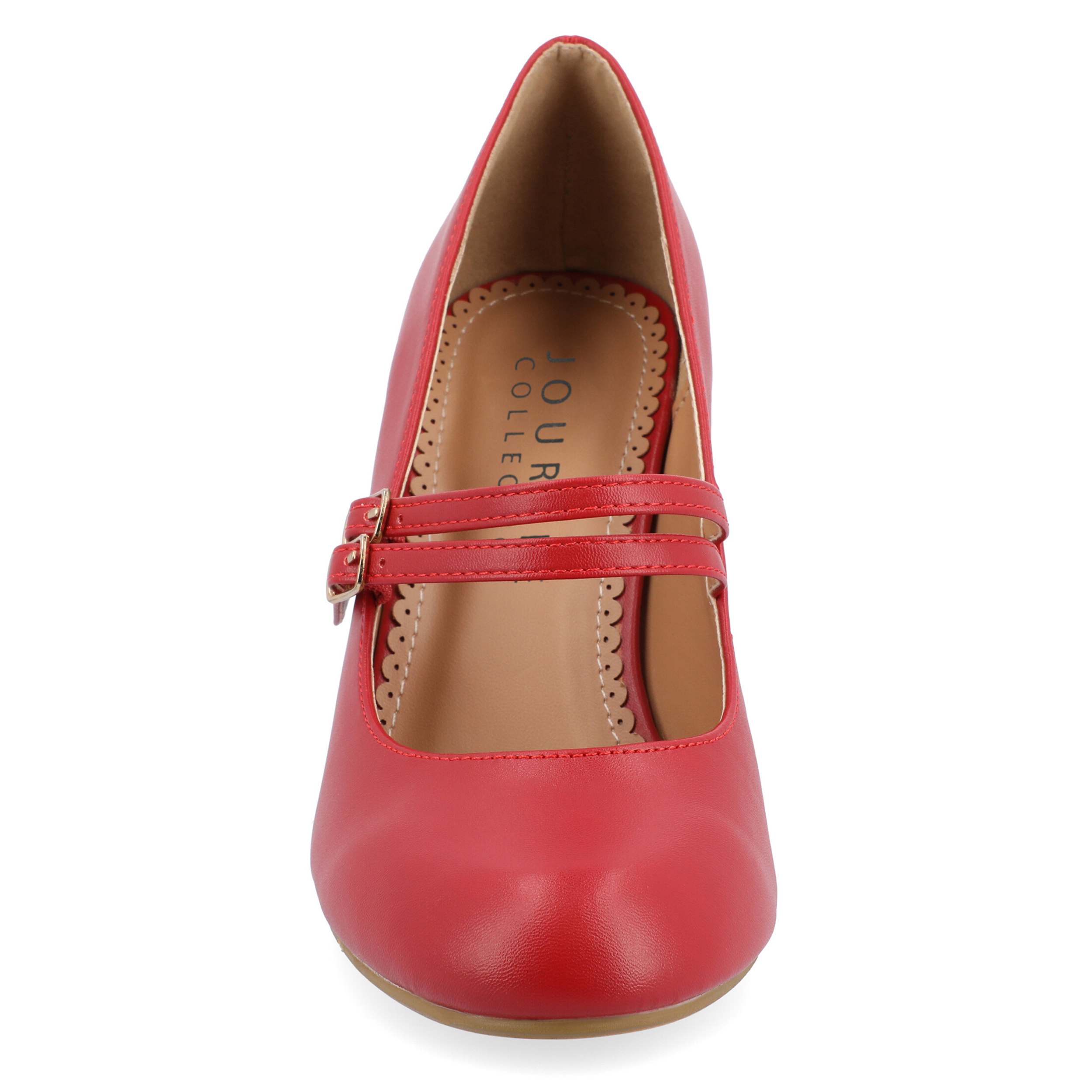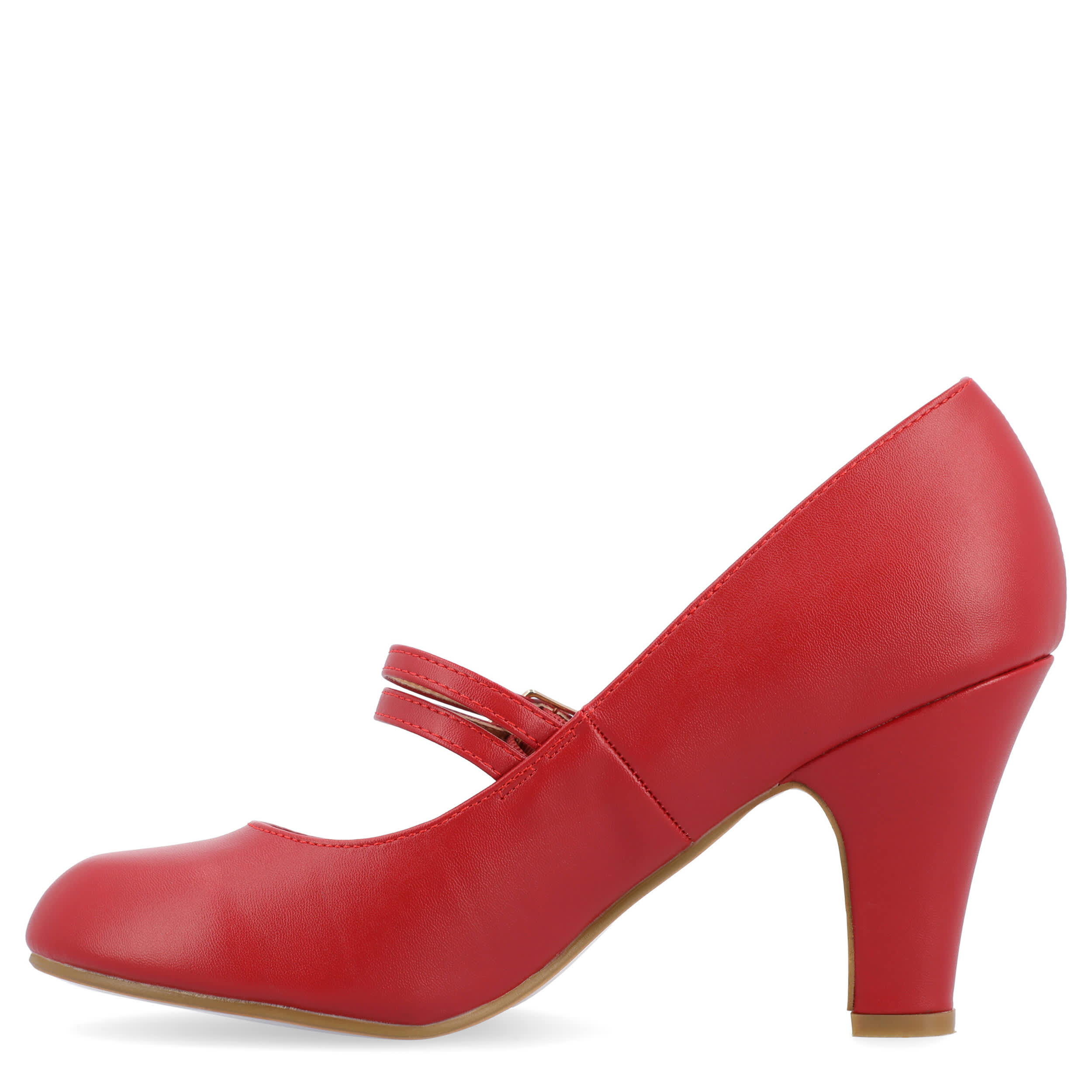 The Windy Classic women's pump from Journee Collection is the perfect accessory to complete your elegant look. This understated Mary Jane pump features a supple vegan leather upper, parallel straps with adjustable buckles for vintage appeal, and a padded footbed to cushion your feet. A 3¼" covered heel creates a stylish lift, while the synthetic outsole offers support and stability, ideal for spending long hours on your feet.