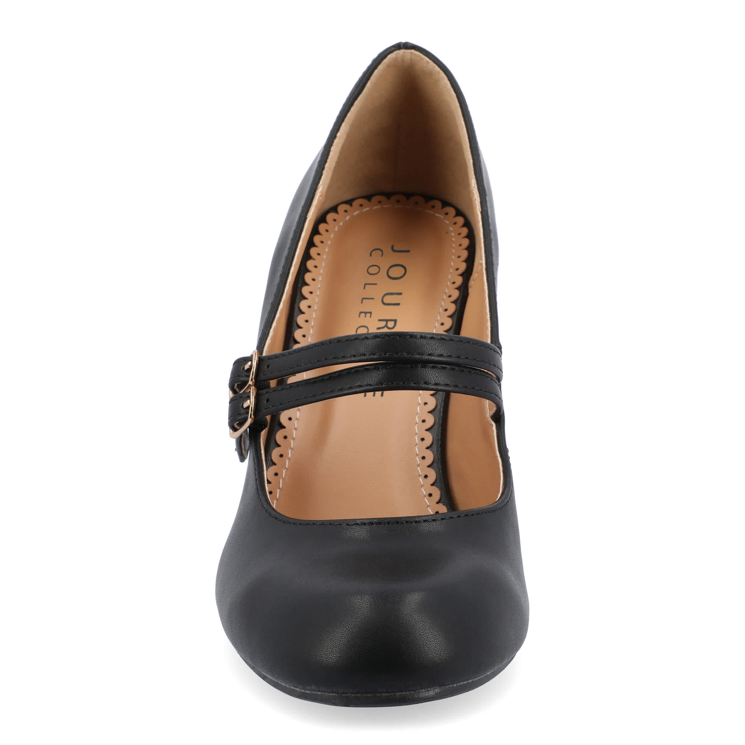 Every lady needs the Windy Wide women's pump from Journee Collection. With avegan leather upper featuring dual buckle straps that easily adjust for a perfect fit, this Mary Jane-style pump lends understated vintage appeal to any ensemble. The padded footbed cushions your feet, while the tapered block heel adds elegant lift.