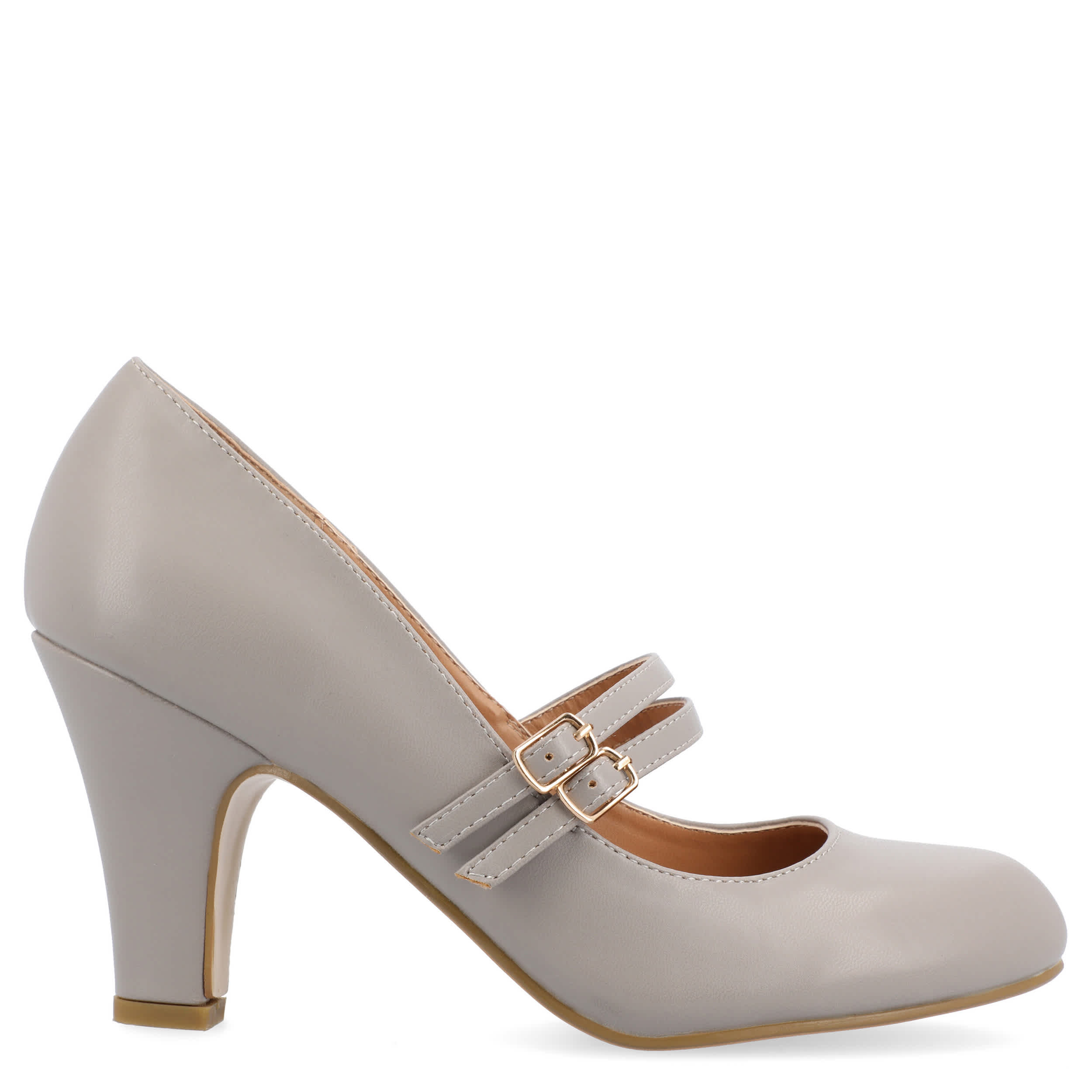 Every lady needs the Windy Wide women's pump from Journee Collection. With a vegan leather upper featuring dual buckle straps that easily adjust for a perfect fit, this Mary Jane-style pump lends understated vintage appeal to any ensemble. The padded footbed cushions your feet, while the tapered block heel adds elegant lift.