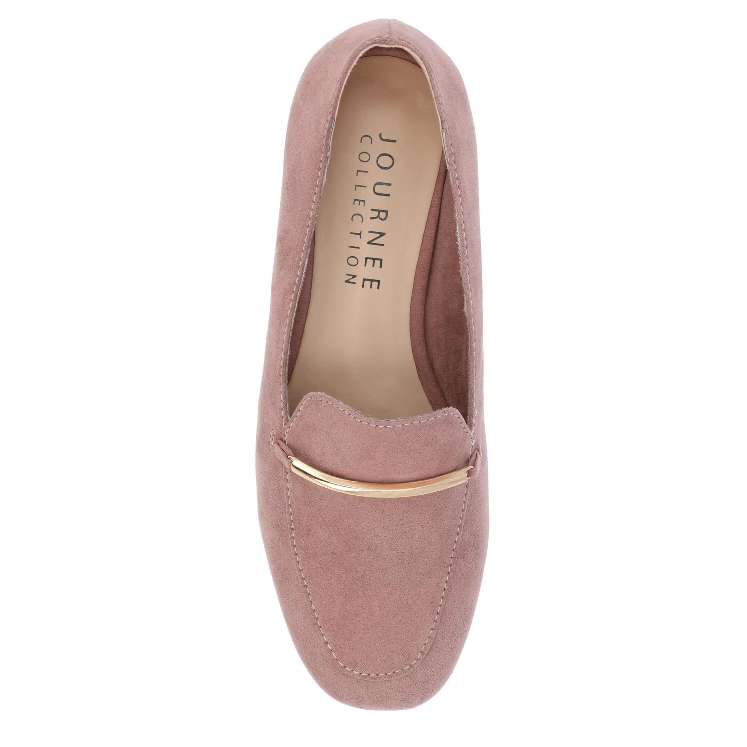 You can't go wrong with the Wrenn women's loafer from Journee Collection. With a faux suede upper featuring a polished hardware accent and flattering square toe, this chic shoe lends laidback sophistication to any ensemble. The Tru Comfort Foamâ„¢ footbed offers unmatched cushioning and support, perfect for all-day wear.