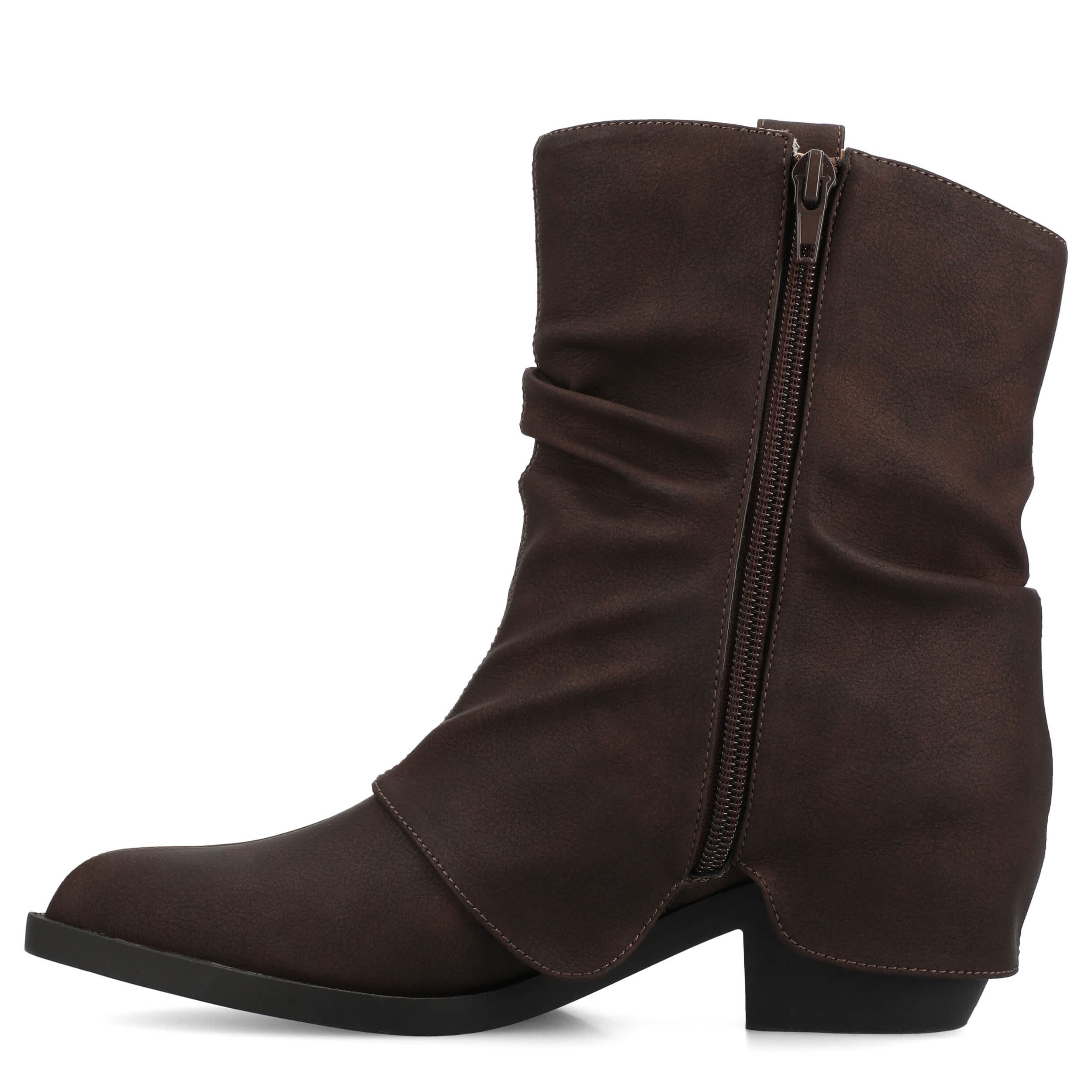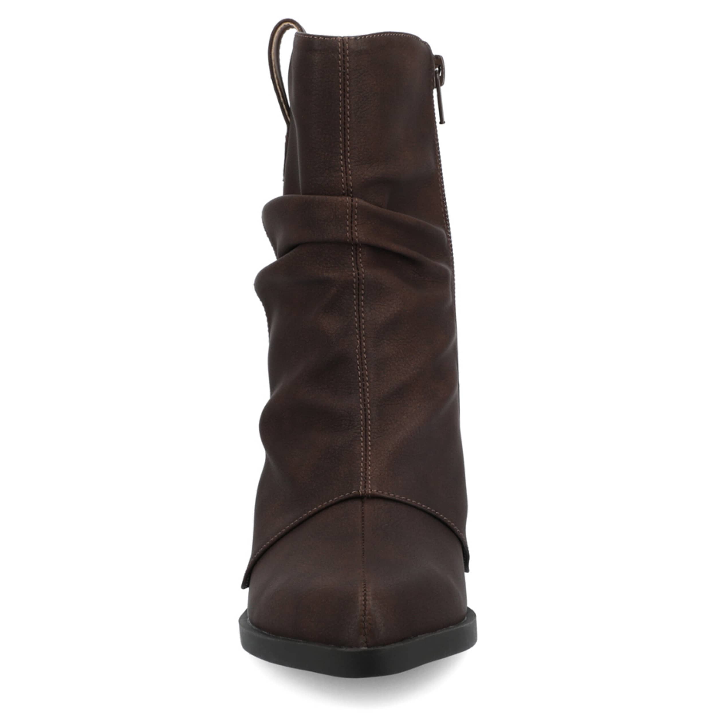 Catch every day in the Wynette women's boot from Journee Collection won't sit in your closet long. With a faux leather upper featuring a slouchy, Western style, this ankle boot is modern and relaxed. The Journee Comfort System insole cushions, while the Cuban heel provides a nice lift.