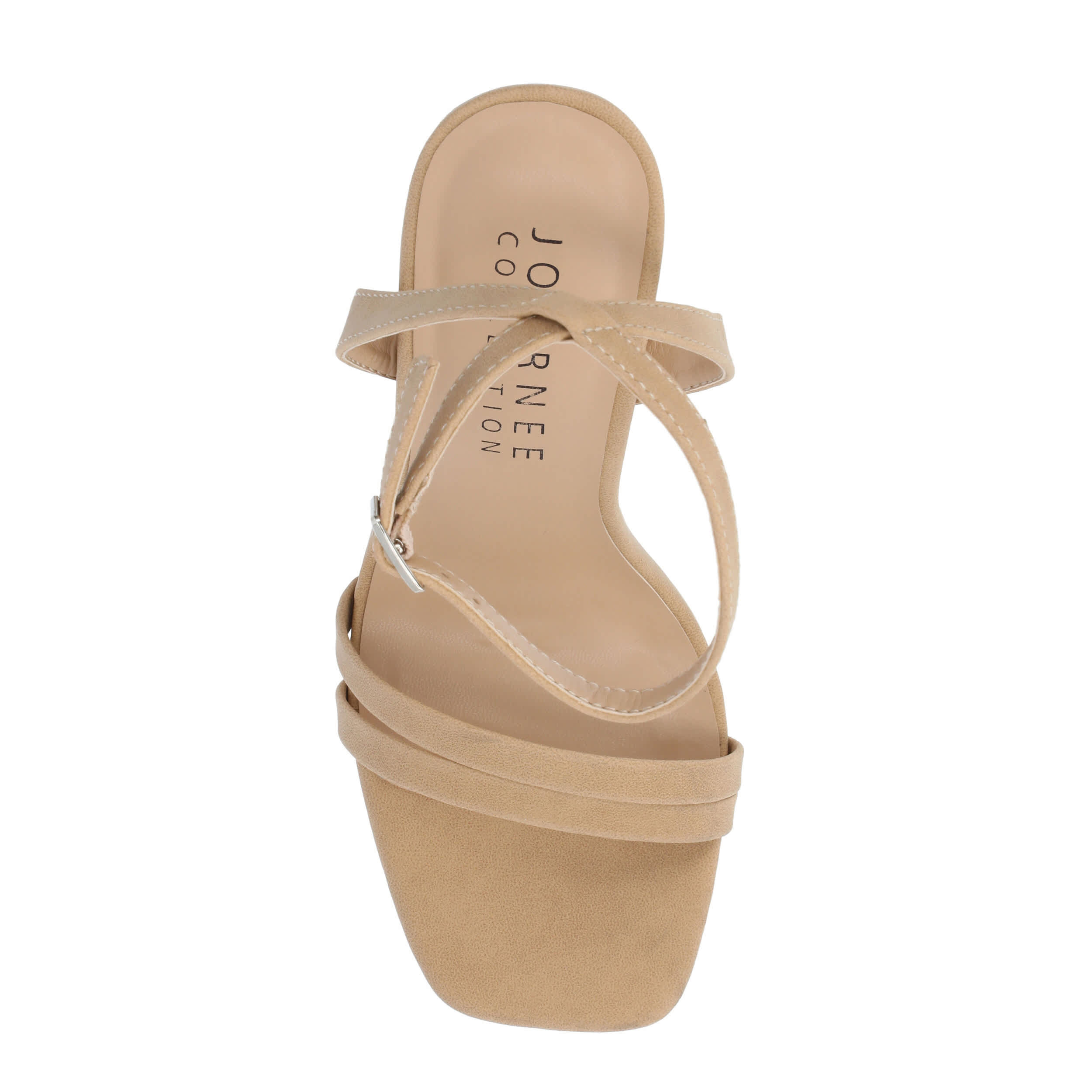 Take your look to stunning new heights with the Yevva women's sandal from Journee Collection. With a faux leather upper featuring a dainty ankle strap that easily adjusts for a perfect fit, this sandal guarantees attention with its flattering open square toe and stiletto heel. Thanks to the padded footbed, get above-par cushioning and support with every step.