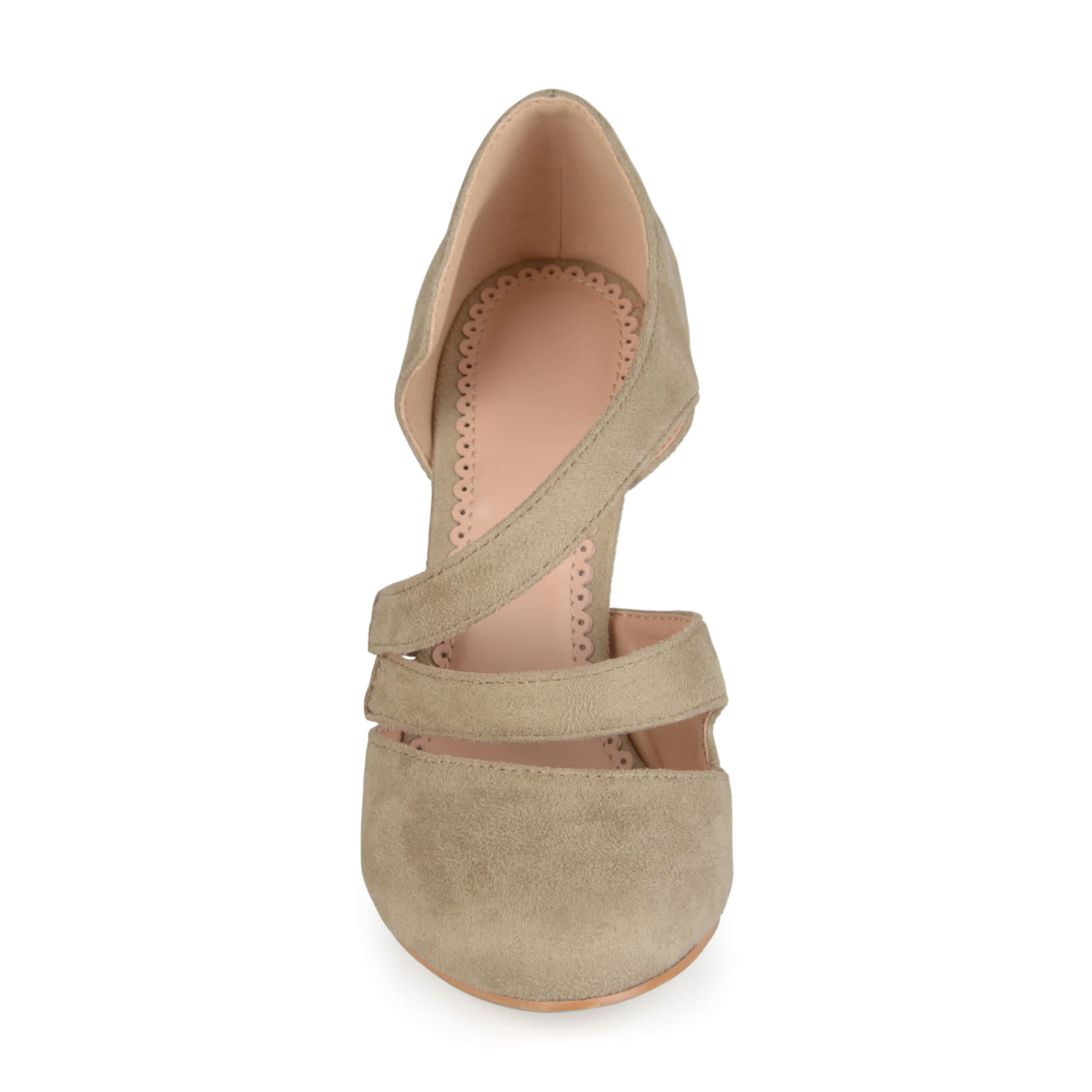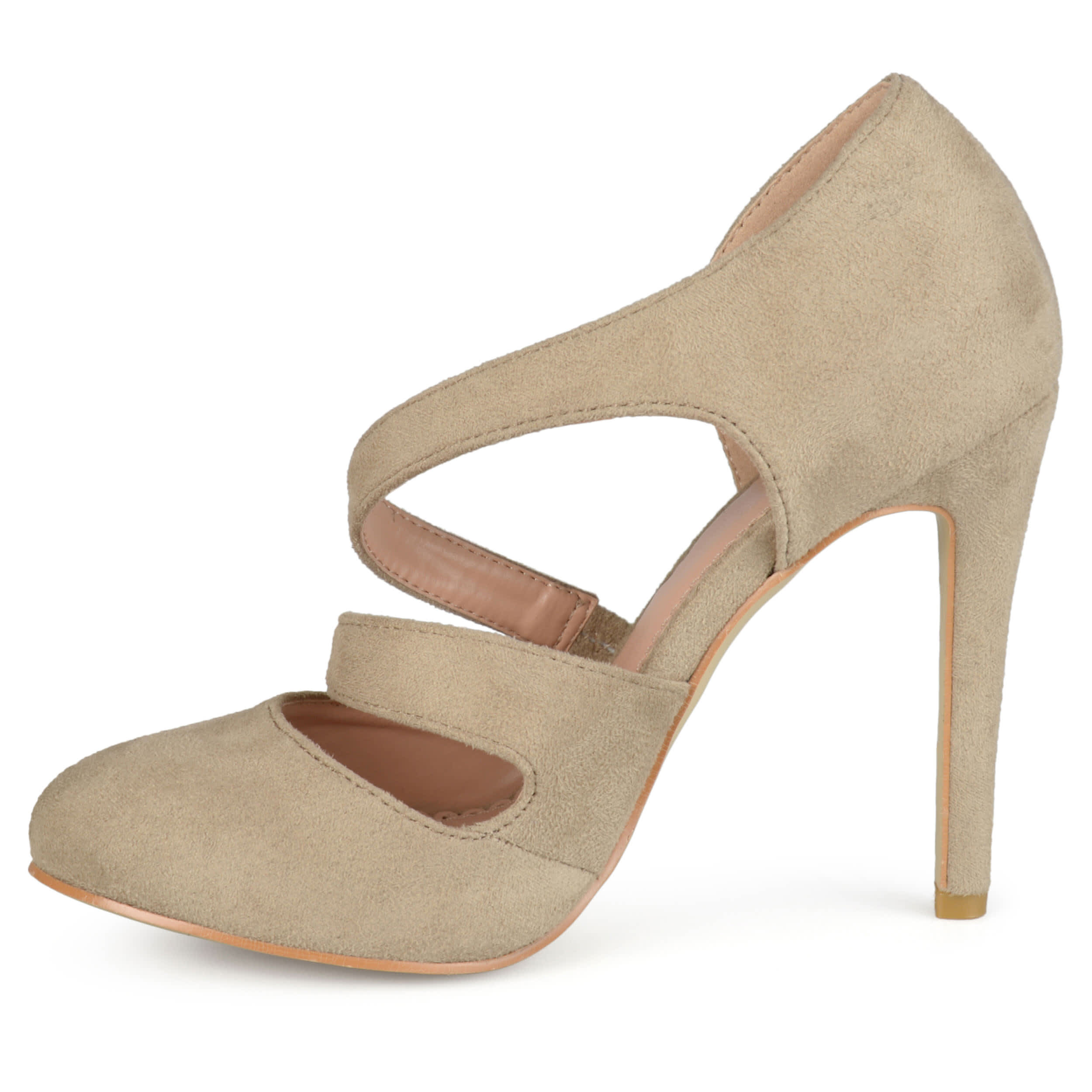 Step into style with the chic Zeera women's pump from Journee Collection. A faux suede upper featuring two asymmetrical crossover straps and a skinny 4¼" stiletto heel creates a flattering look for any dressy occasion. The padded footbed soothes and supports your feet, so you can enjoy hours of comfortable wear in these stunning pumps.