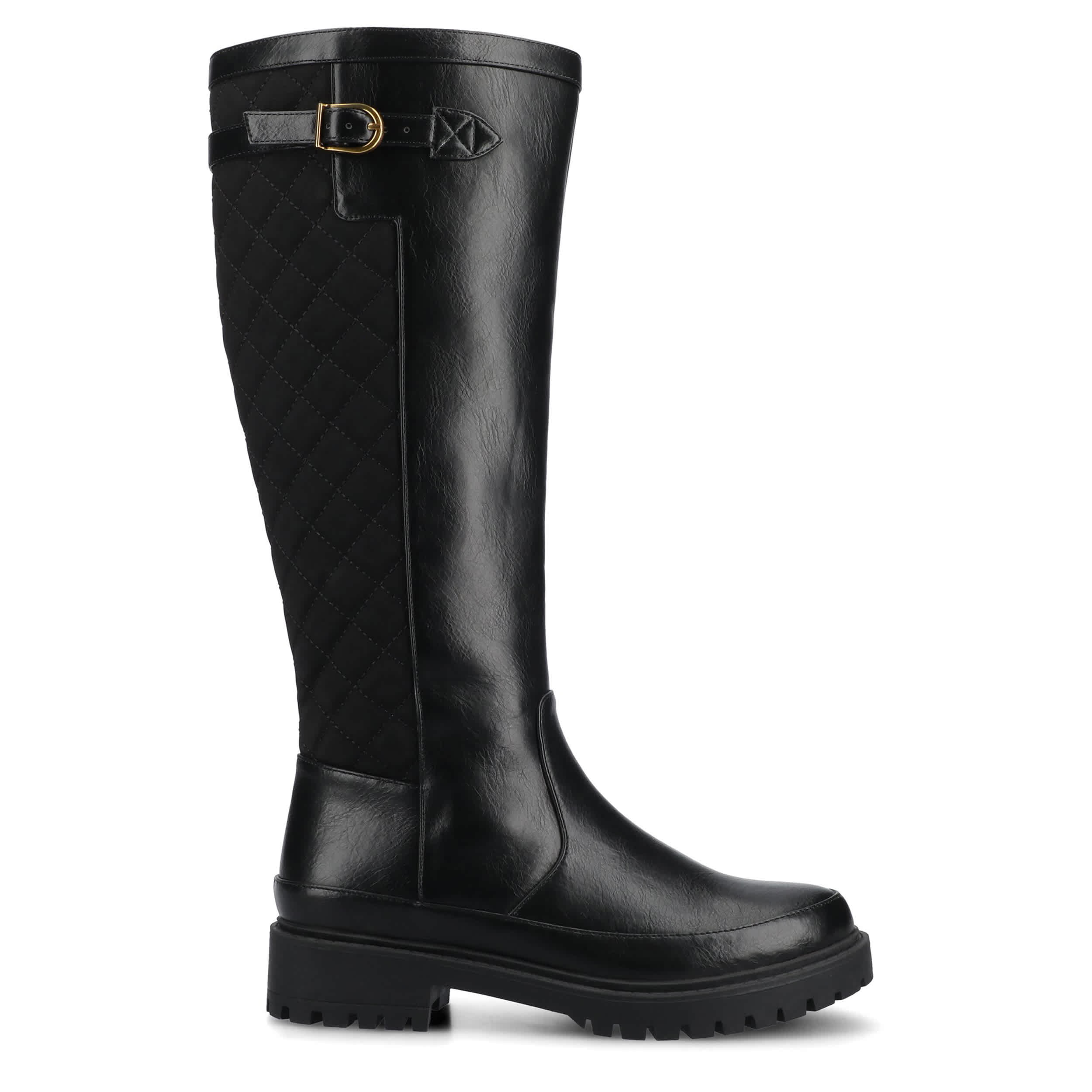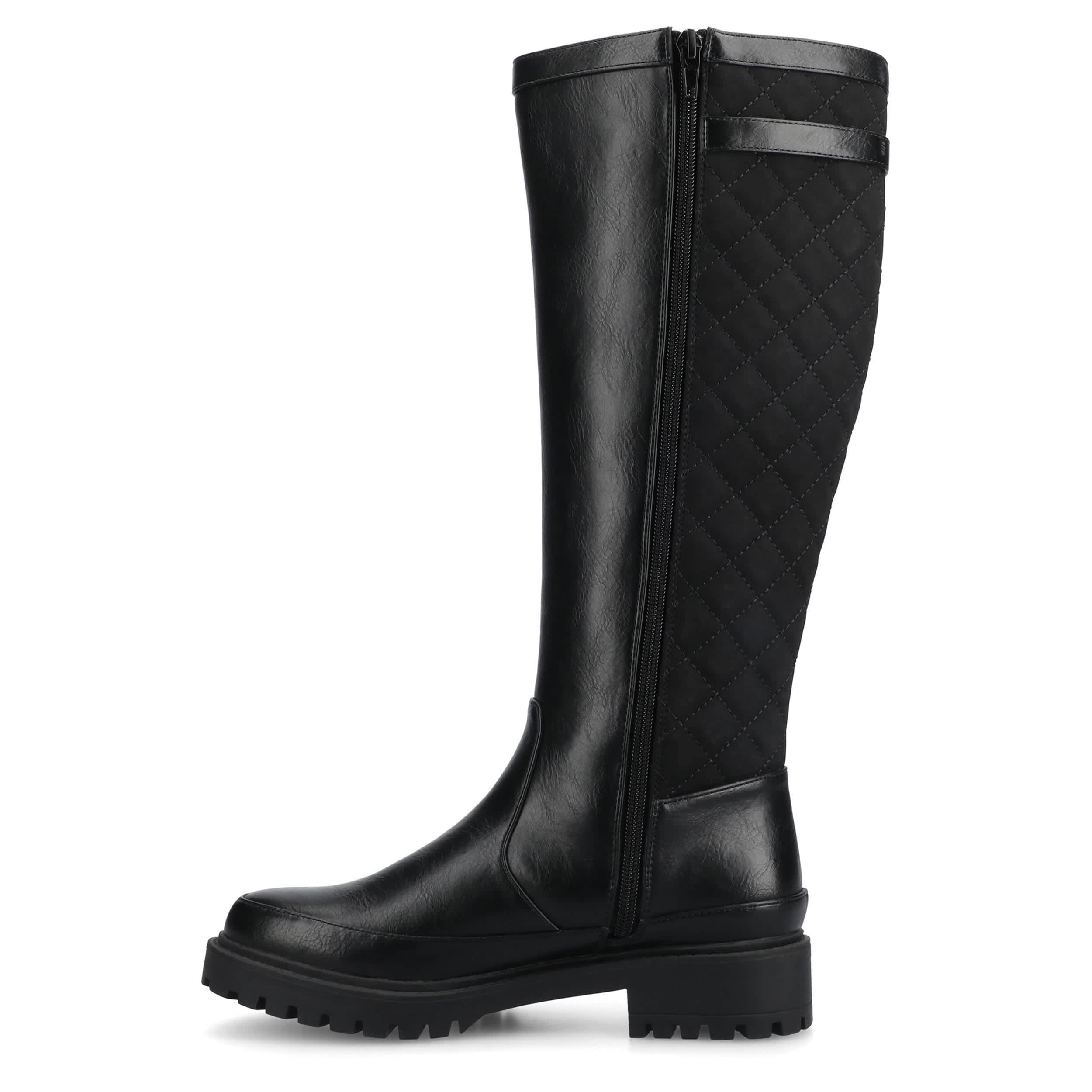 Leaves and style converge in the Journee Collection Zemmie Wide Calf tall boot. With a faux leather upper featuring a quilted panel for extra style, this knee-high boot is sure to become a fall favorite. Walk easy on the Journee Comfort System insole and lug traction.