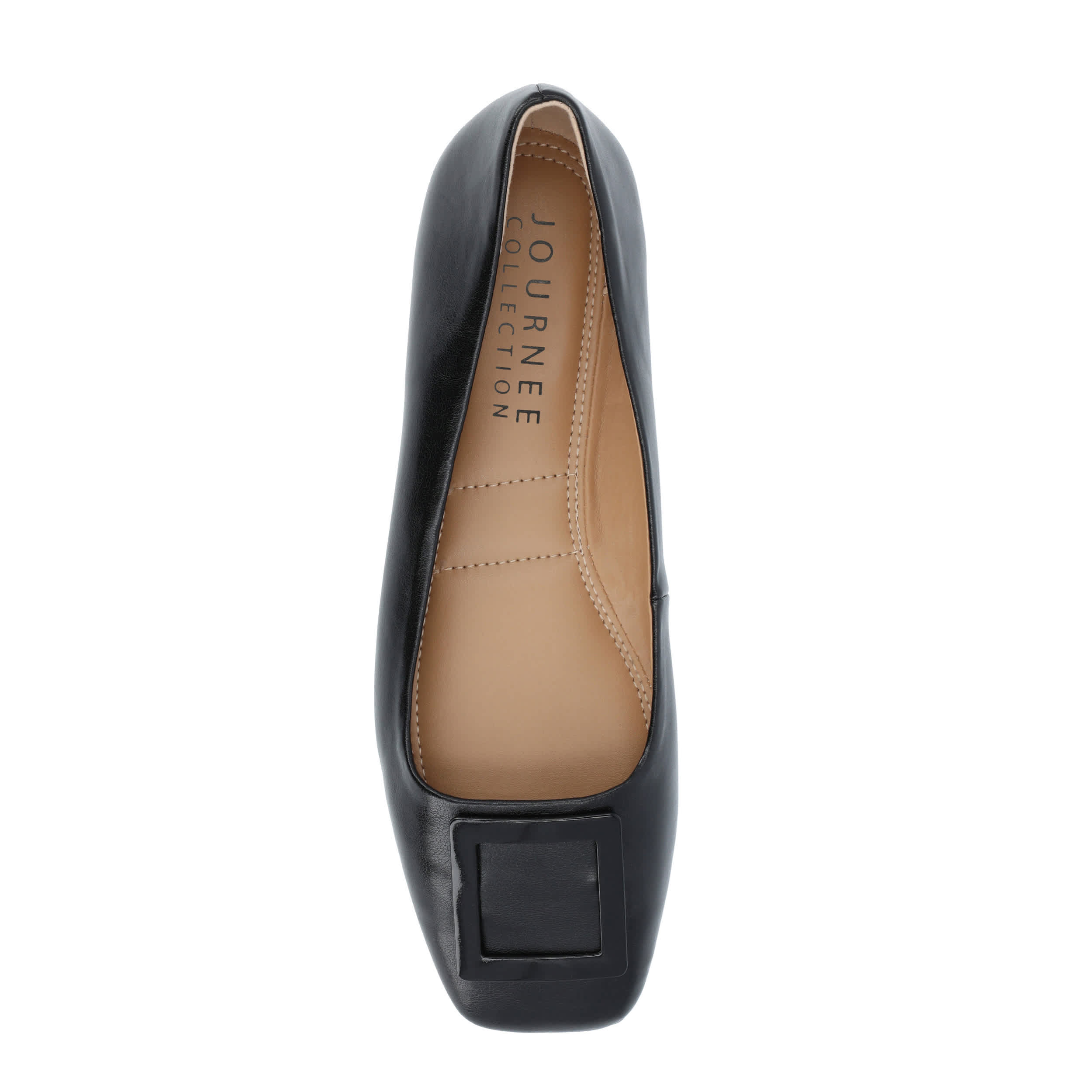 Step out of the usual in the Zimia women's flat from the Journee Collection. With a vegan leather upper featuring tonal hardware for style, this slip-on also has an elegant square toe. The Tru Comfort Foamâ„¢ insole cushions while the flat sole adds durable stability.