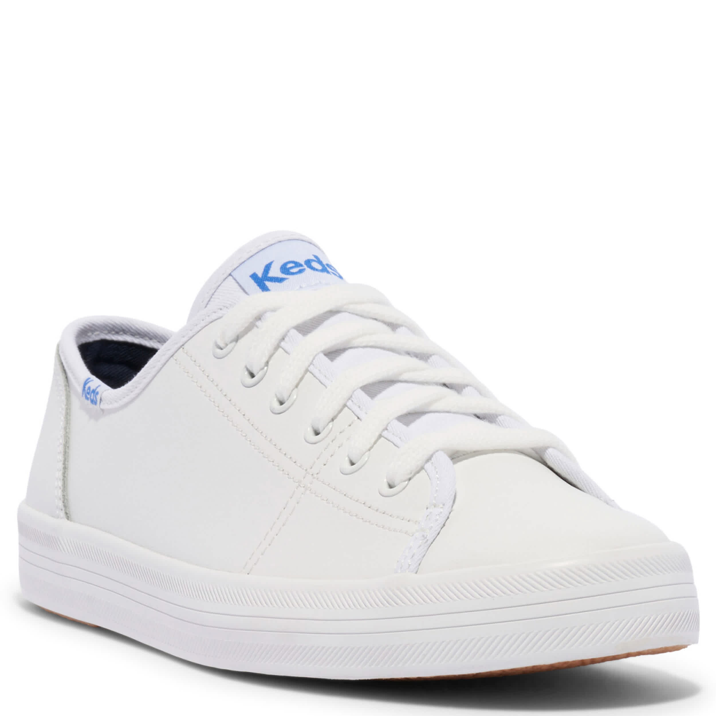 Comfortably add the Kickstart women's sneaker by Keds to your wardrobe. With a leather upper featuring 6 eyelets that go past midfoot for a secure fit, this lace-up sneaker is sporty with endless style options. The cushioned footbed comforts your foot, while the vulcanized outsole provides great traction.