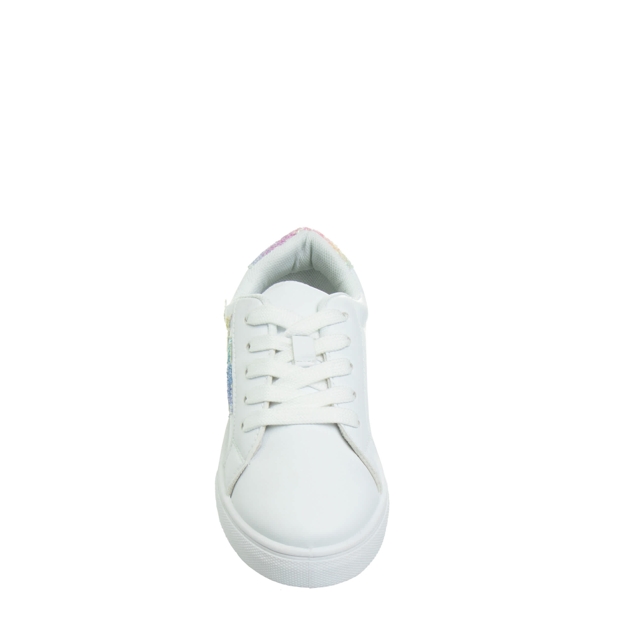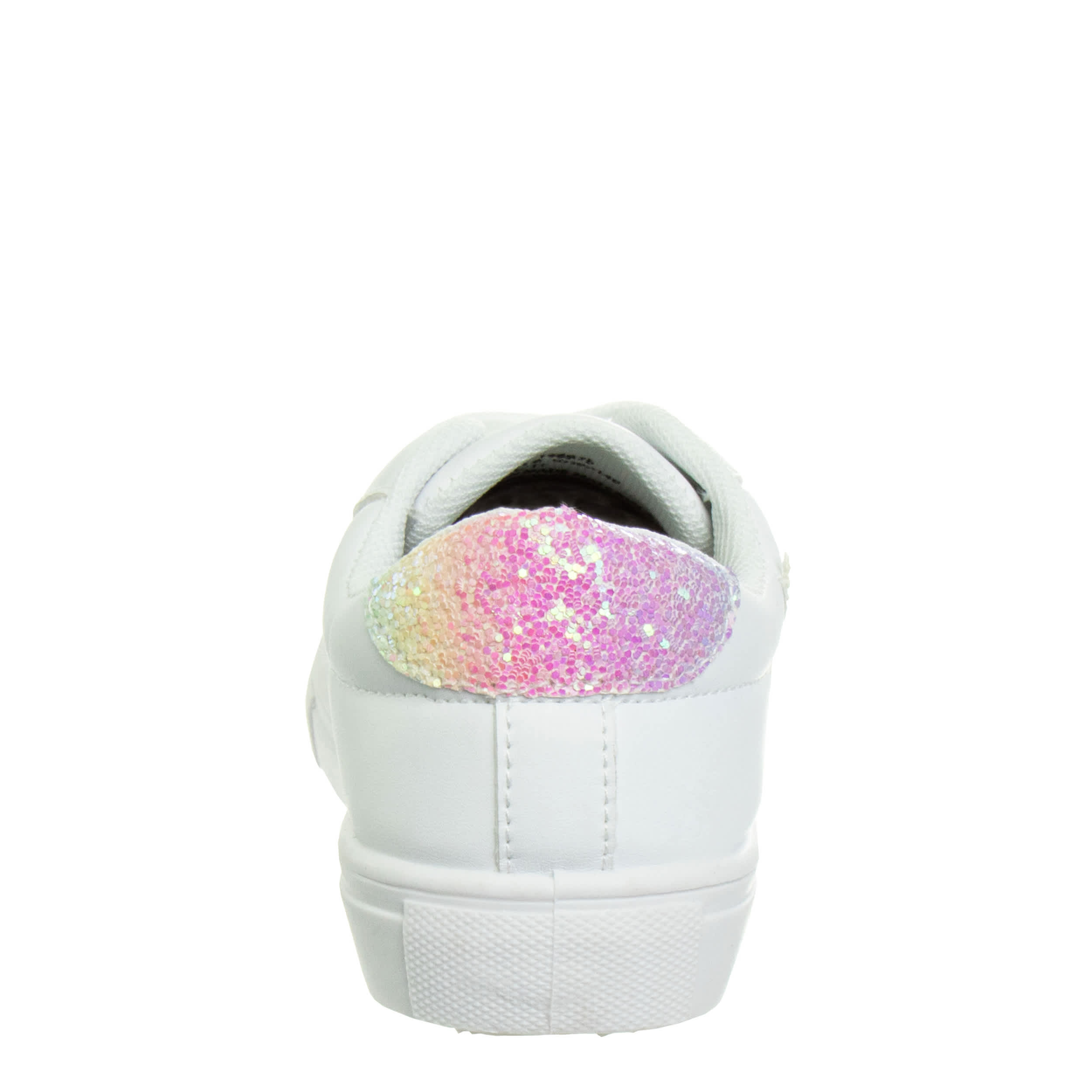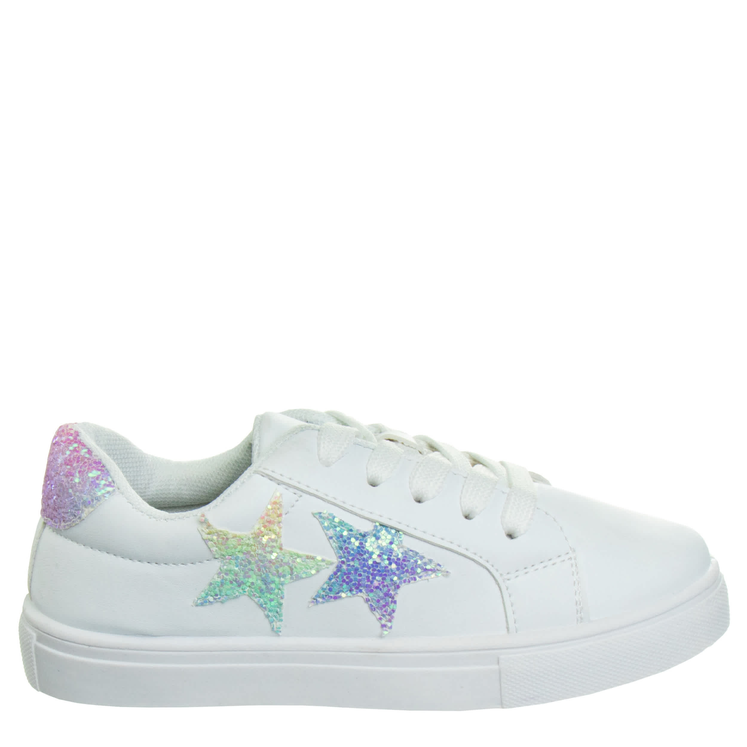 She'll be a little fashionista in the Kensie Glittery girls’ sneaker. Featuring a faux leather upper with glitter star accents on the sides and a glitter heel, this shoe adds a sparkly touch to any outfit. The foam insole and rubber outsole ensure all-day comfort.