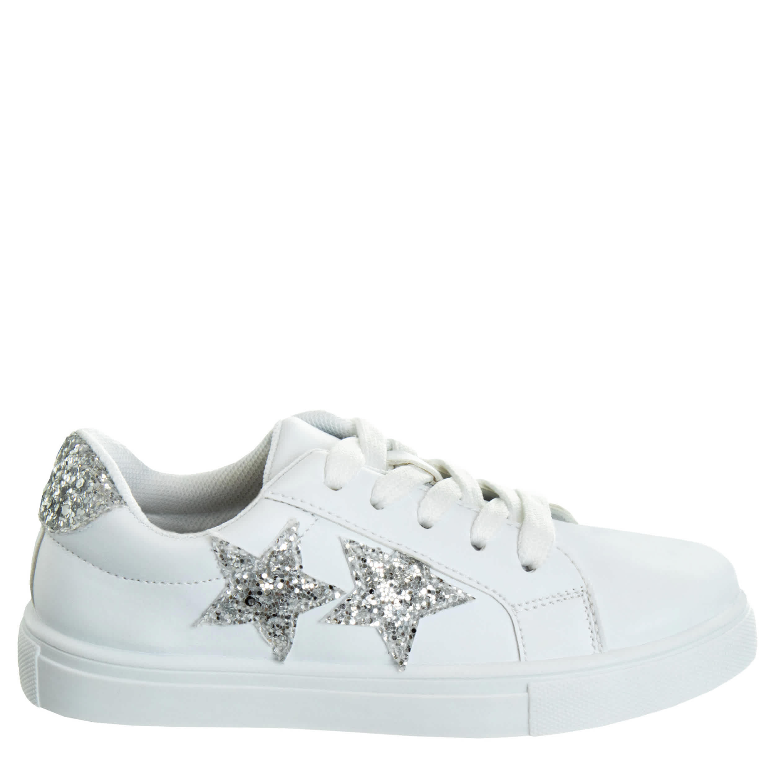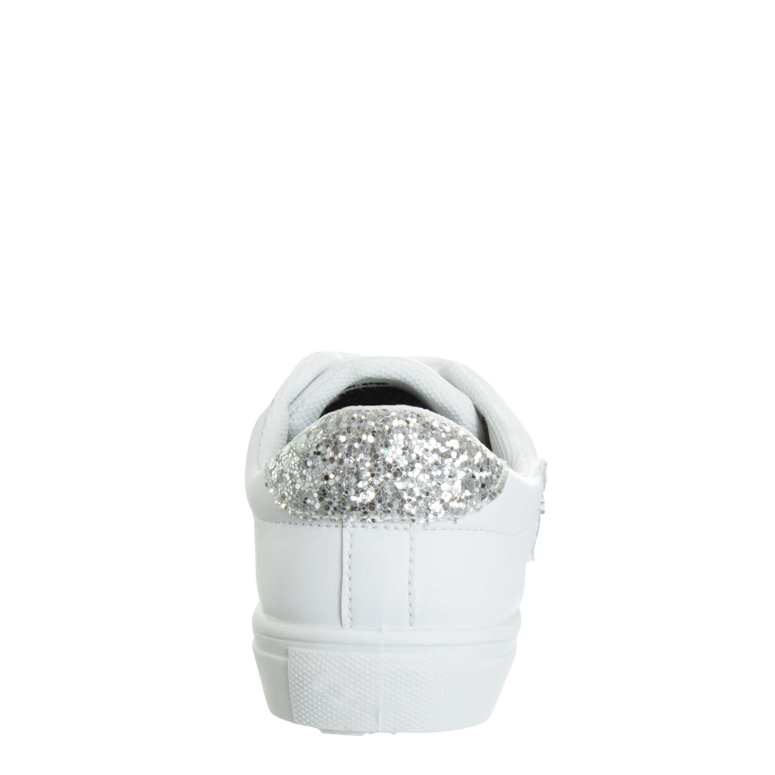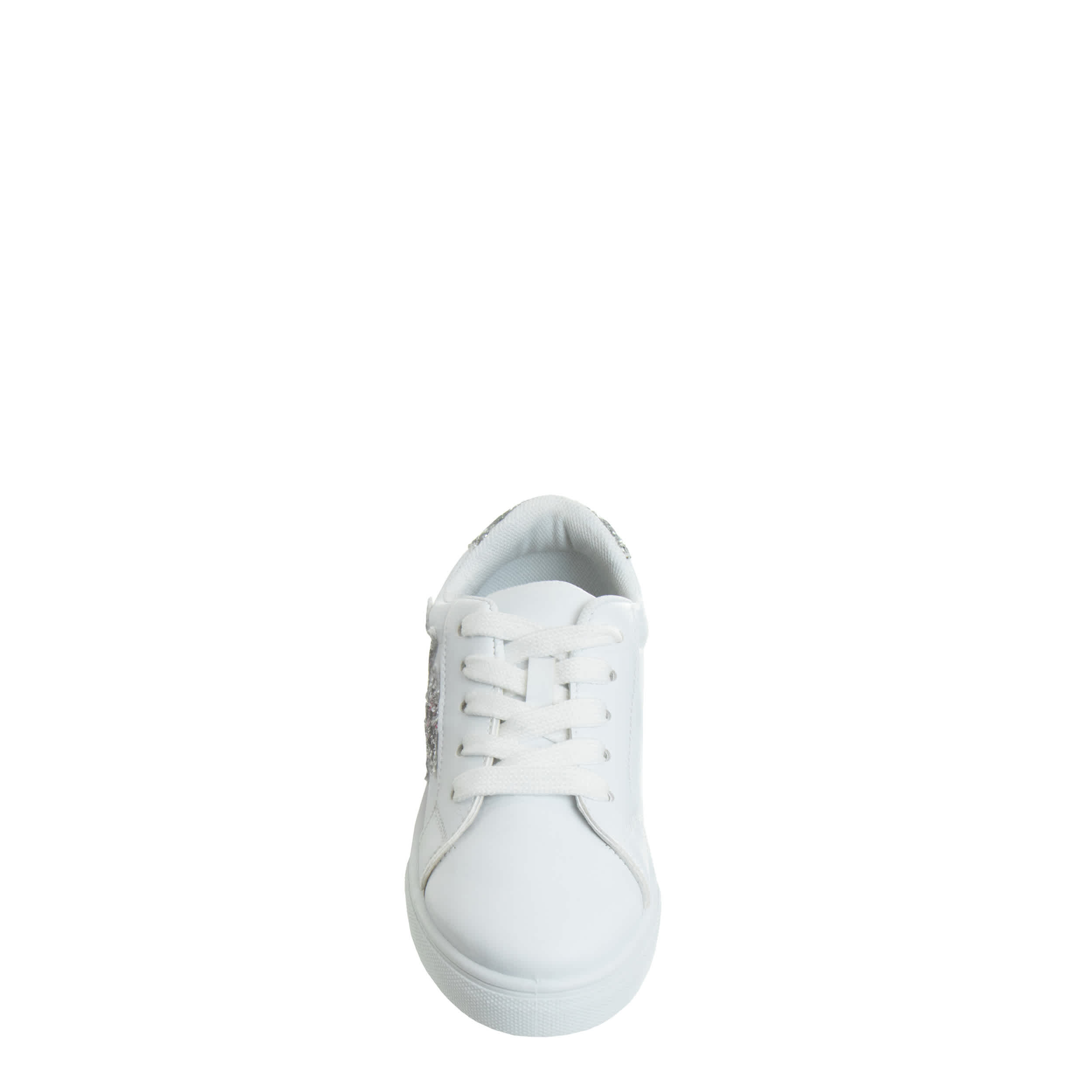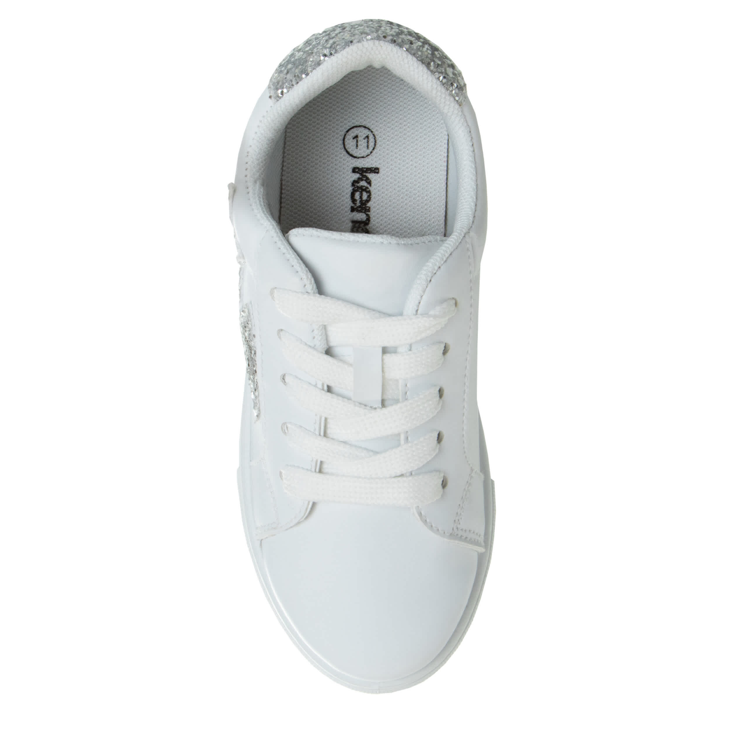 She'll be a little fashionista in the Kensie Glittery girls’ sneaker. Featuring a faux leather upper with glitter star accents on the sides and a glitter heel, this shoe adds a sparkly touch to any outfit. The foam insole and rubber outsole ensure all-day comfort.