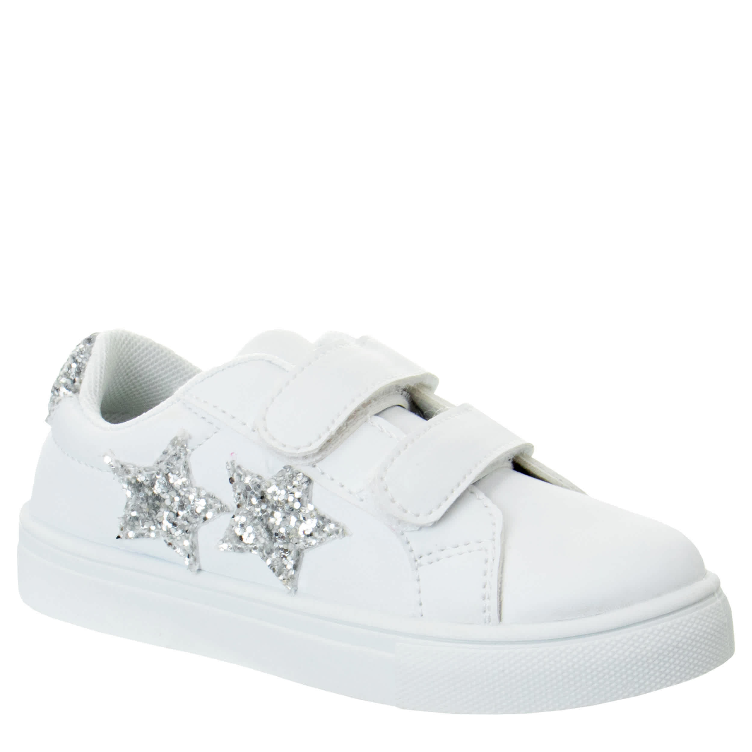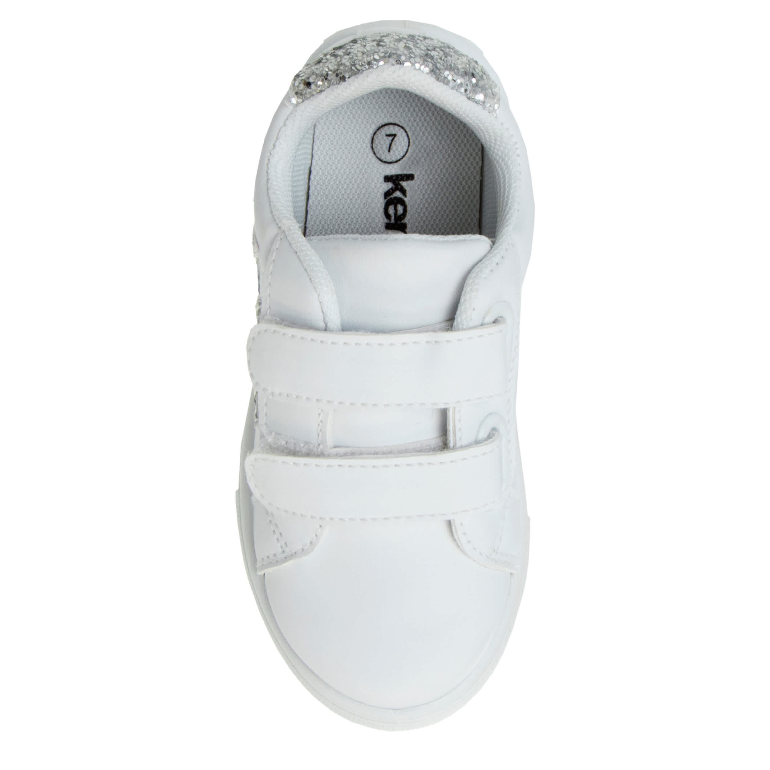 She'll love wearing the Kensie Girl Hearts toddler/little kid girls’ sneaker all season long. Featuring a faux leather upper with dual Velcro straps, this shoe has sparkly silver accents to show off her inner fashionista. The padded footbed cushions, while the rubber outsole is supportive with traction.