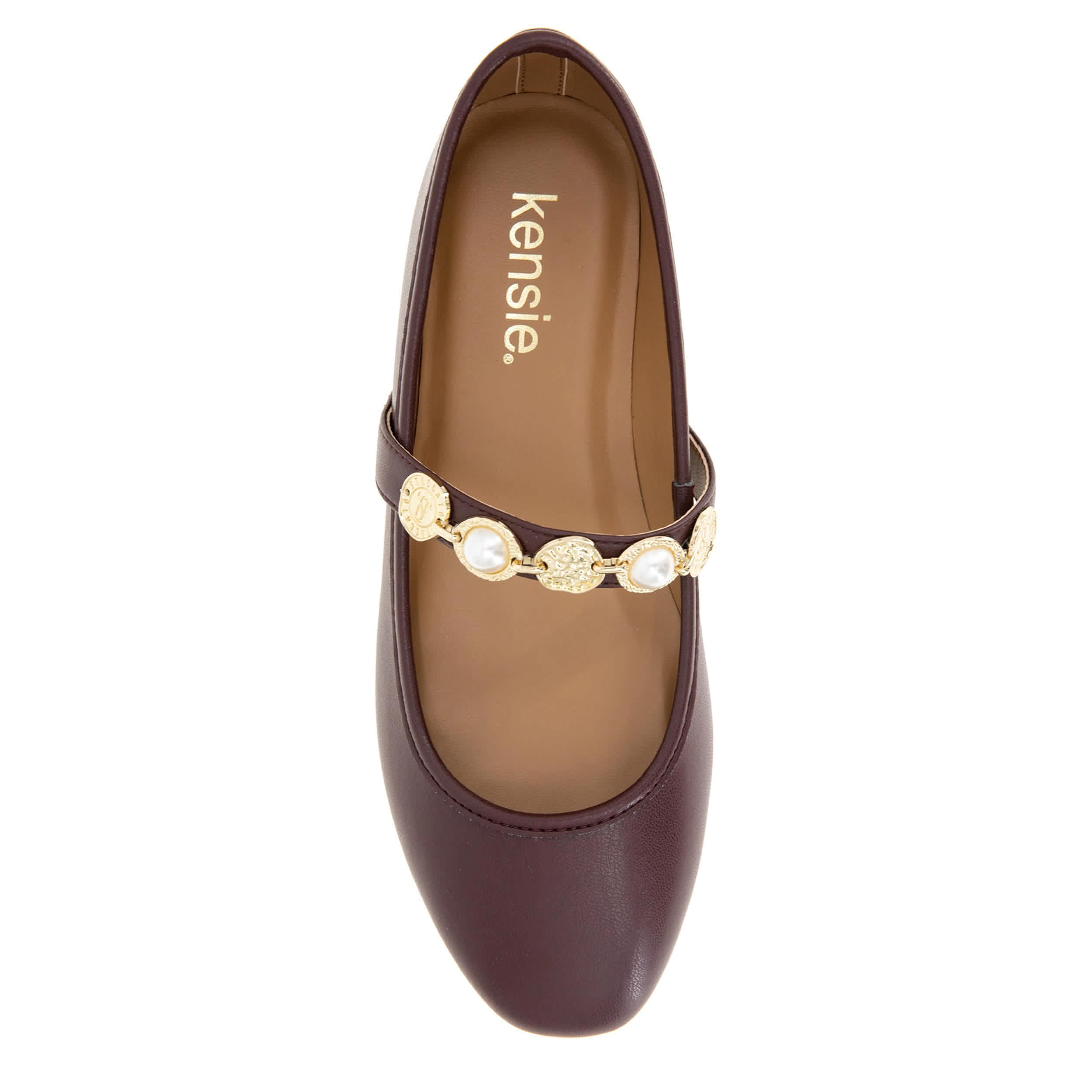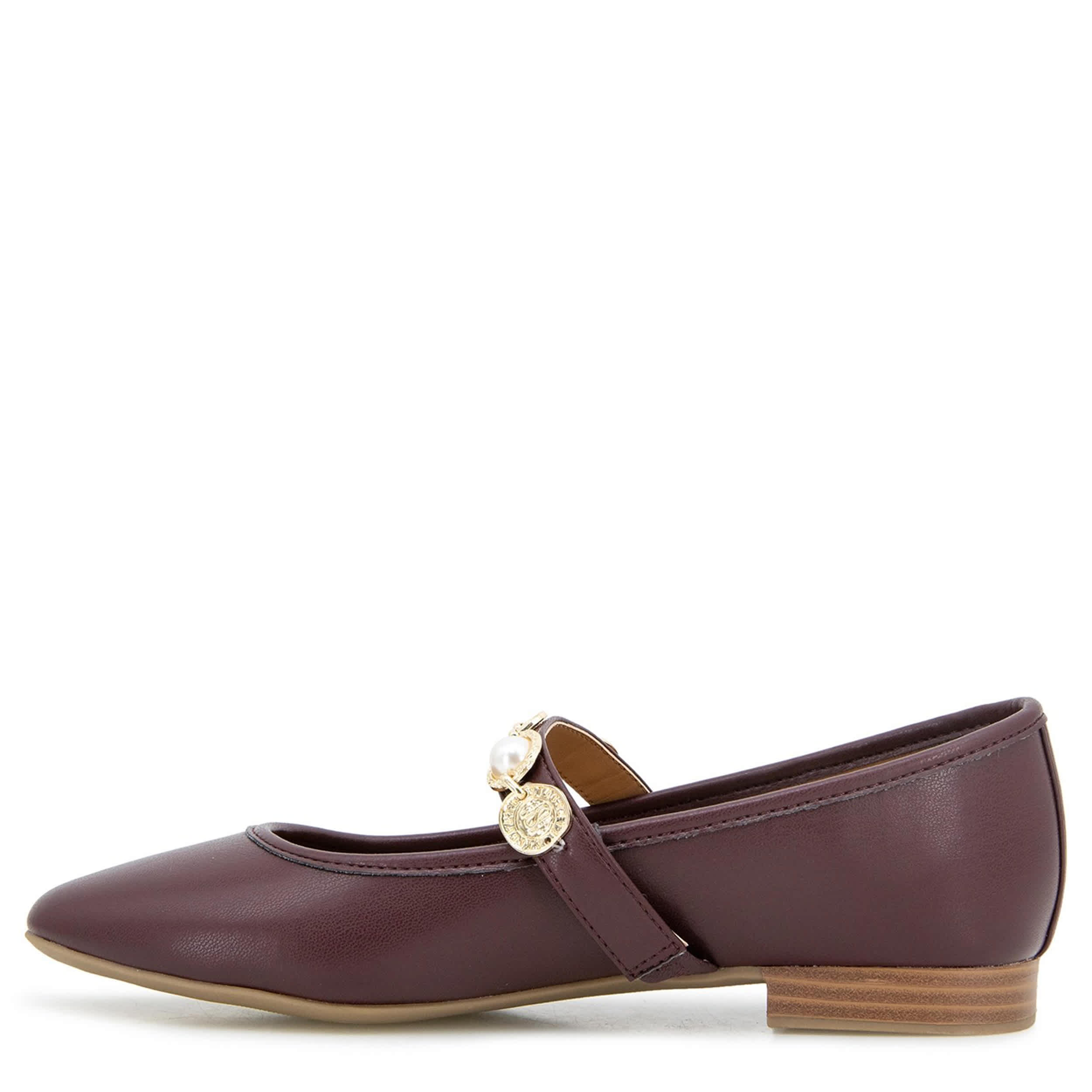 Sleek, graceful with a touch of edge is your look in the Eliane-C flat from Kensie. Featuring a faux leather upper, this ballet flat has a cross strap with metal coin accents. The padded insole and synthetic outsole ensure supported steps all day long.