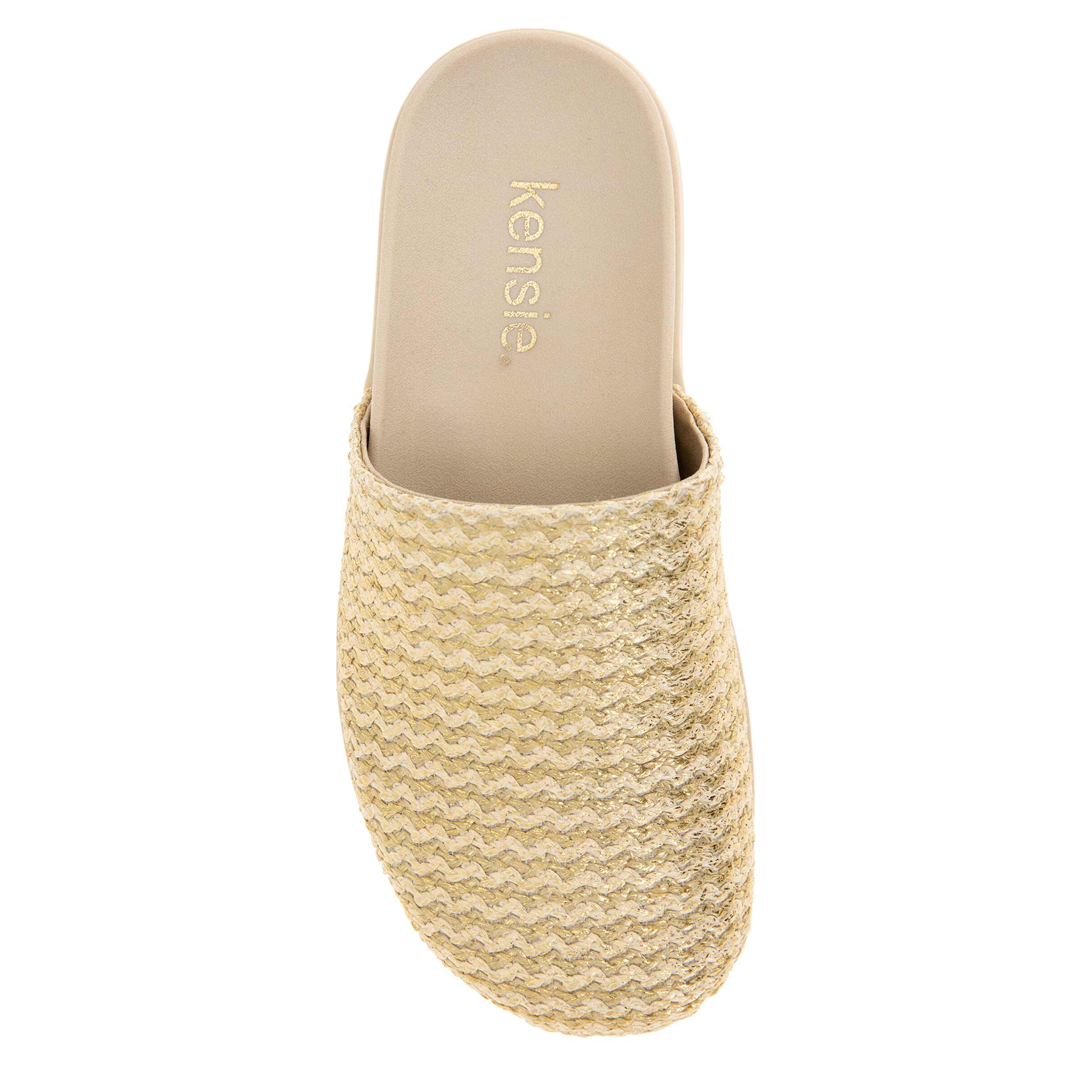 Live-in style with the Paislee women's clog from Kensie. Featuring a lightweight upper with a simple design, this woven shoe works around the house and for quick errands. The footbed cradles your foot, while the outsole offers durability.