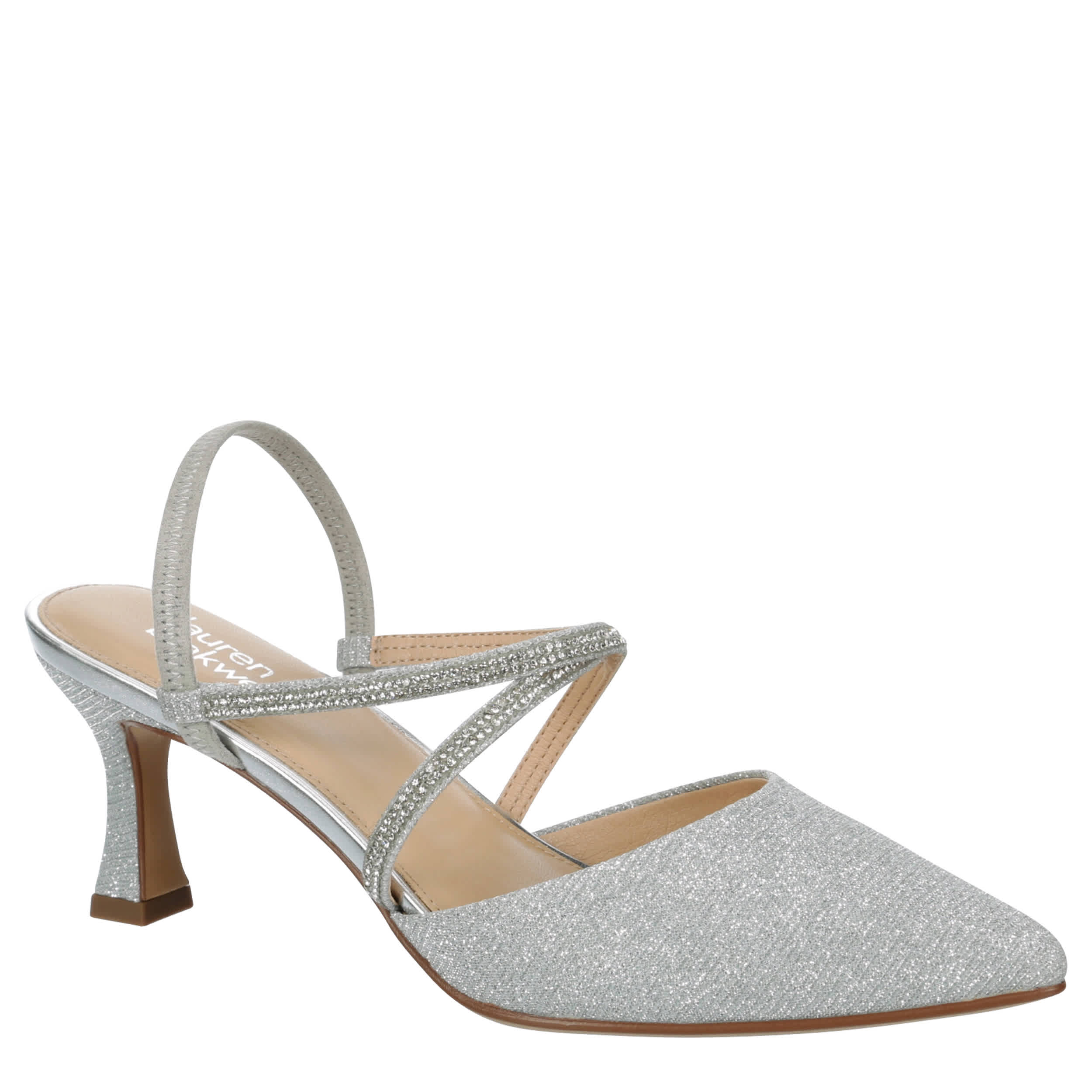 Easily take your look from day to night in the Bea women's pump from Lauren Blakwell. With a glitter upper featuring rhinestones for extra flair, these ankle strap pumps are great for work and going out with friends. The lightly padded insole soothes your foot while the 2½" heel provides just enough lift.