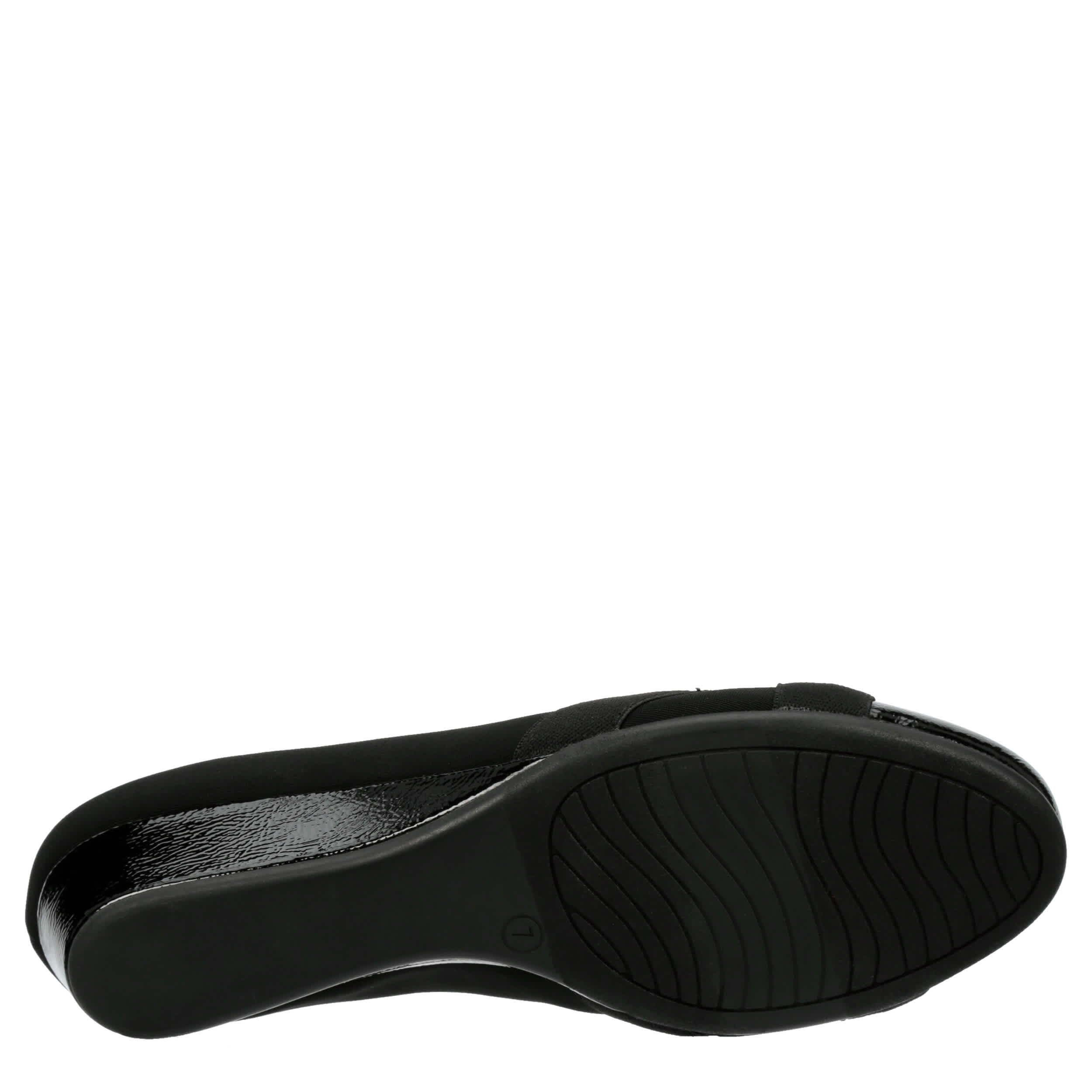 Dress up the office in the Lauren Blakwell Marlowe pump. Featuring a textile upper with a patent leather cap toe and elastic cross straps, this pump does more than just casual. The footbed soothes your foot, while the wedge heel adds just enough lift.
