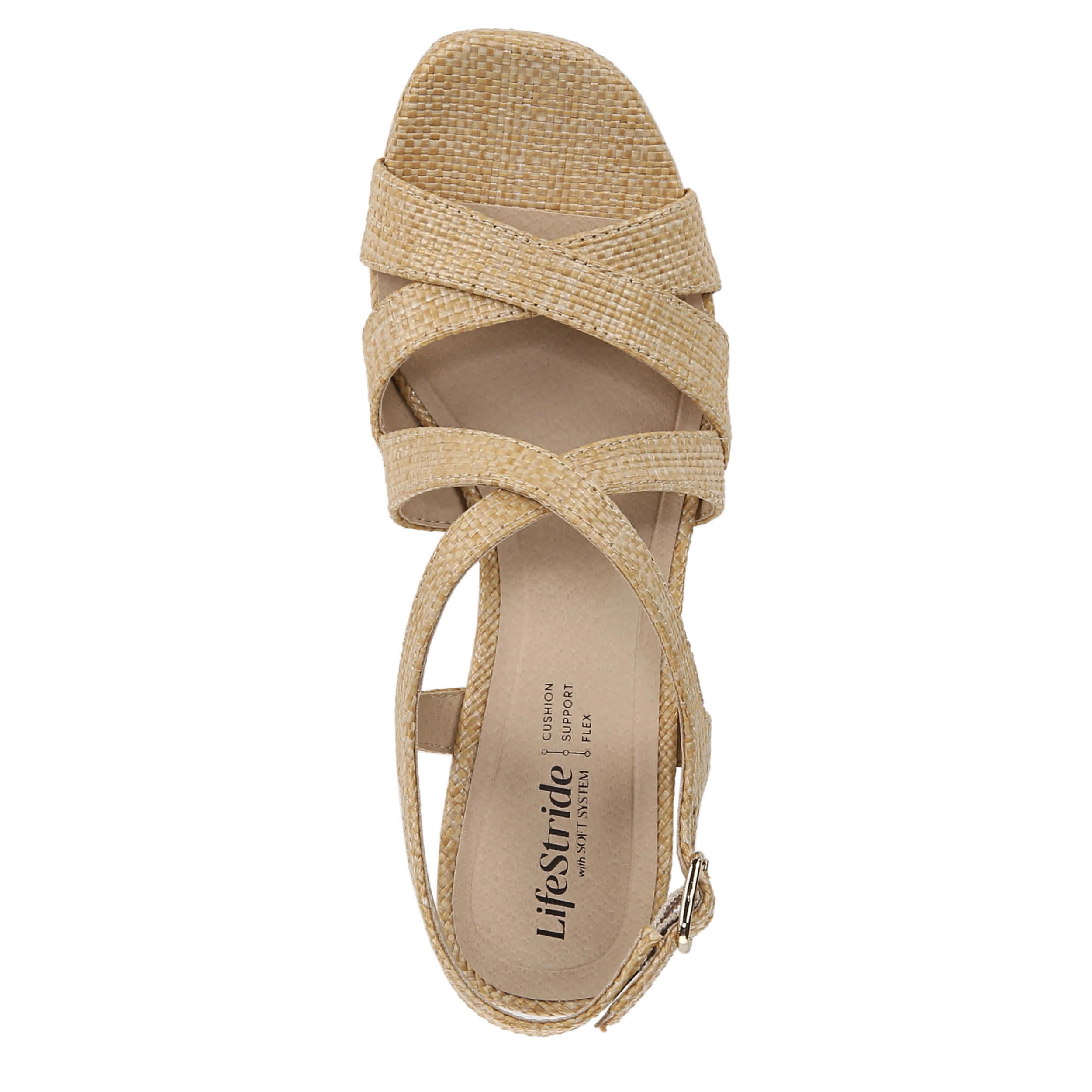Elevate your style with the LifeStride Adriana platform sandal. Made with a faux leather upper in a crisscross strap design, this shoe has a square open toe and chunky block heel to keep you on trend. The Soft System® foam footbed comforts your steps with exceptional cushioning and flexibility.