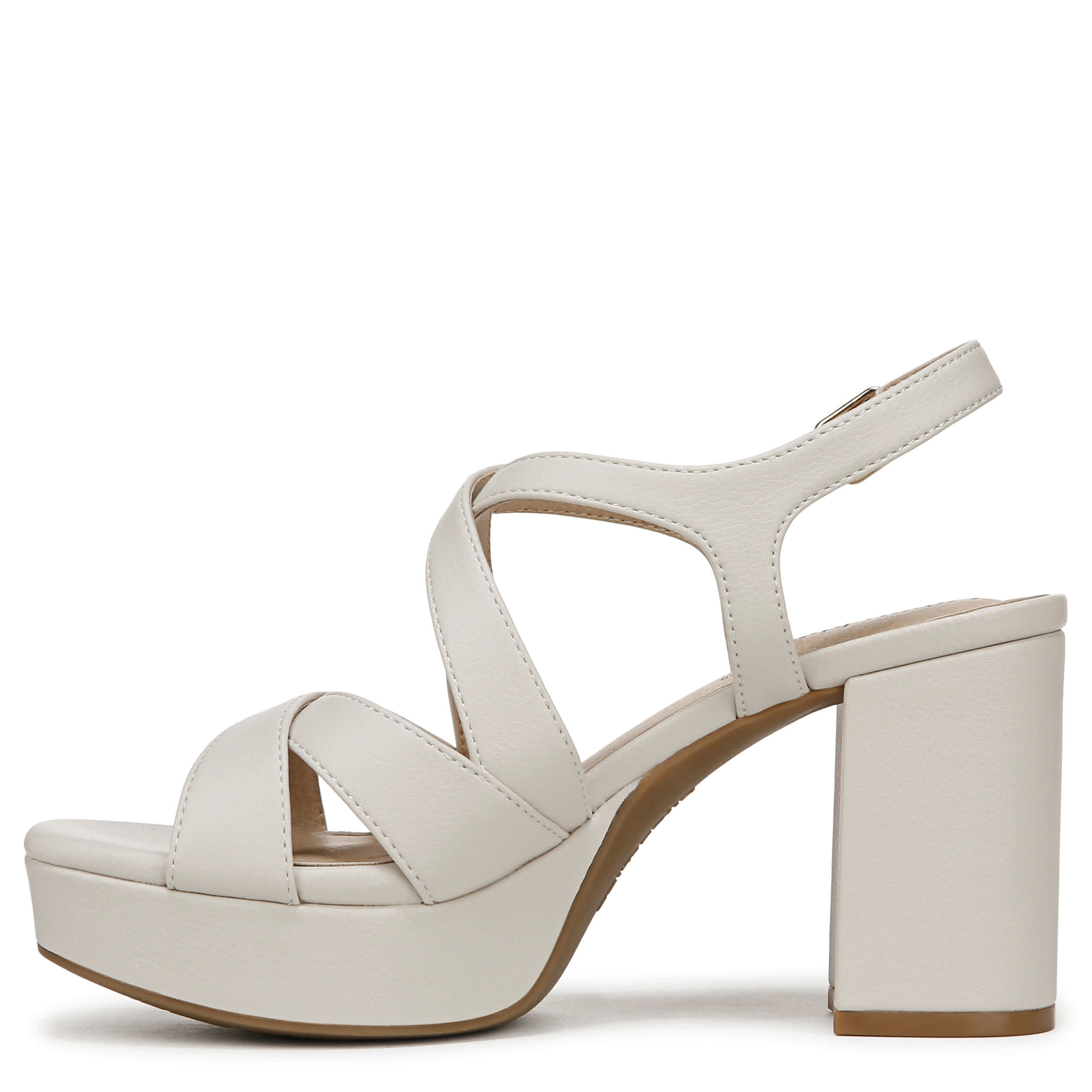 Elevate your style with the LifeStride Adriana platform sandal. Made with a faux leather upper in a crisscross strap design, this shoe has a square open toe and chunky block heel to keep you on trend. The Soft System® foam footbed comforts your steps with exceptional cushioning and flexibility.