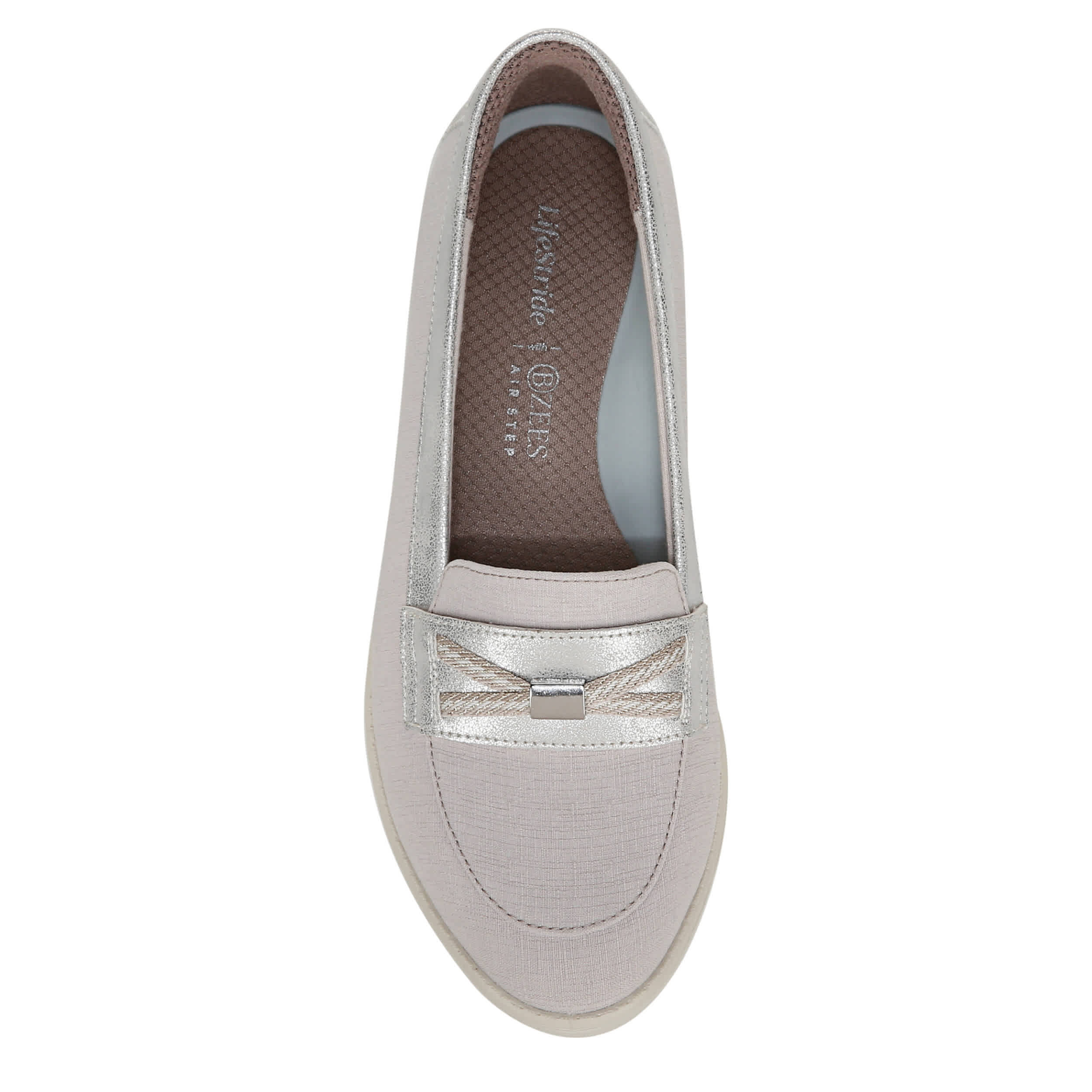 Jump on the style express with the LifeStride All Aboard loafer. Featuring a stretch fabric upper with a metallic accent, this slip-on is perfect for land or the lake. Padded collar, heel, and SoCush arch support means cushioning in all the right places.