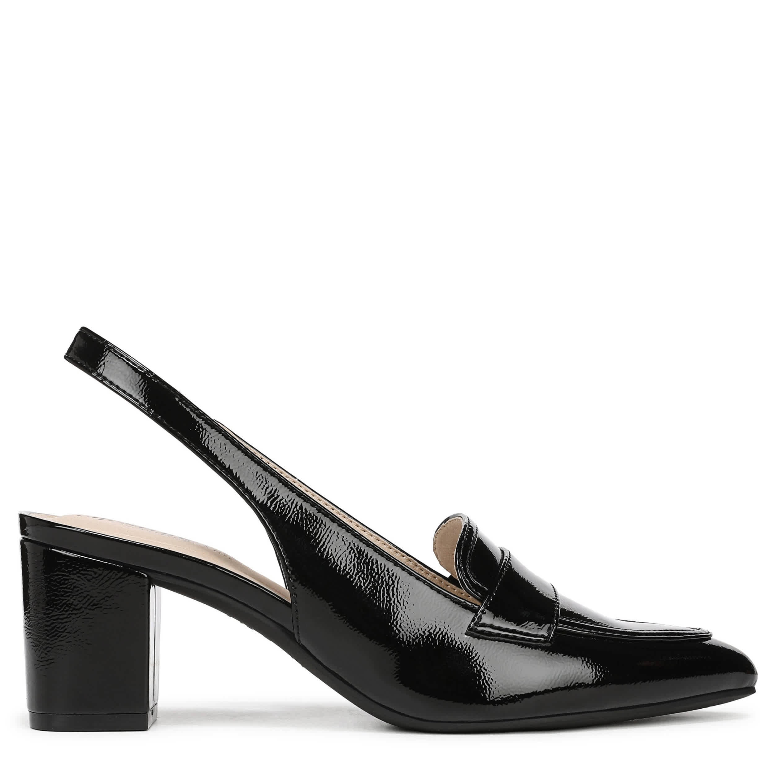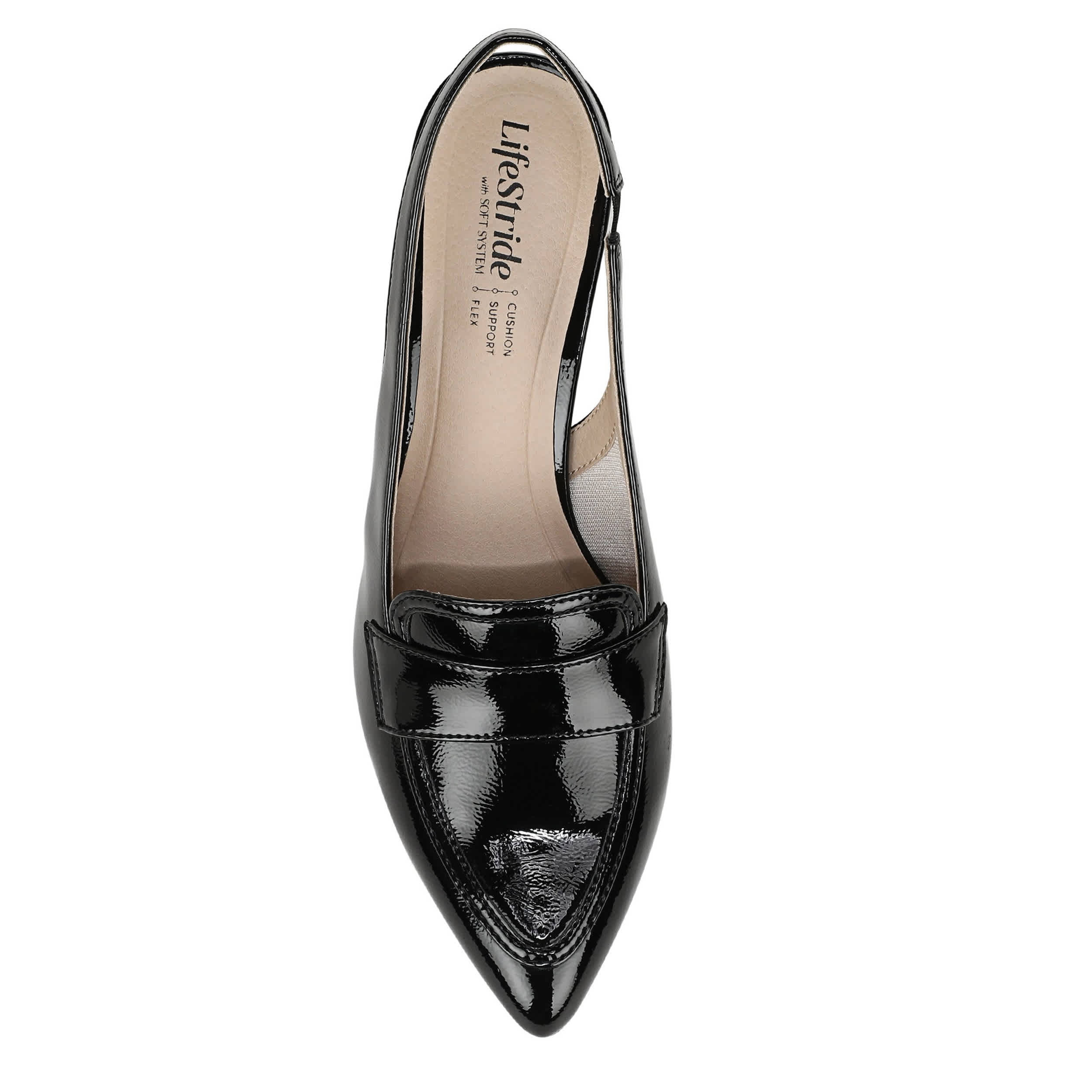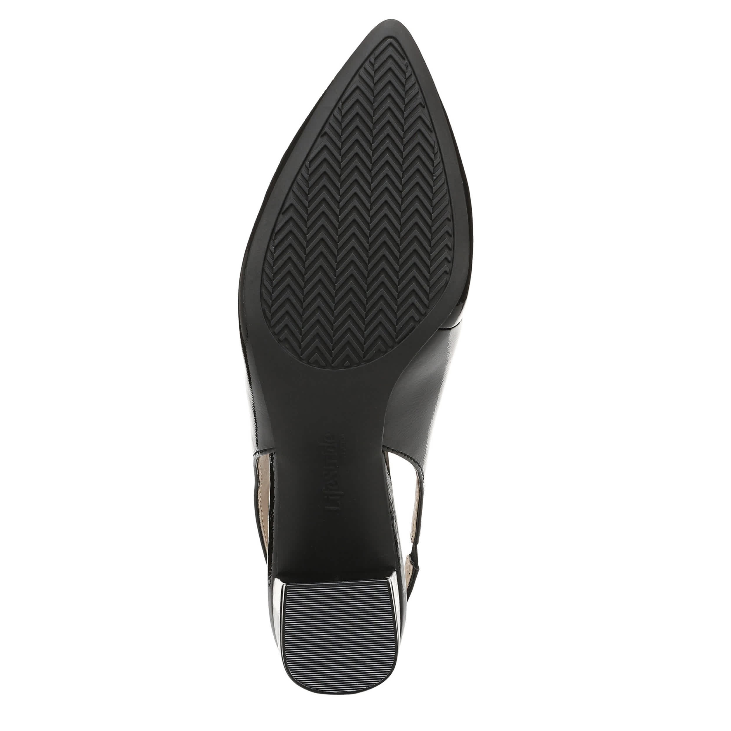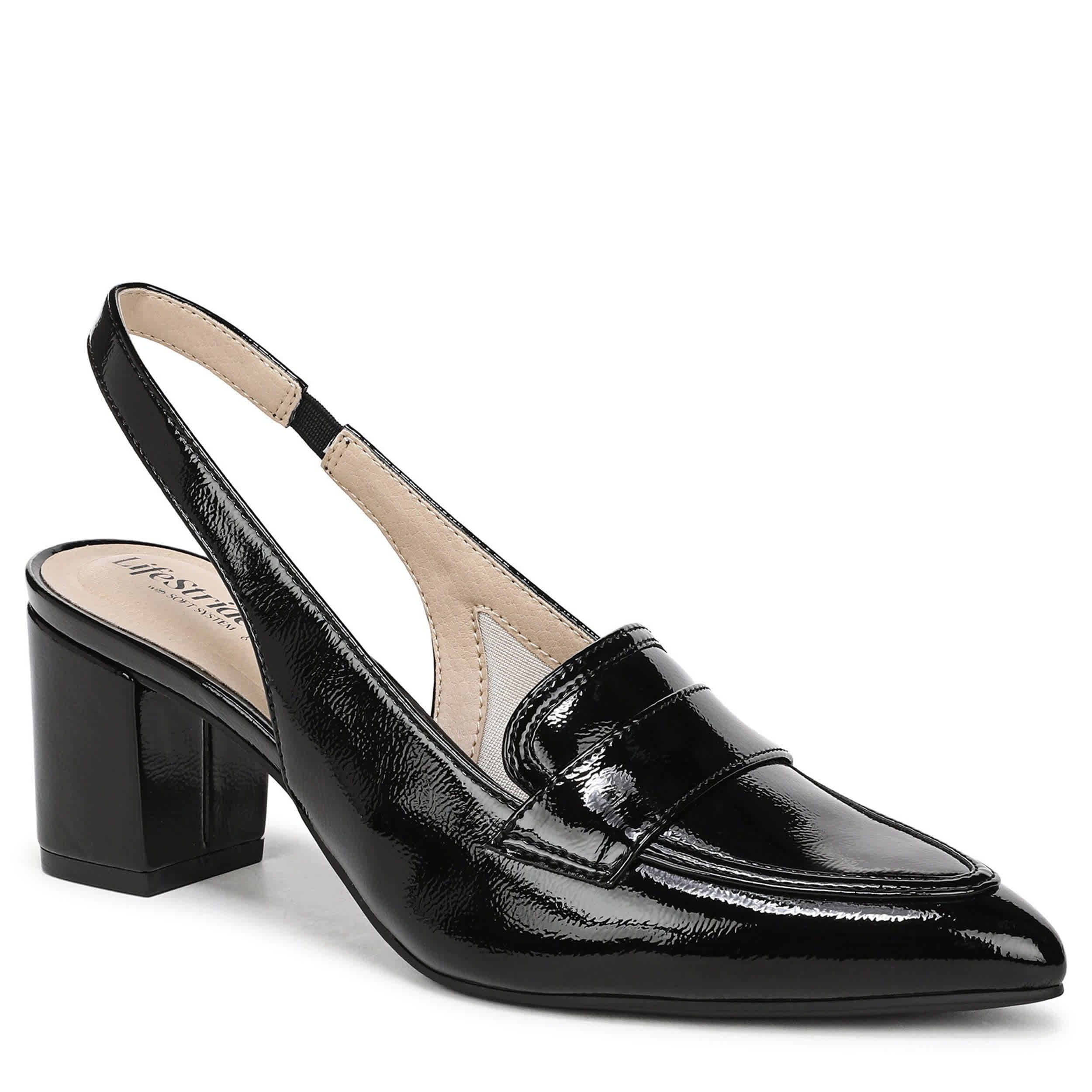 Tailor your look to perfection in the Angel women's pump from LifeStride. With a glossy patent leather upper, this shoe has built-in stretch and a softly pointed toe. The Soft System® comfort package cushions with all-day support that works nicely with the block heel.