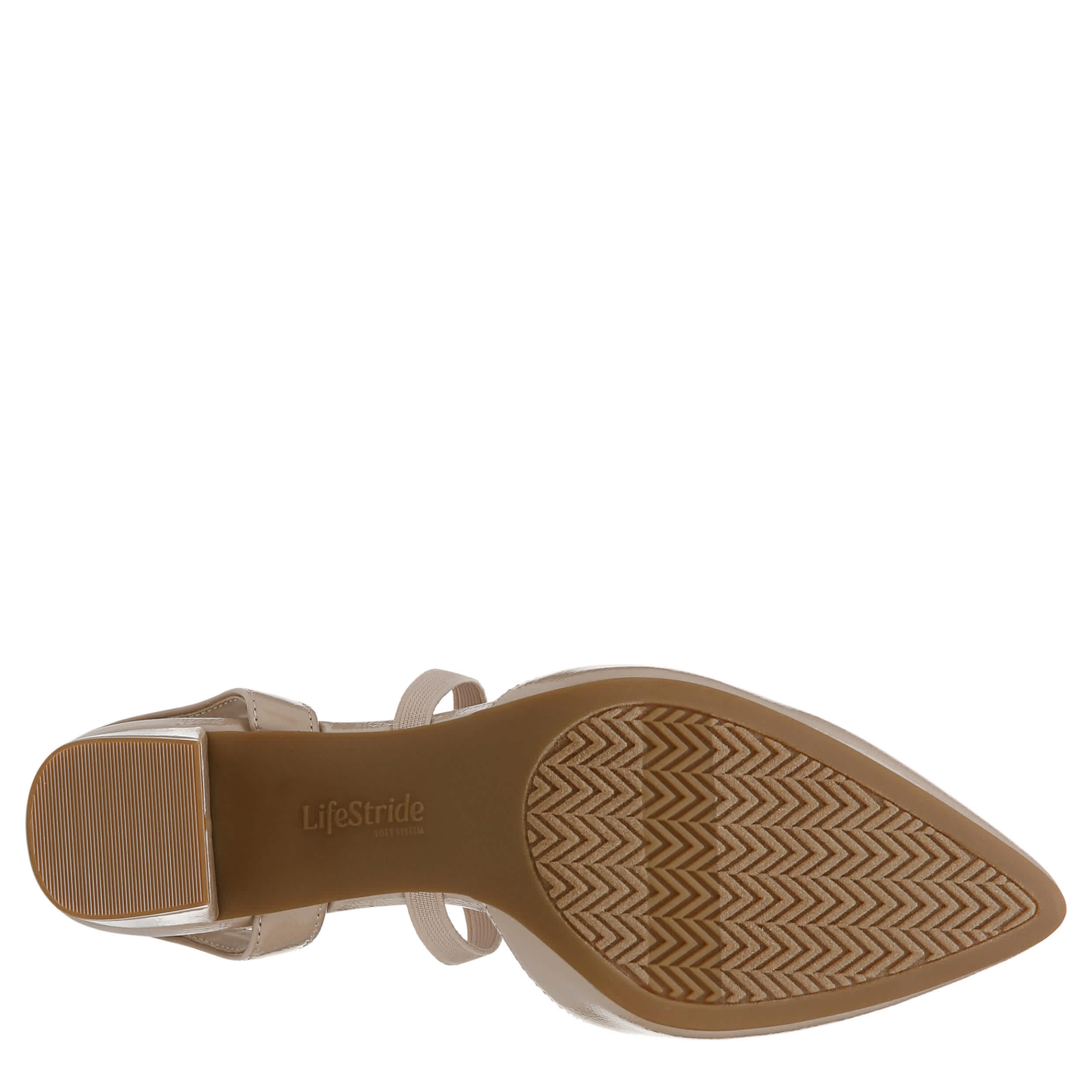 Stretch your style with the April pump from LifeStride. Featuring a softly pointed toe and stretch elastic straps for a secure fit, your classy touch remains intact. The Soft System cushioning, and traction sole provide stable comfort with every step.