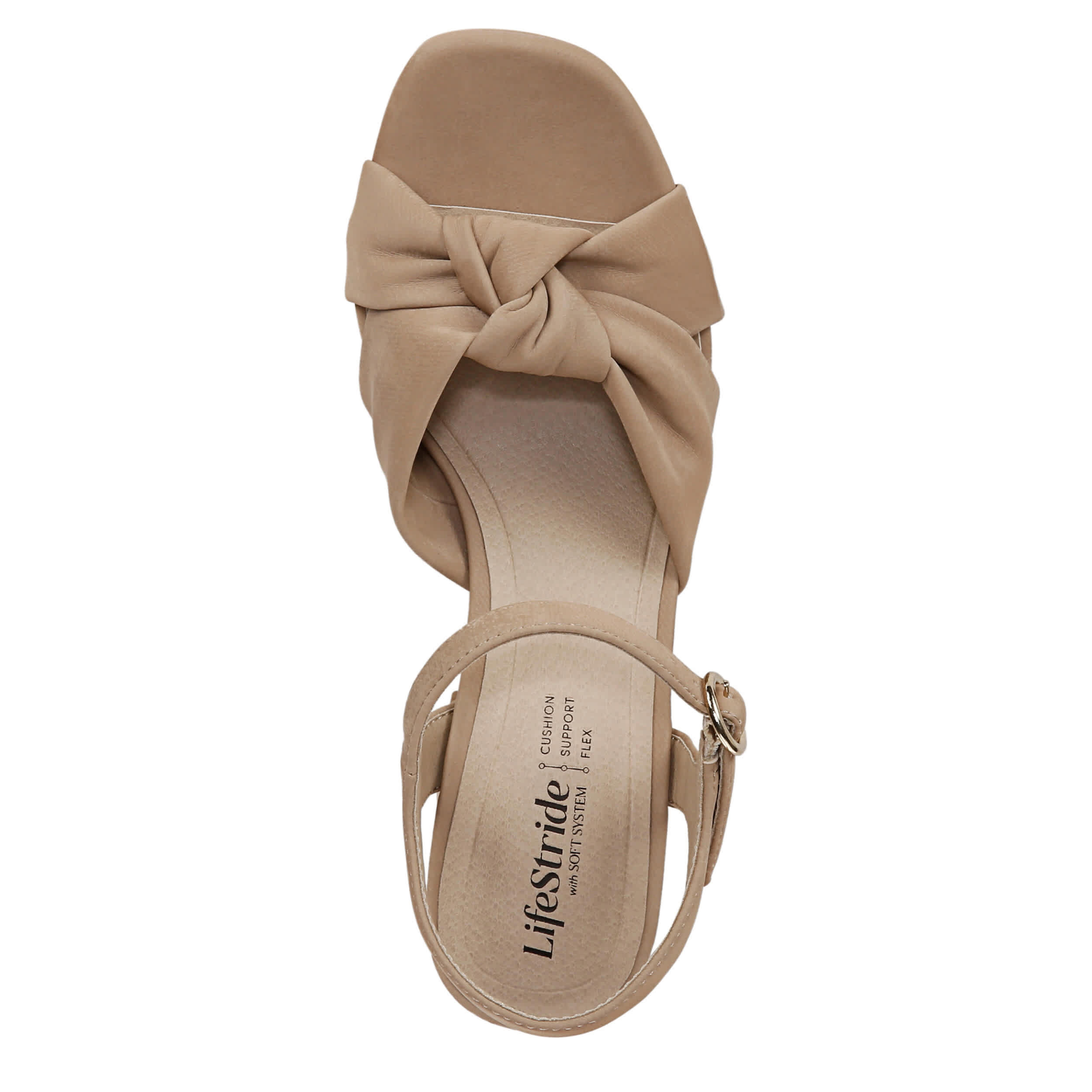 Spruce up your summertime style with the LifeStride August platform sandal. With a faux leather upper featuring a knotted bow detail, this shoe adds a trendy touch to any outfit. The Soft System® foam footbed offers exceptional cushioning and flexibility, while the platform heel gives the perfect lift.