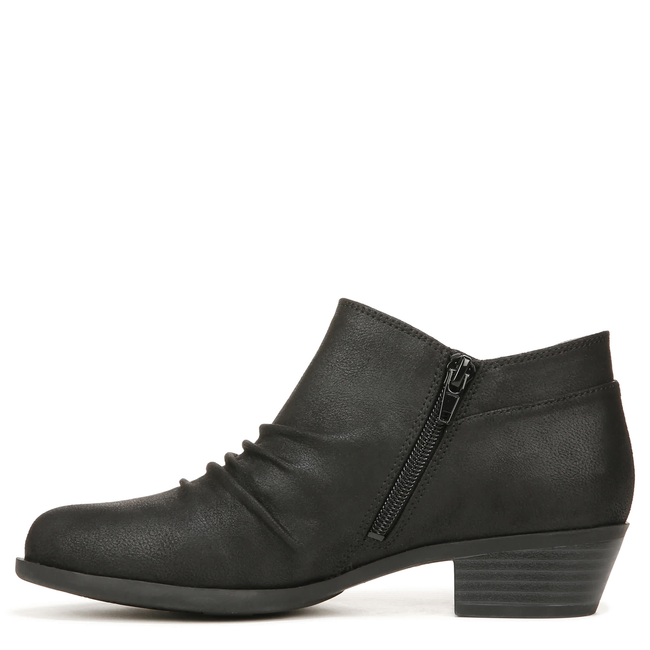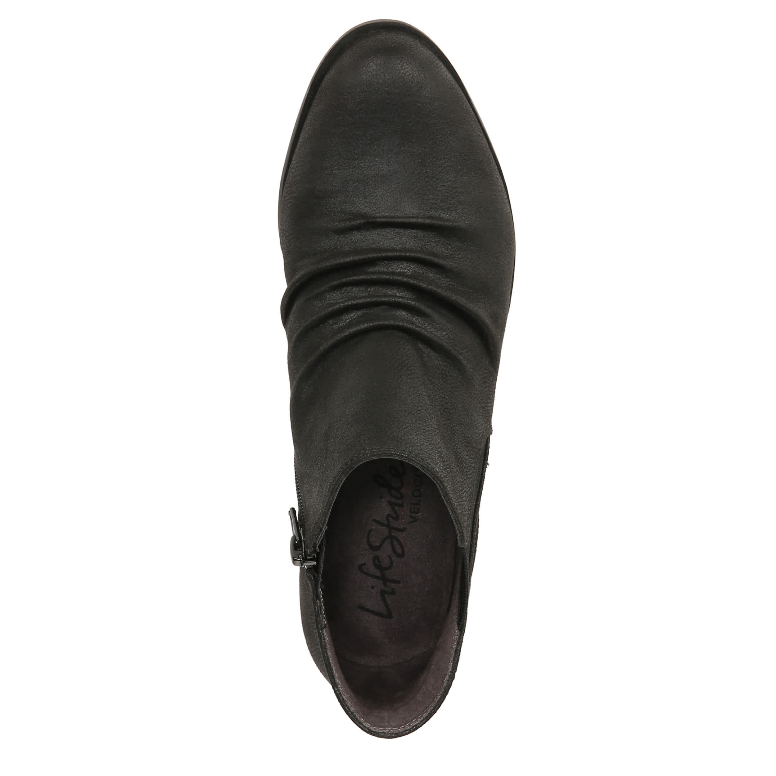 You'll want to rock this look all season long - the LifeStride Aurora women's bootie. With a faux leather upper featuring ruched detailing reminiscent ofWestern style, this inside zip ankle boot goes very well with jeans. The Soft System® comfort package has an added layer of Velocity Memory Foam®, while the 1 3/8" stacked block heel adds just enough lift.