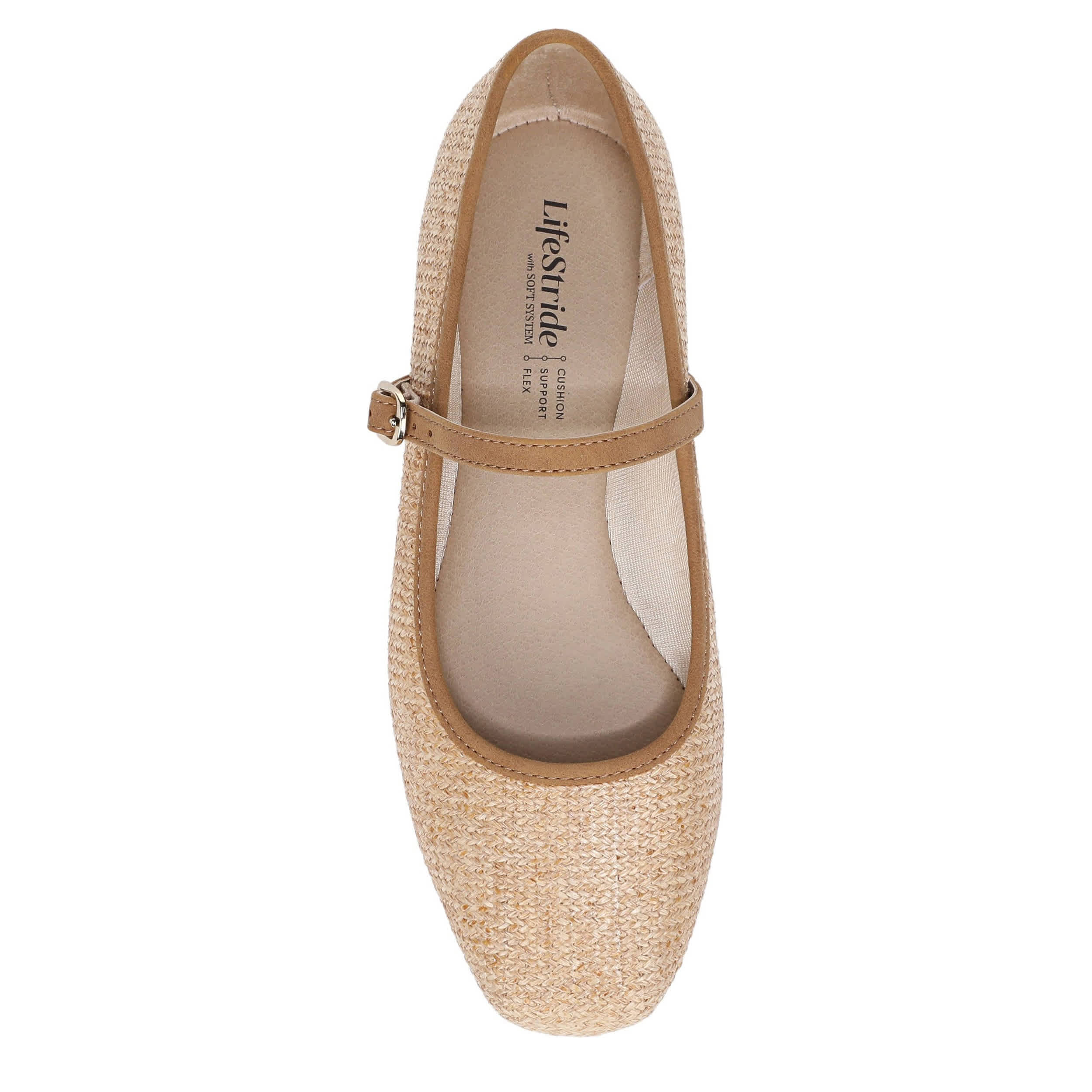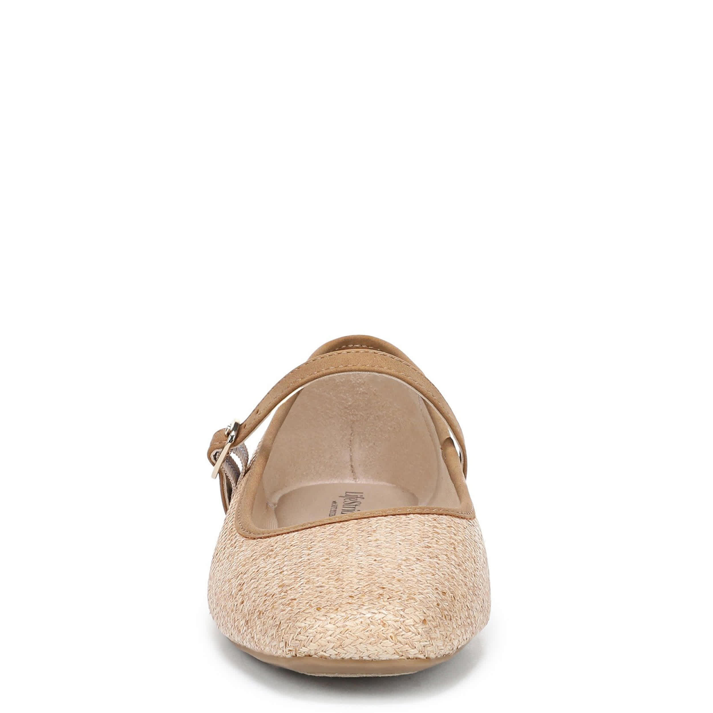Refine your look with the LifeStride Beloved 2 flat. Featuring a faux raffia upper with a faux leather trim and slim buckle strap, this Mary Jane is workday chic or weekend sharp. Soft System® cushioning works with the traction outsole for support, while adding extra stability and a lightweight feel to your steps.
