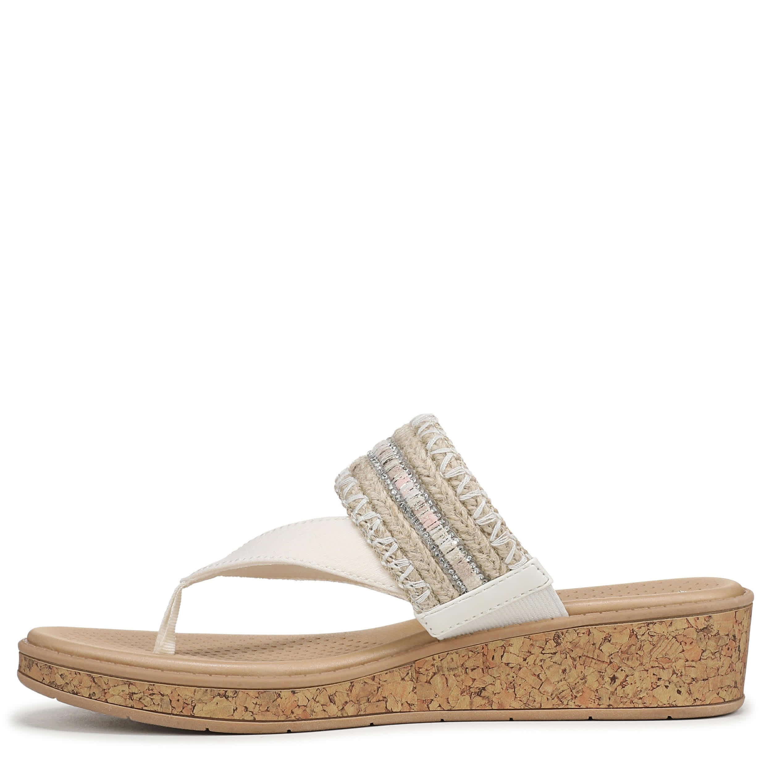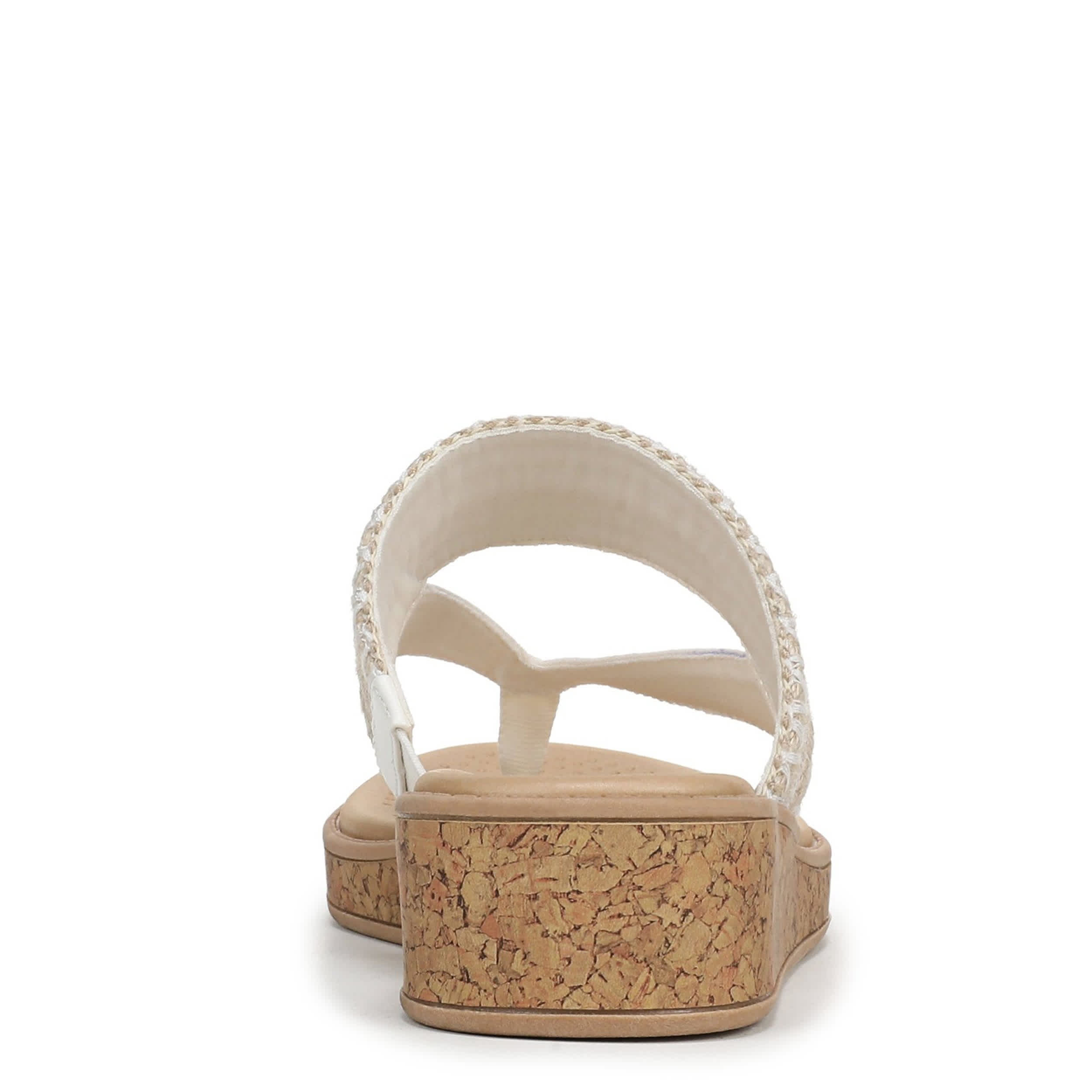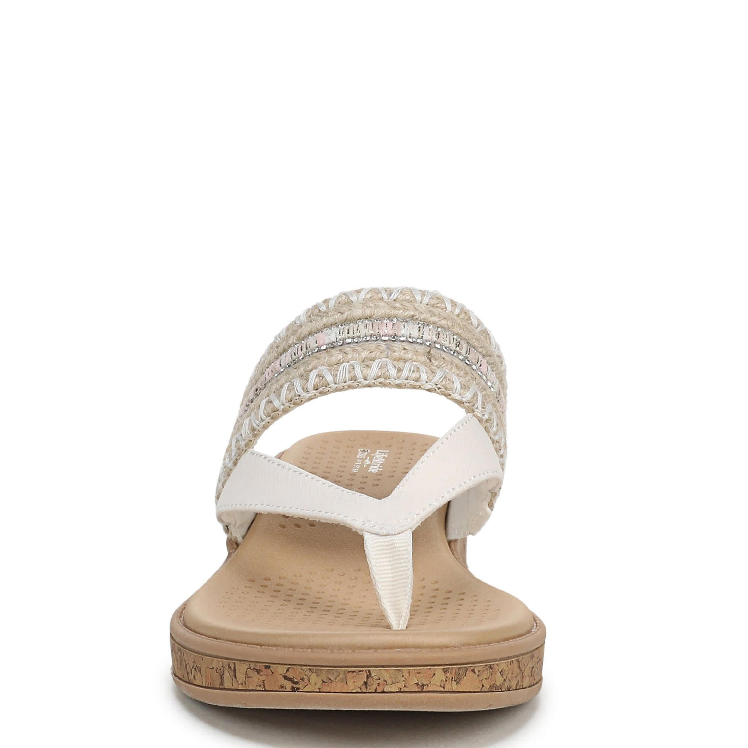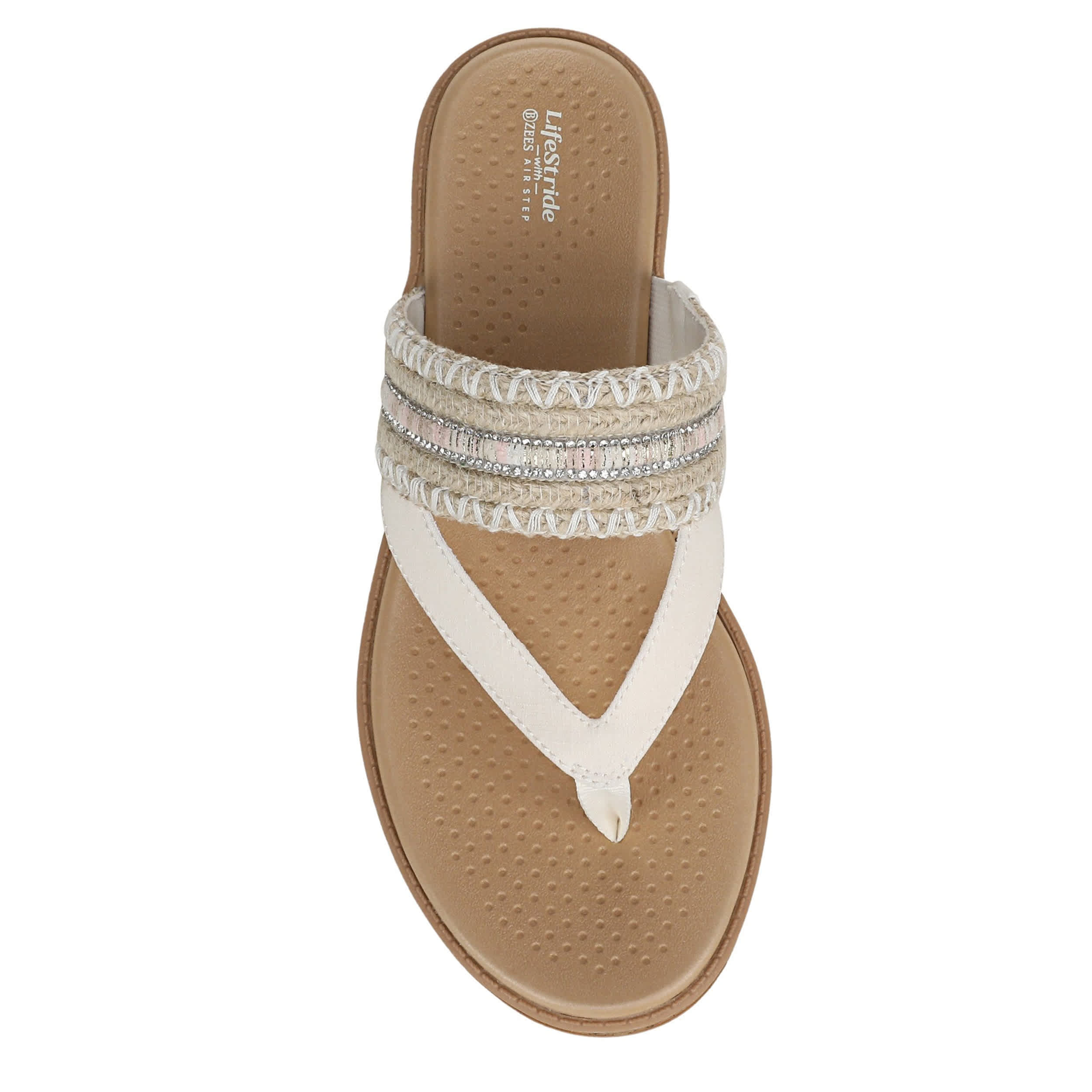 Sophisticated, yet easy, the LifeStride Birdie thong sandal is a must-have for spring. Featuring a stretch fabric upper with a braided strap and metallic accents for extra style, this thong is machine washable with anti-odor control technology for freshness. The FreeFoamâ„¢ Comfort insole offers cushy arch support, while the cork-textured wedge sole provides subtle lift.