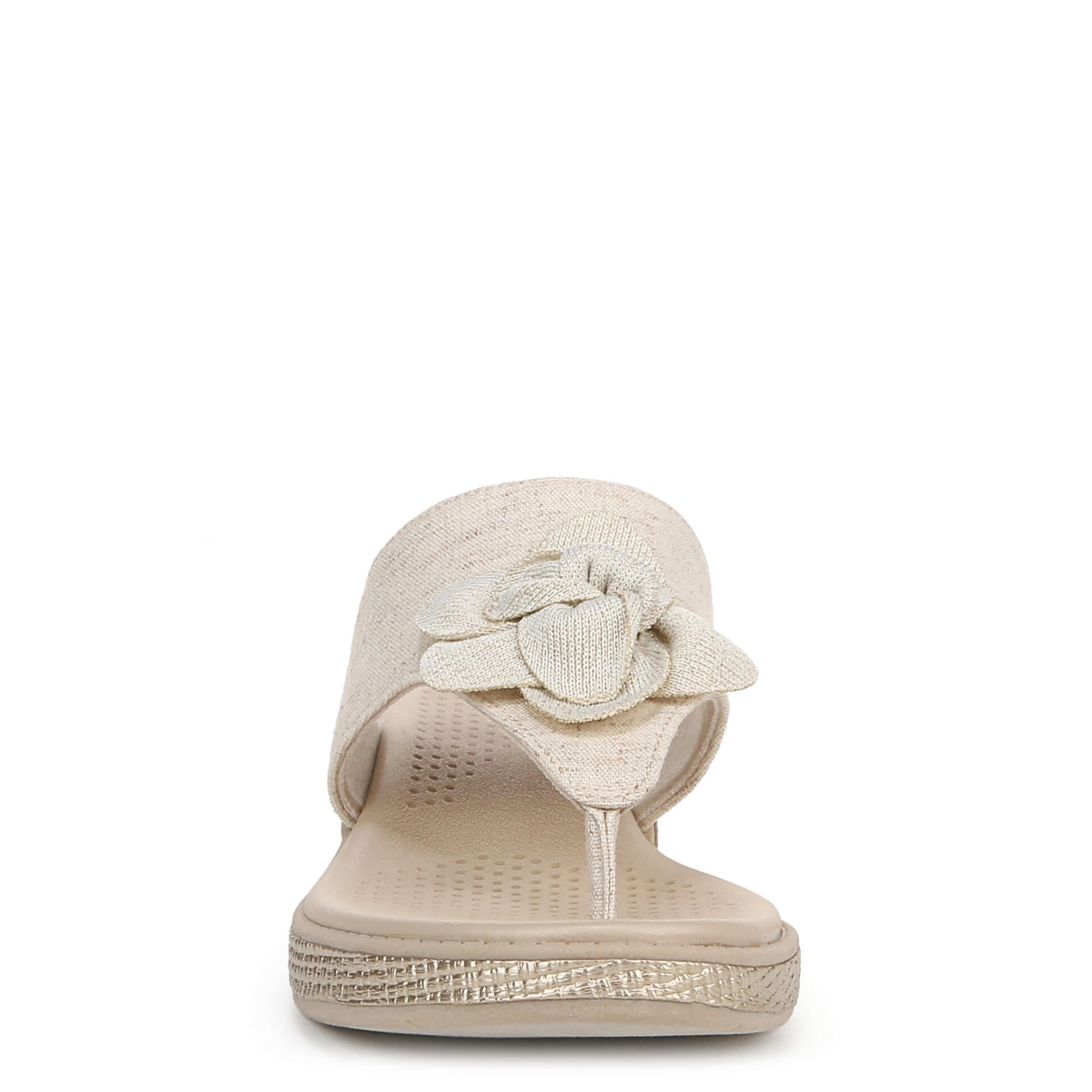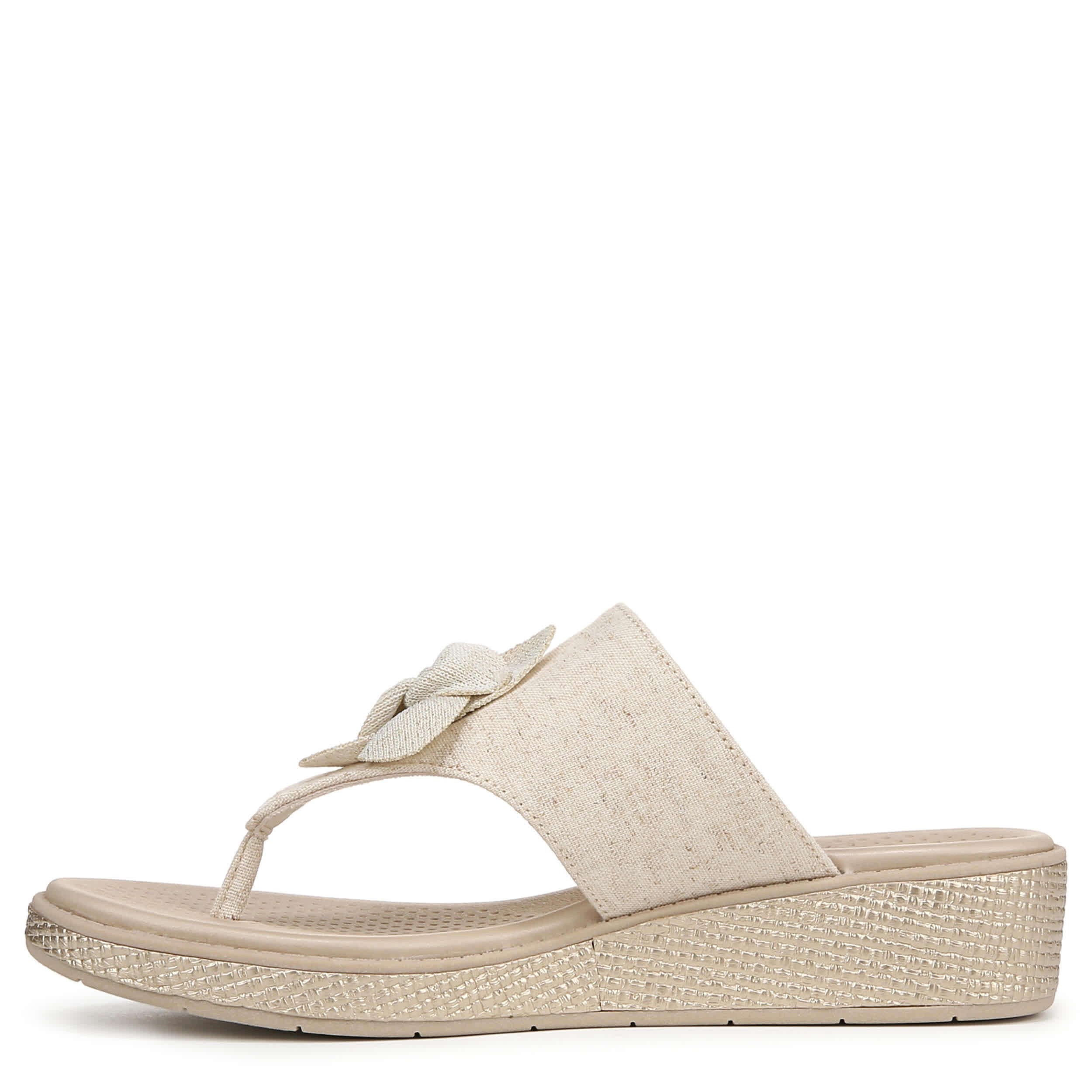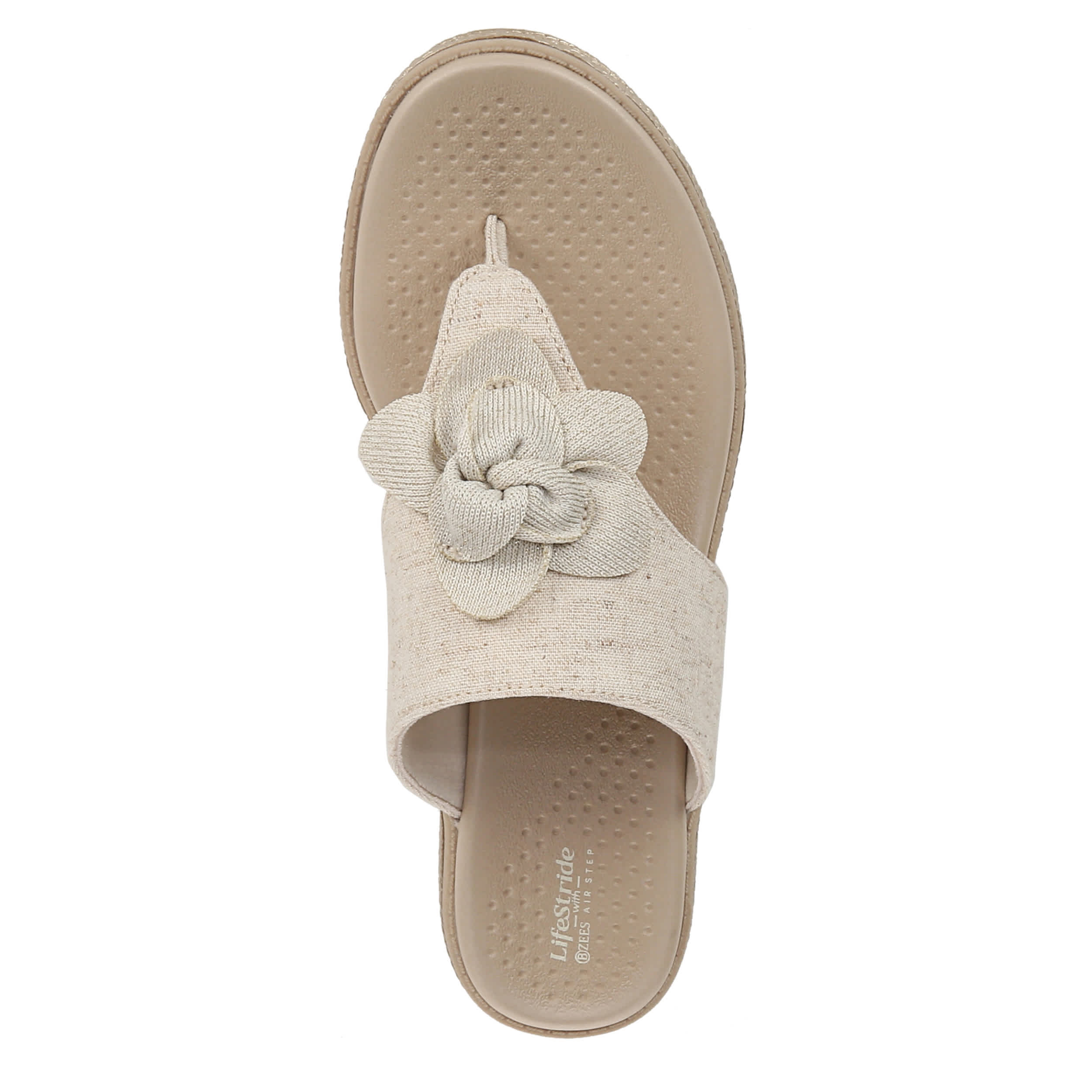 Spring into a new style with the LifeStride Bloom sandal. Featuring a fabric upper with built-in stretch, this shoe has a T-toe strap design and floral accent, great for pairing with your favorite spring dress. The FreeFoamâ„¢ Comfort insole offers exceptional cushioning for all day comfort, while the traction outsole provides good grip. The woven heel gives the perfect finishing touch.