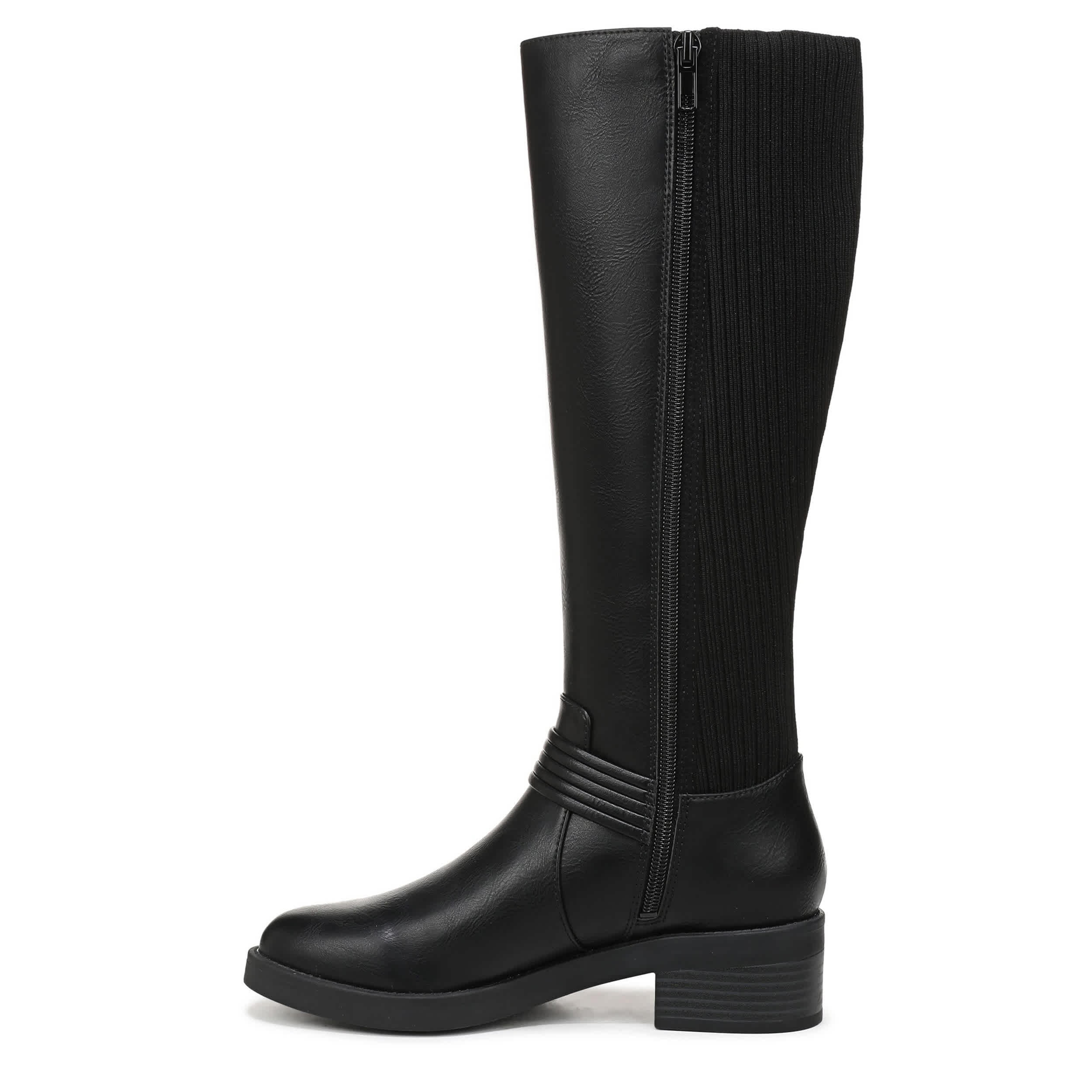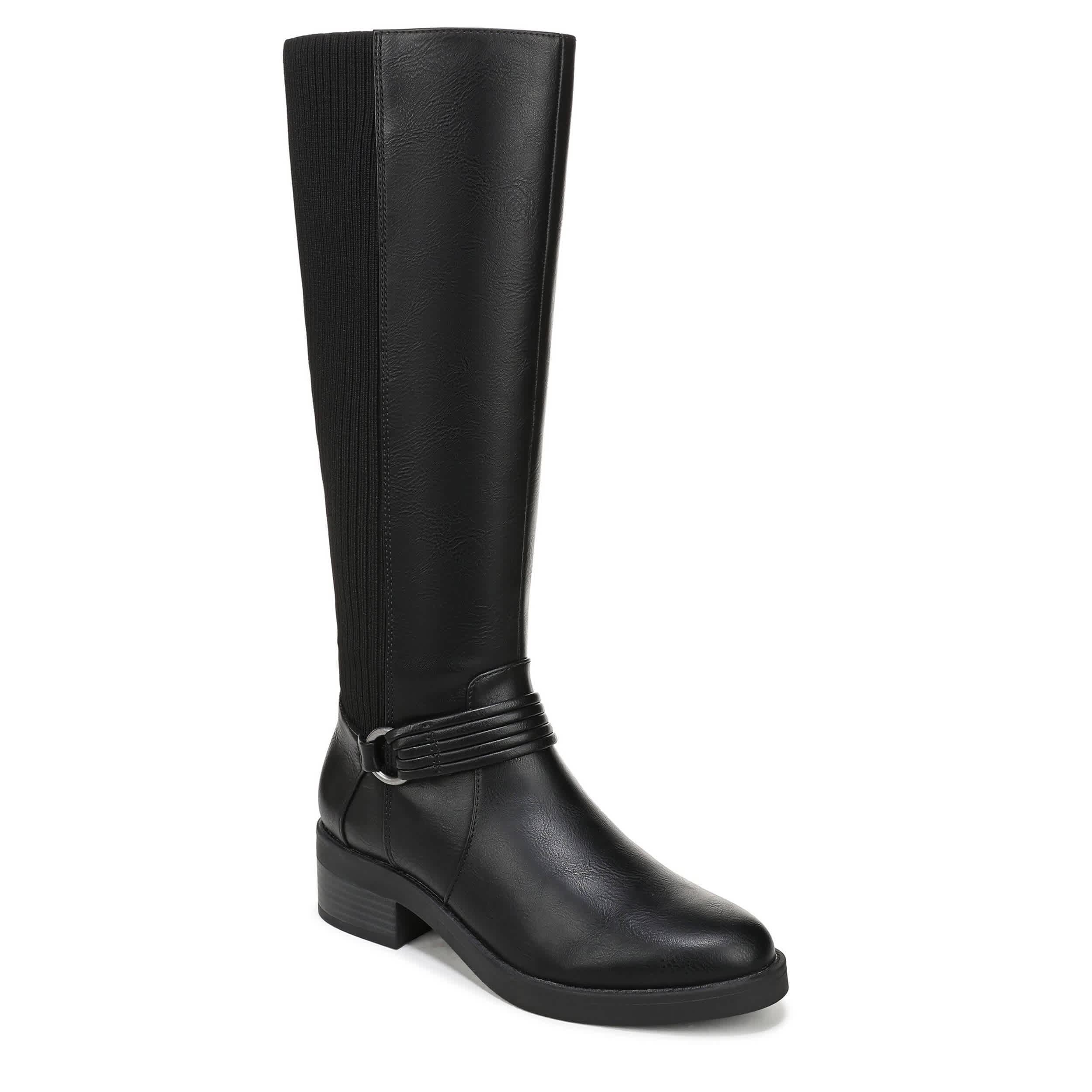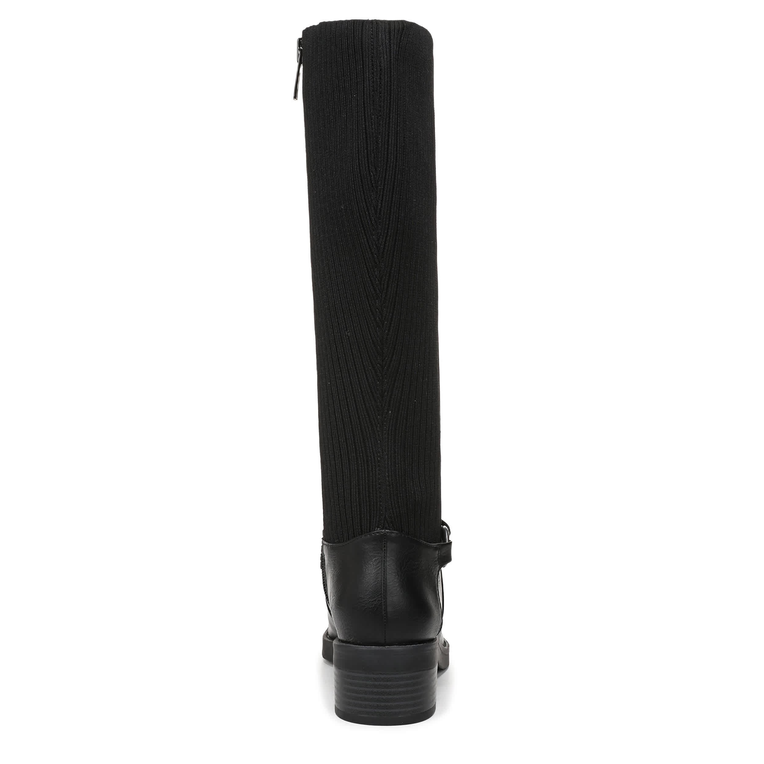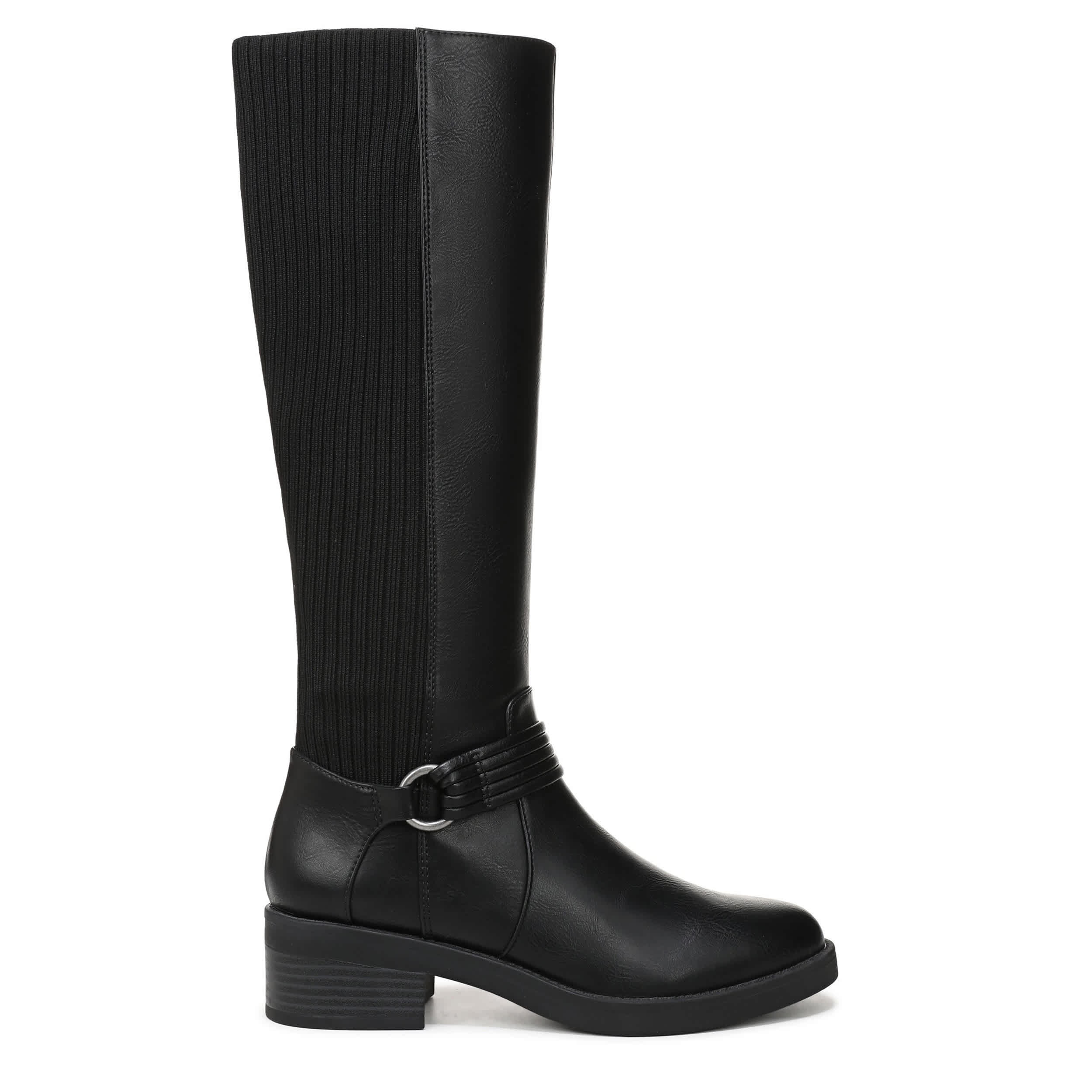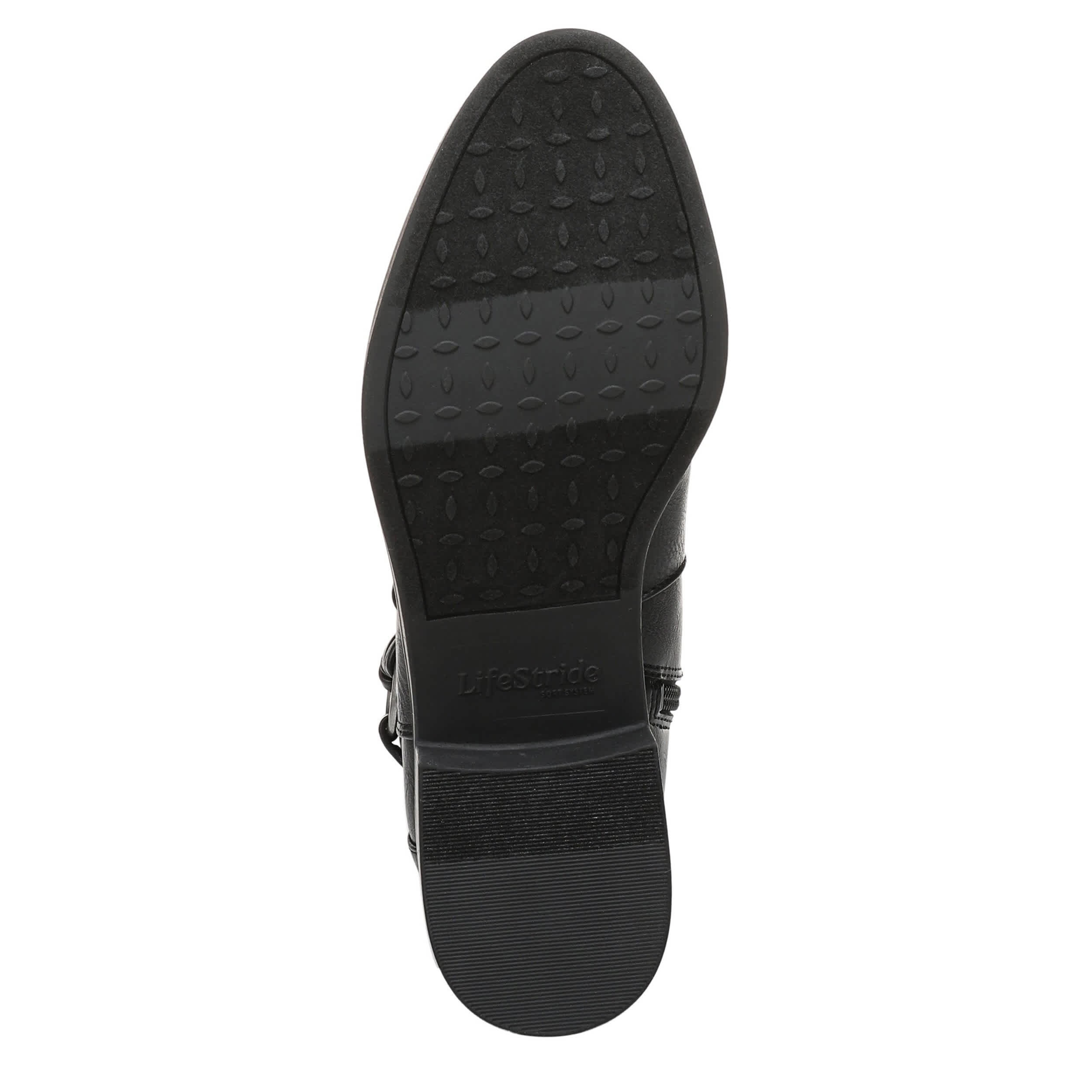 Built-in stretch makes the Brighton Wide Calf tall boot from LifeStride a must-have. Featuring a stretch knit back panel along with a wraparound harness strap for extra style, this versatile boot is a great addition to the closet. The Soft System® comfort package ensures all-day support, while the heel offers just enough lift.