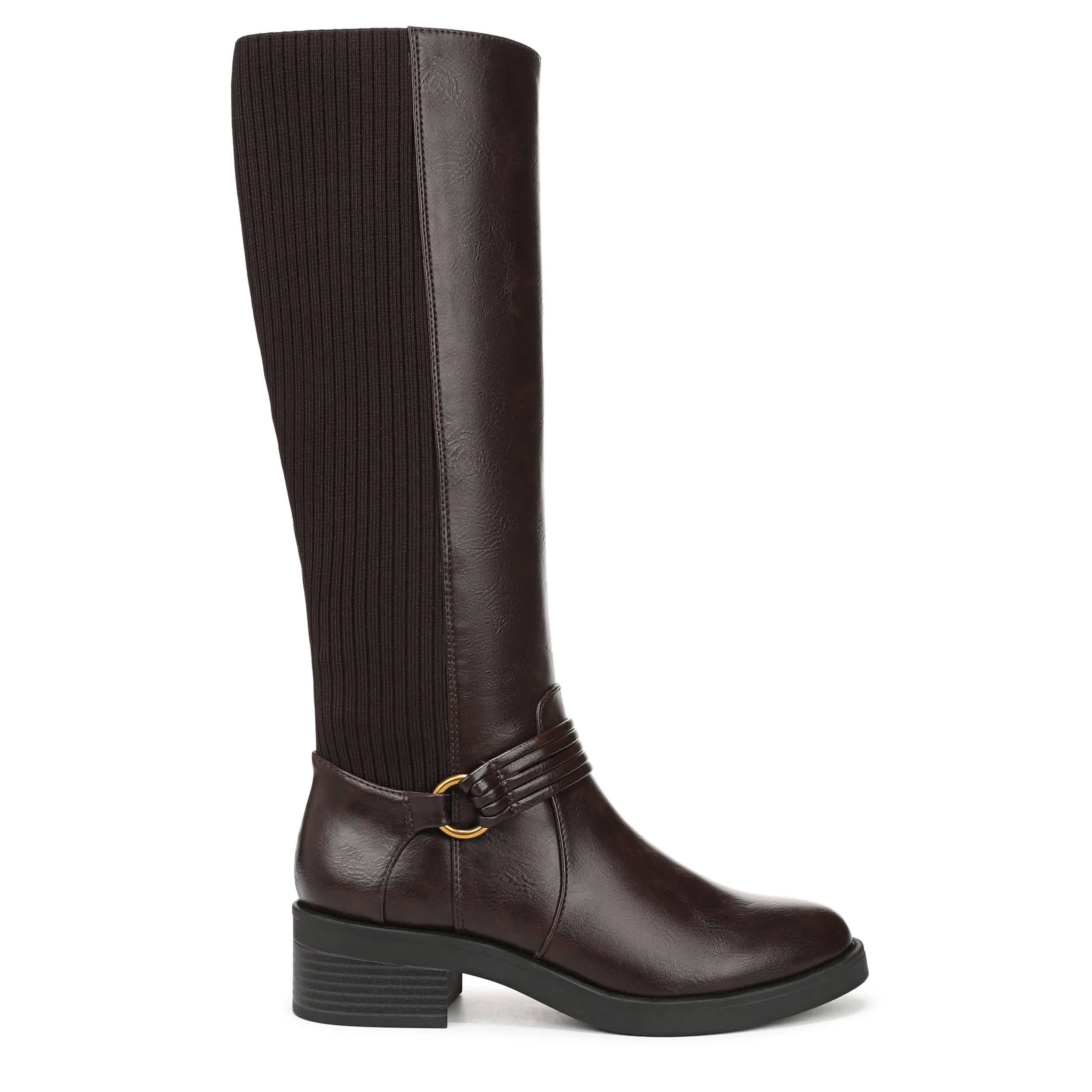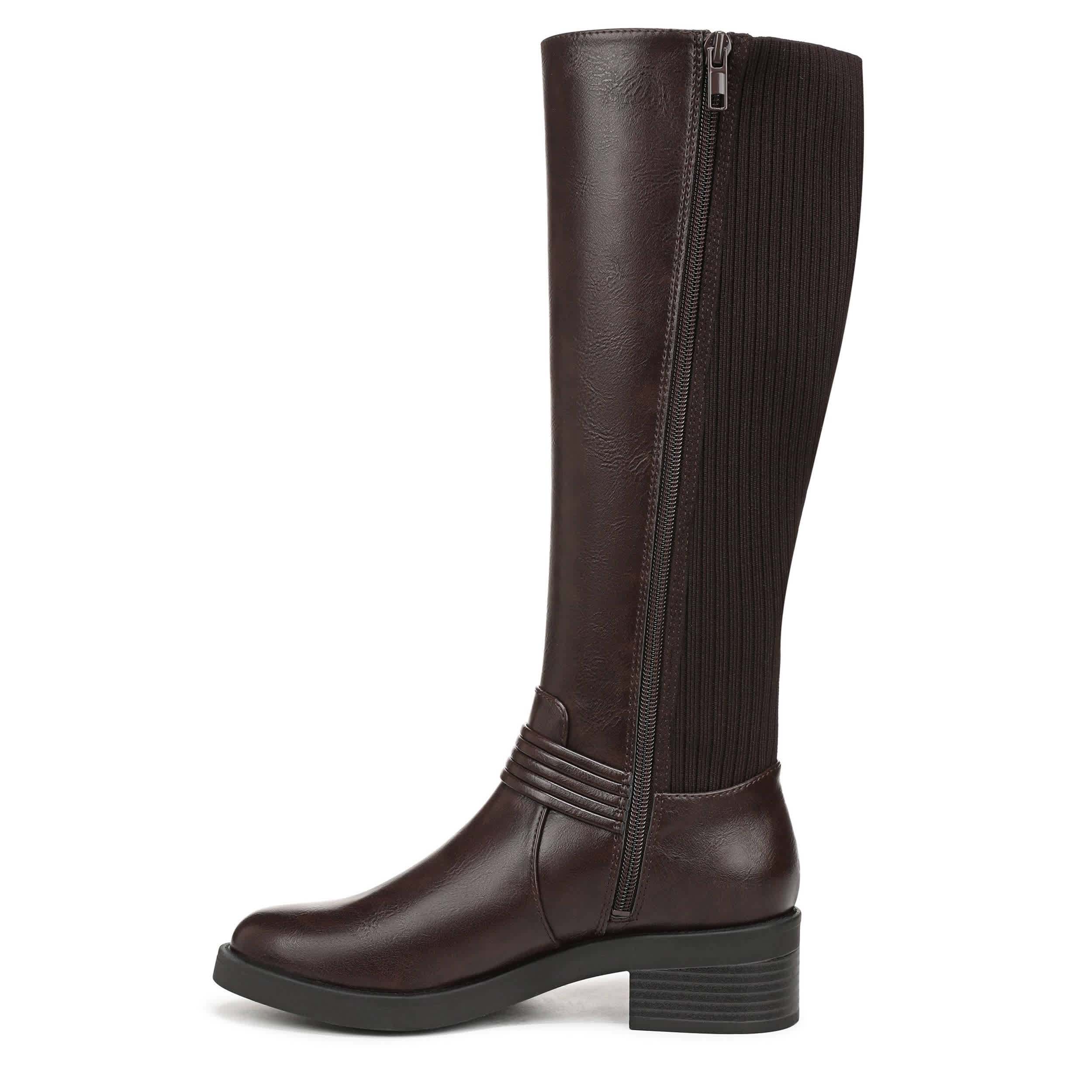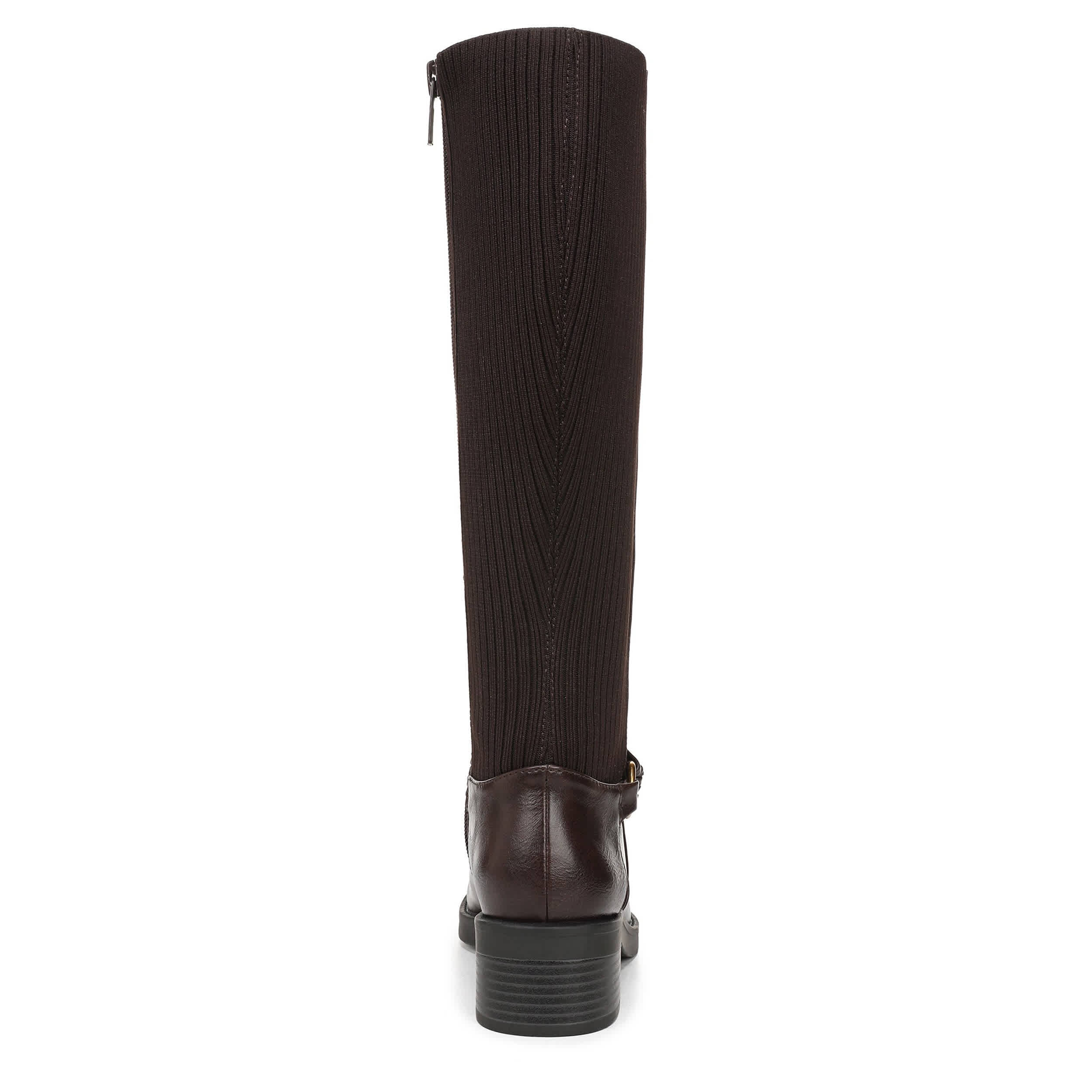 Built-in stretch makes the Brighton Wide Calf tall boot from LifeStride a must-have. Featuring a stretch knit back panel along with a wraparound harness strap for extra style, this versatile boot is a great addition to the closet. The Soft System® comfort package ensures all-day support, while the heel offers just enough lift.