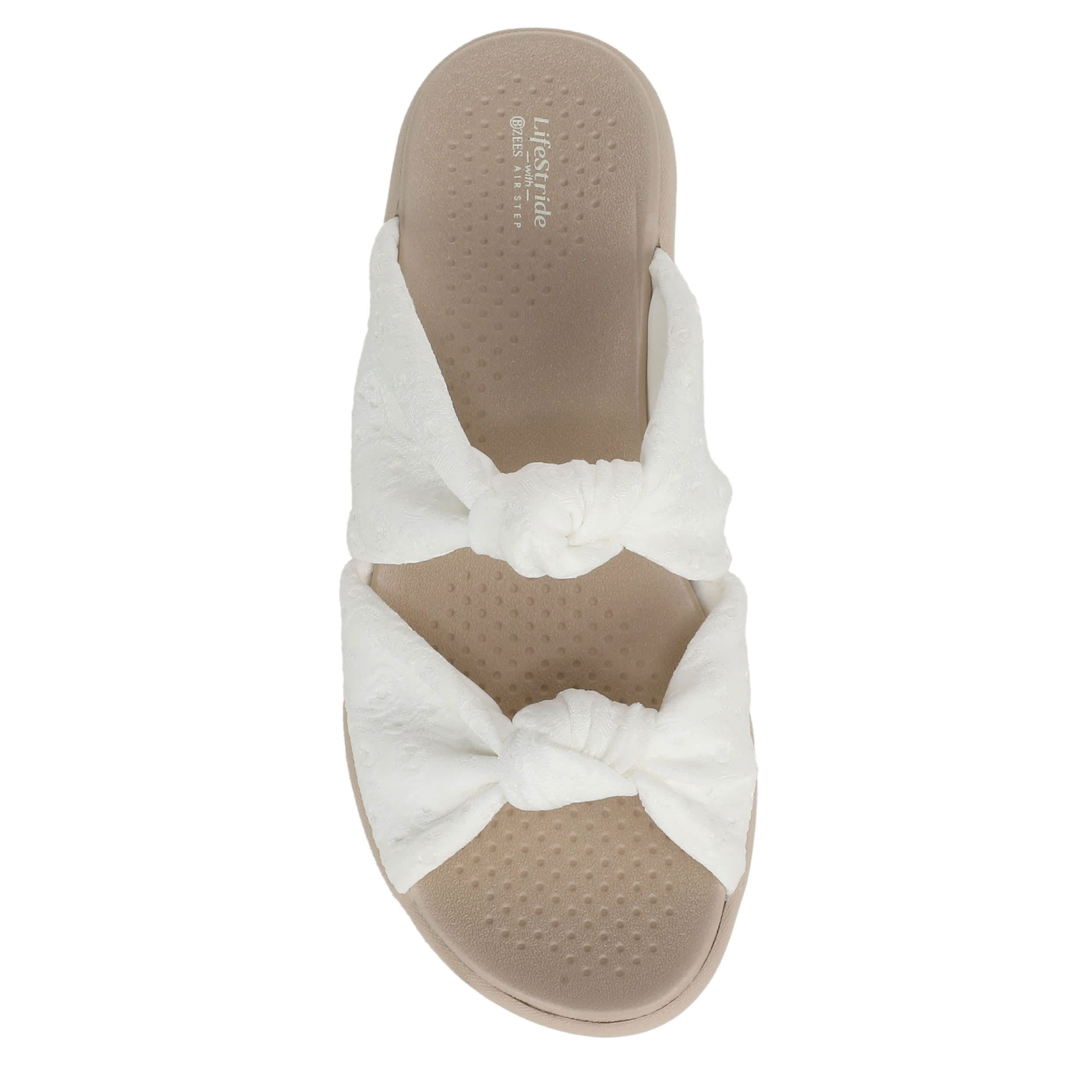 Ultra lightweight and relaxed in the LifeStride Caring Comfort slide. Featuring a textured, stretch fabric upper with feminine knotted accents, this slide keeps your style fresh with Anti-Odor Control technology. The FreeFoamâ„¢ Comfort includes cushy arch support, while the BZEES Air Step Technology makes sure you feel weightless.
