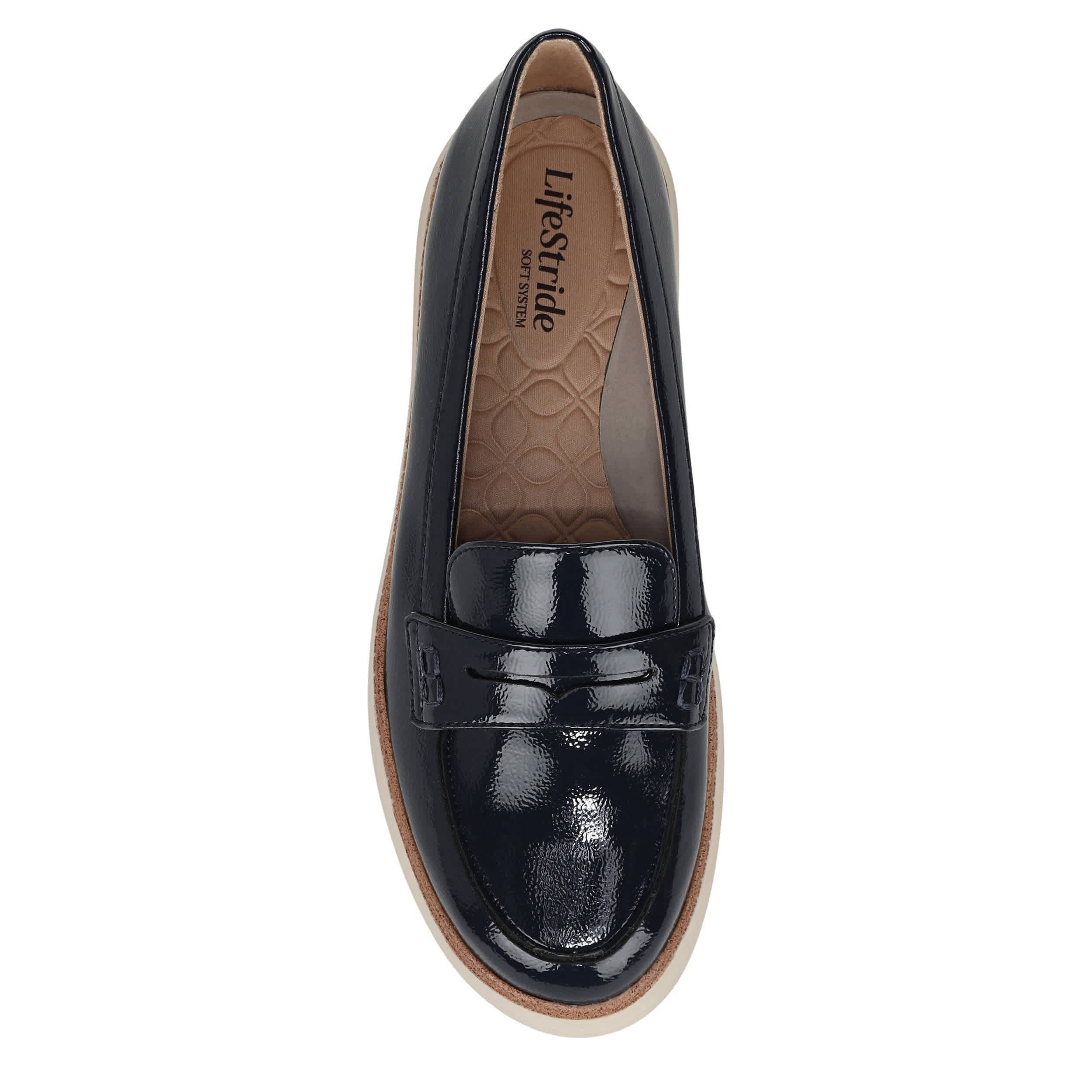 Polished and sporty can coincide like in the Chelsea women's loafer from LifeStride. With a patent leather upper featuring a penny strap detail for extra style, this slip-on upgrades your work hours or weekends. The Soft System® comfort technology cradles your foot while the sporty outsole keeps you grounded with a bit of lift.