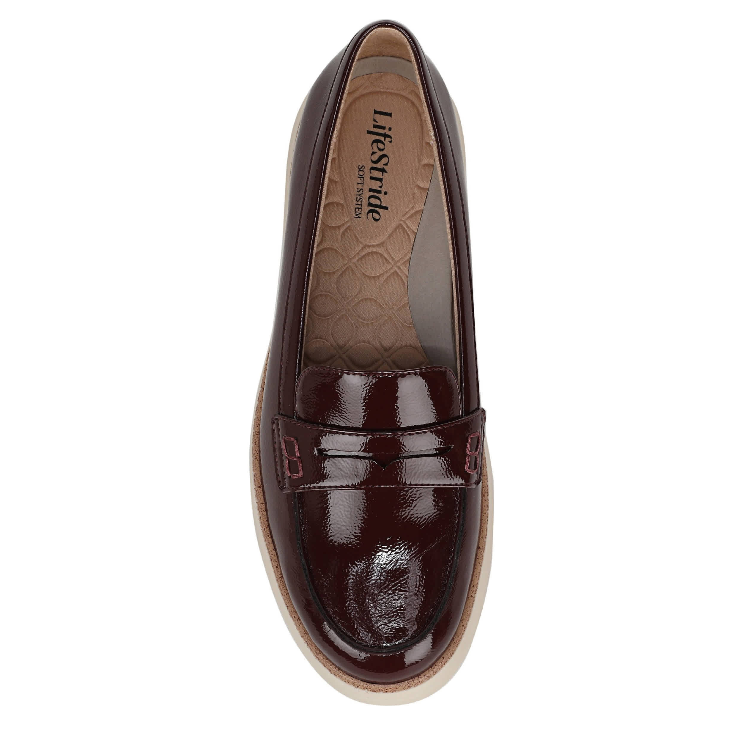Polished and sporty can coincide like in the Chelsea women's loafer from LifeStride. With a patent leather upper featuring a penny strap detail for extra style, this slip-on upgrades your work hours or weekends. The Soft System® comfort technology cradles your foot while the sporty outsole keeps you grounded with a bit of lift.