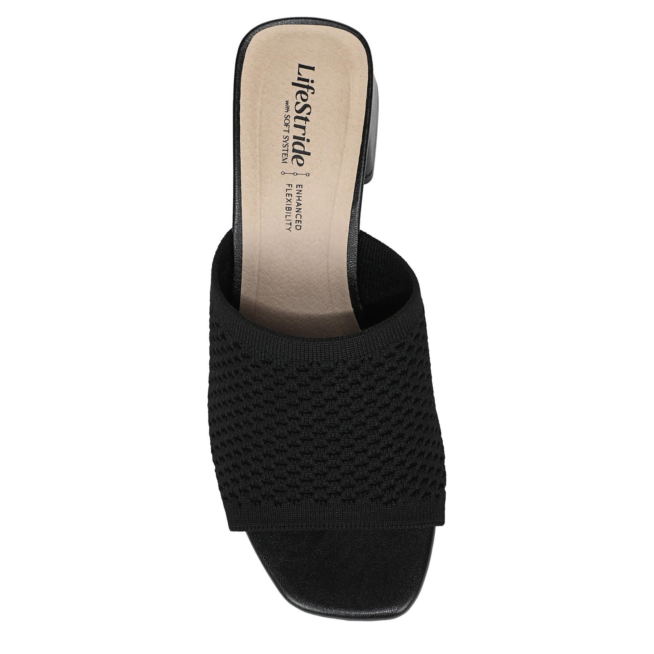 Breezy versatility with the LifeStride Colette 2 sandal. Featuring a perforated mesh fabric upper with enhanced flexibility and a square toe, this slide sandal is cool and casual. Go from polished to laid-back with unmatched Soft System® cushioning, while the flared heel is padded for easy movement.