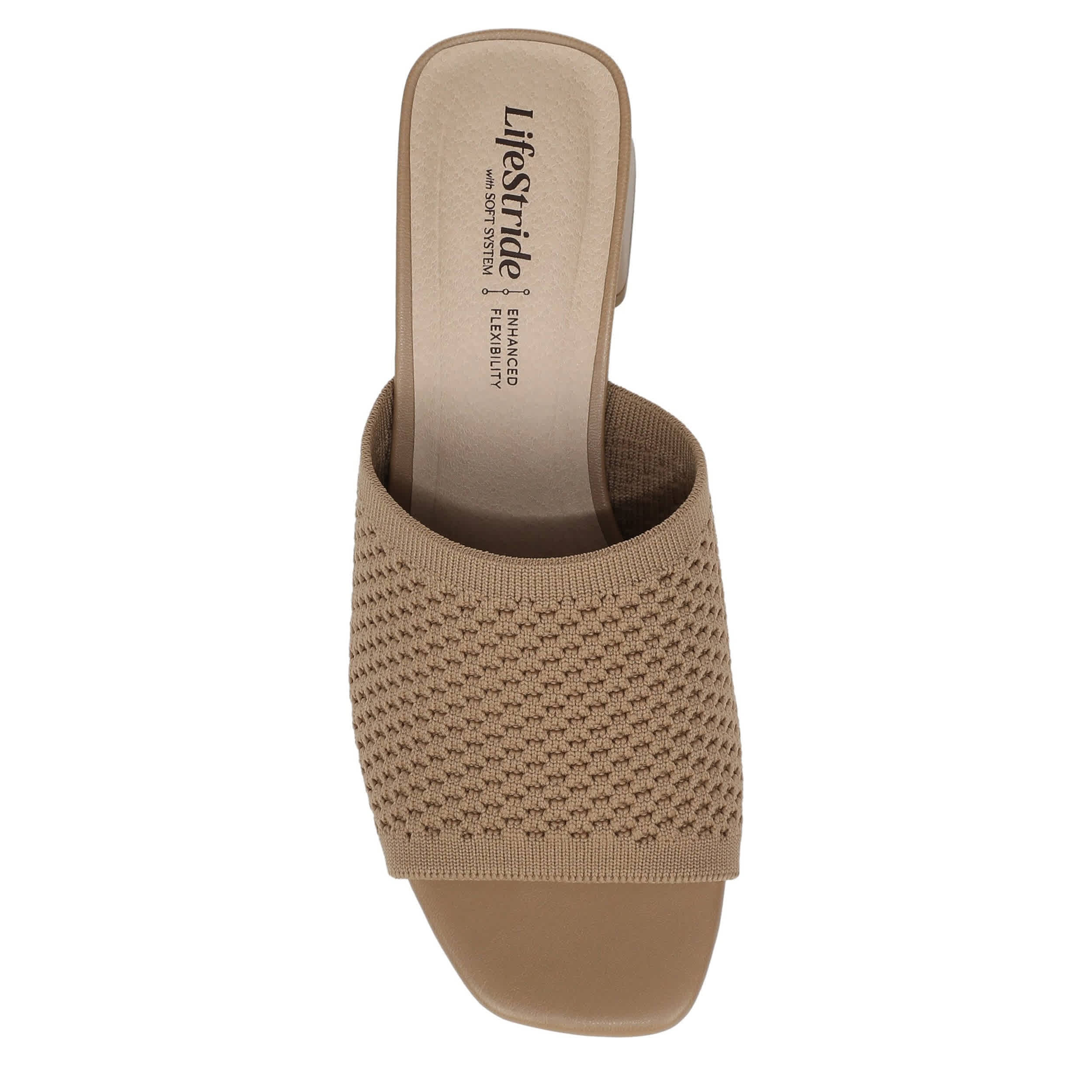 Breezy versatility with the LifeStride Colette 2 sandal. Featuring a perforated mesh fabric upper with enhanced flexibility and a square toe, this slide sandal is cool and casual. Go from polished to laid-back with unmatched Soft System® cushioning, while the flared heel is padded for easy movement.