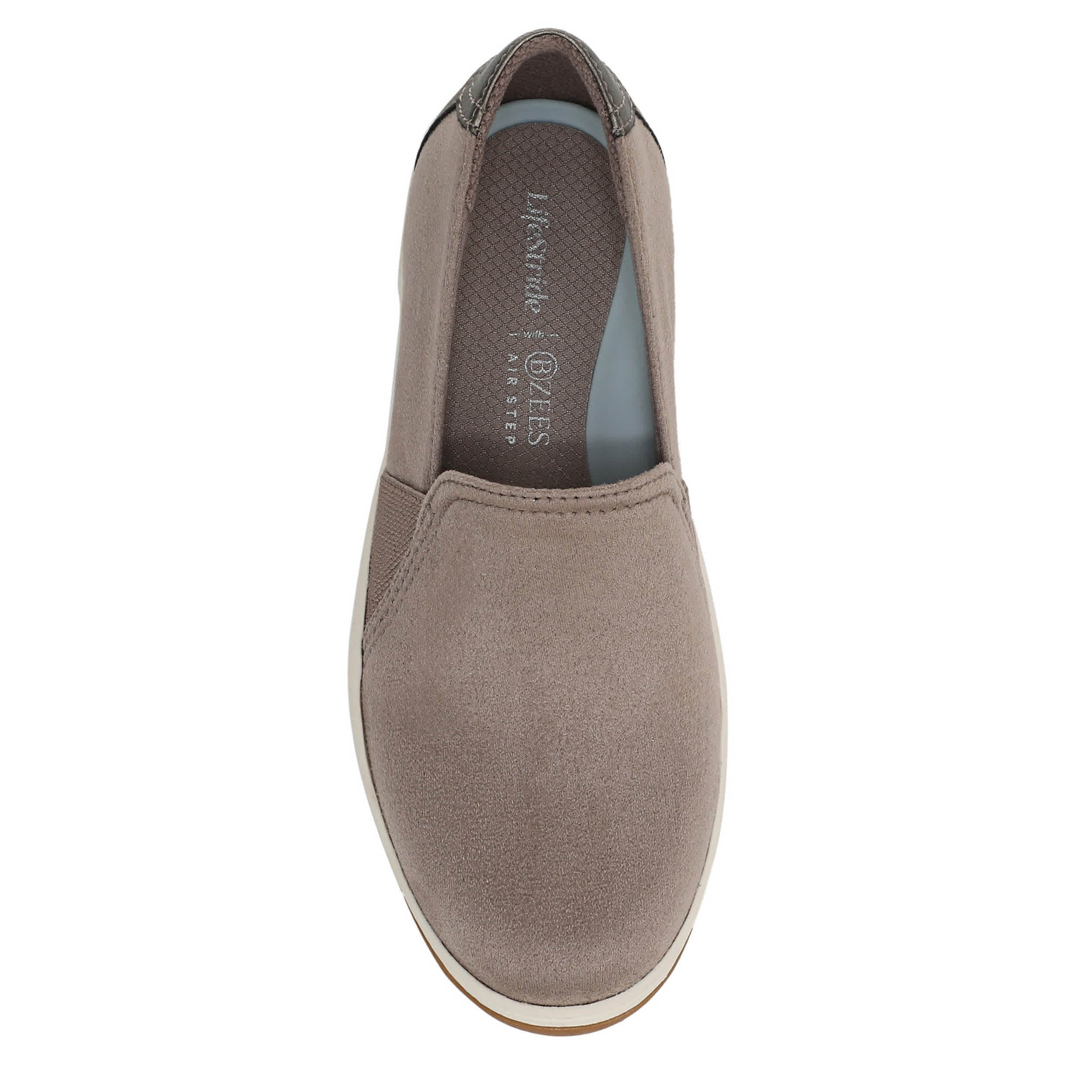 Go anywhere in the LifeStride Danni slip-on sneaker. Featuring a stretch knit upper with a faux leather heel accent and stretch goring, this slip-on gives a weightless feel to your steps with BZEES Air Step technology. The FreeFoamâ„¢ Comfort insole plus SoCush arch support and Anti-Microbial and Odor Control technology offer fresh cushioning, and it's machine-washable.